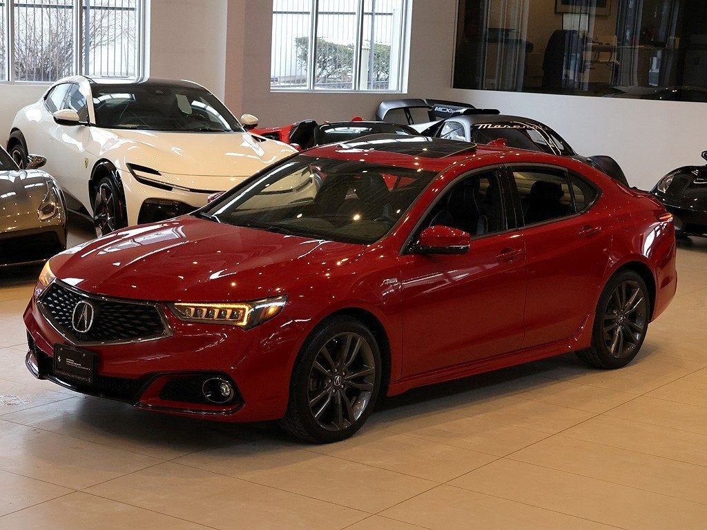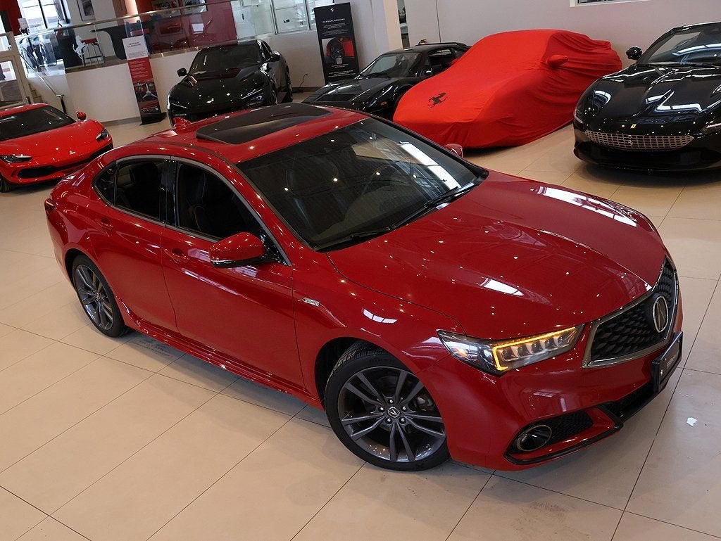 San Marino Red 2018 Acura TLX 3.5L V6 w/Technology & A-Spec Packages FWD 9-Speed Automatic 3.5L V6 SOHC VTEC 24V 10 Speakers, Acura Navigation System w/3D View, Brake assist, Front dual zone A/C, Garage door transmitter, Lane Departure Warning System, Memory seat, Power moonroof, Premium audio system: Acura/ELS Surround, Rain sensing wipers, Wheels: 19" x 8.0" Shark Gray Finish Alum Alloy. Recent Arrival! Odometer is 47059 miles below market average! 20/30 City/Highway MPG Awards: