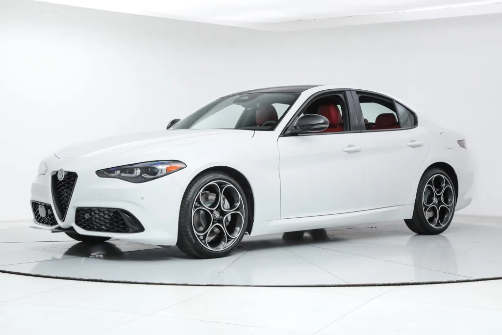 - Driving Assist Package ($300) - Active Driving Assist System - Intelligent Speed Assist (ISA) - Advanced Vehicle Anti-Theft System The 2025 Giulia is equipped as standard with LED Tri-Lobe Headlights, 12.3-inch TFT Digital Gauge Cluster, Navigation, Satellite and HD Radio, Apple CarPlay, Android Auto, Wireless Charging, Aluminum Paddle Shifters, Heated F/R Seats and Steering Wheel, Power Adjustable Front Seats with Lumbar, Reverse Camera, AutoDimming Exterior Mirrors, Power-Folding Heated Mirrors, RainSensitive Windshield Wipers, Keyless Entry and Start, Remote Start, HomeLink, Air Quality System, Sport Suspension, Carbon Fiber Drive Shaft, Alfa DNA Drive Mode System, Brembo Front Brakes, ForwardCollision Warning Plus, Lane-Keep Assist, Lane Departure Warning, Adaptive Cruise Control with Full Stop, Active Blind Spot Assist, Front and Rear ParkAssist Sensors, LED DRLs and Tail Lamps, and Gloss Black Exterior Mirrors. Universally praised, the Giulia is the definitive rear-drive sports sedan from Alfa Romeo. Exotic and lightweight materials contribute to a perfect 50/50 weight distribution, and provide exceptional handling and comfort. A powerful turbocharged engine and quick 8-speed transmission deliver a thrilling drive, and the interior is a harmony of luxury and technology that will reward you every time you are behind the wheel. If you are in the market for an Alfa Romeo Giulia, please call or email us today.