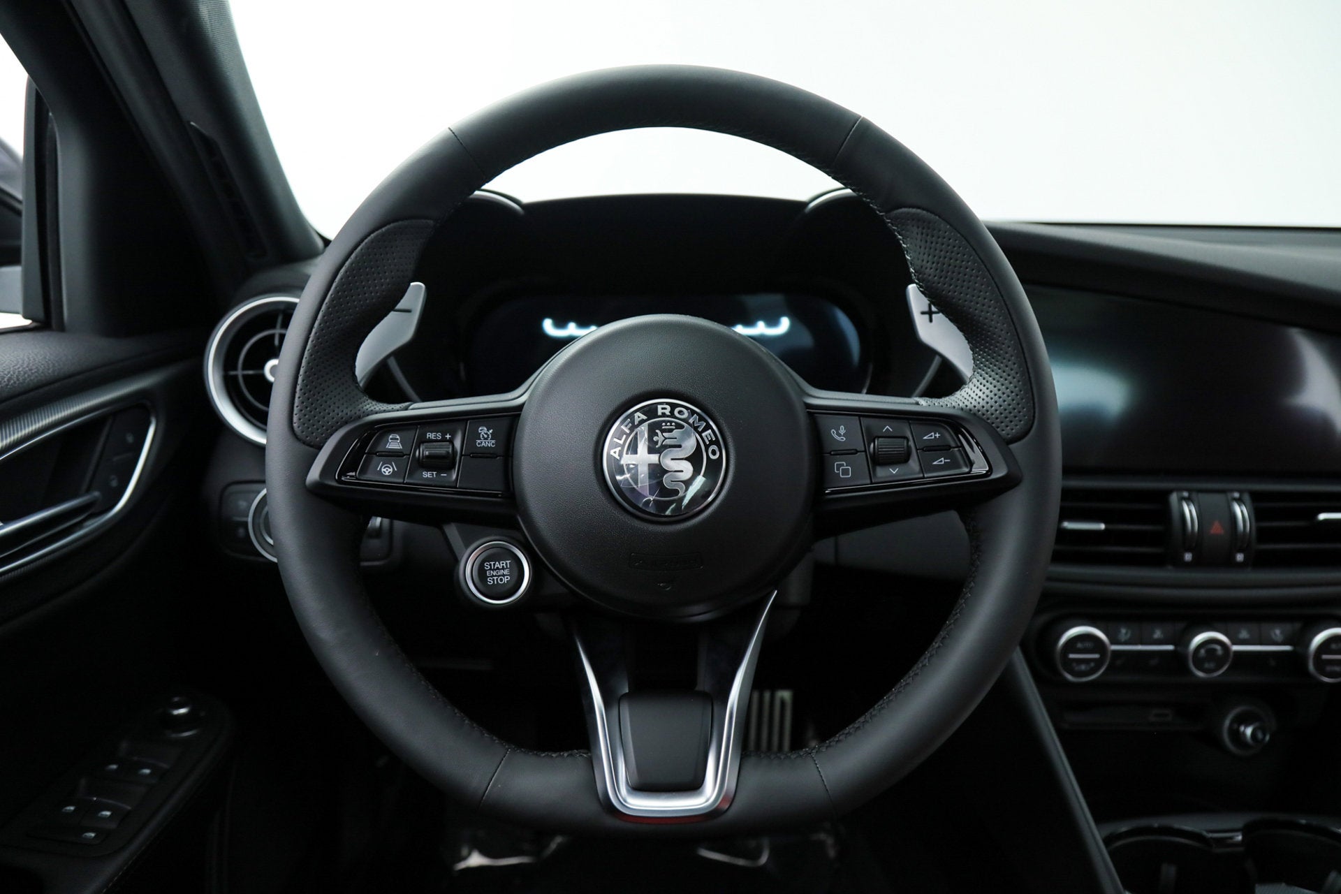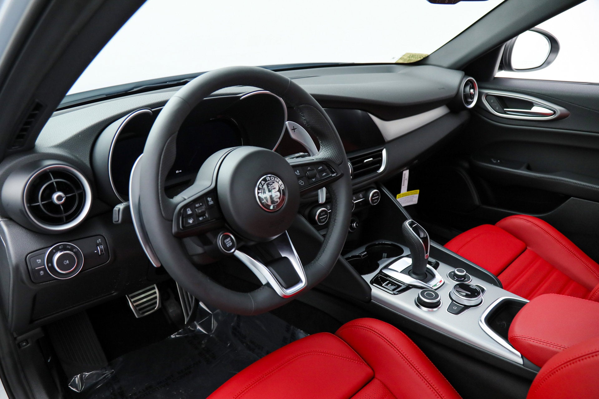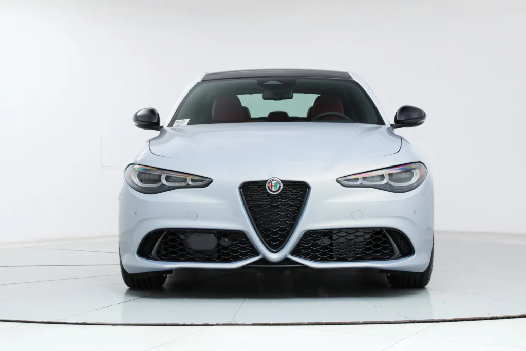 - Driving Assist Package ($300) - Active Driving Assist System - Intelligent Speed Assist (ISA) - Advanced Vehicle Anti-Theft System The 2025 Giulia is equipped as standard with LED Tri-Lobe Headlights, 12.3-inch TFT Digital Gauge Cluster, Navigation, Satellite and HD Radio, Apple CarPlay, Android Auto, Wireless Charging, Aluminum Paddle Shifters, Heated F/R Seats and Steering Wheel, Power Adjustable Front Seats with Lumbar, Reverse Camera, AutoDimming Exterior Mirrors, Power-Folding Heated Mirrors, RainSensitive Windshield Wipers, Keyless Entry and Start, Remote Start, HomeLink, Air Quality System, Sport Suspension, Carbon Fiber Drive Shaft, Alfa DNA Drive Mode System, Brembo Front Brakes, ForwardCollision Warning Plus, Lane-Keep Assist, Lane Departure Warning, Adaptive Cruise Control with Full Stop, Active Blind Spot Assist, Front and Rear ParkAssist Sensors, LED DRLs and Tail Lamps, and Gloss Black Exterior Mirrors. Universally praised, the Giulia is the definitive rear-drive sports sedan from Alfa Romeo. Exotic and lightweight materials contribute to a perfect 50/50 weight distribution, and provide exceptional handling and comfort. A powerful turbocharged engine and quick 8-speed transmission deliver a thrilling drive, and the interior is a harmony of luxury and technology that will reward you every time you are behind the wheel. If you are in the market for an Alfa Romeo Giulia Veloce, please call or email us today.
