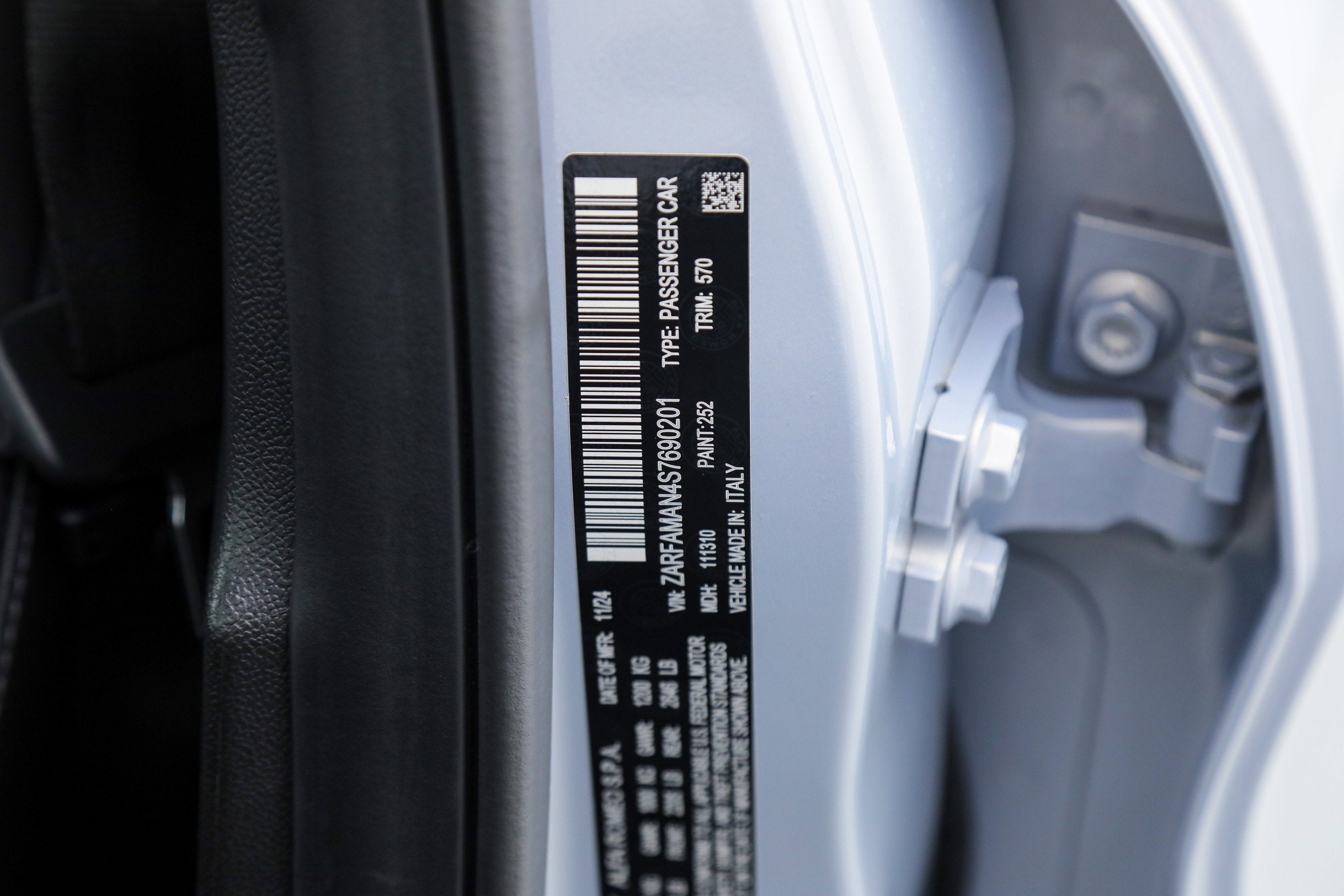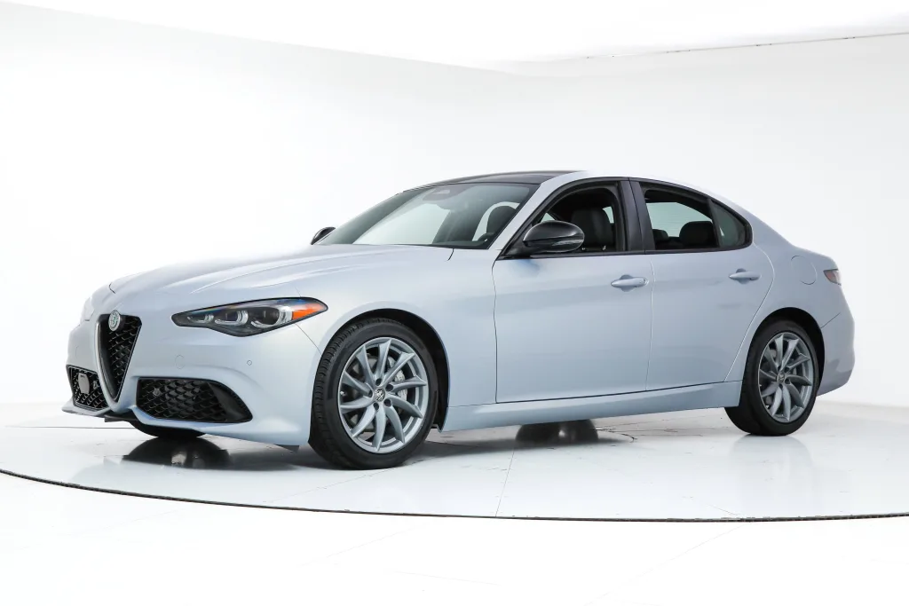 - Driving Assist Package ($300) - Active Driving Assist System - Intelligent Speed Assist (ISA) - Advanced Vehicle Anti-Theft System The 2025 Giulia is equipped as standard with LED Tri-Lobe Headlights, 12.3-inch TFT Digital Gauge Cluster, Navigation, Satellite and HD Radio, Apple CarPlay, Android Auto, Wireless Charging, Aluminum Paddle Shifters, Heated F/R Seats and Steering Wheel, Power Adjustable Front Seats with Lumbar, Reverse Camera, AutoDimming Exterior Mirrors, Power-Folding Heated Mirrors, RainSensitive Windshield Wipers, Keyless Entry and Start, Remote Start, HomeLink, Air Quality System, Sport Suspension, Carbon Fiber Drive Shaft, Alfa DNA Drive Mode System, Brembo Front Brakes, ForwardCollision Warning Plus, Lane-Keep Assist, Lane Departure Warning, Adaptive Cruise Control with Full Stop, Active Blind Spot Assist, Front and Rear ParkAssist Sensors, LED DRLs and Tail Lamps, and Gloss Black Exterior Mirrors. Universally praised, the Giulia is the definitive rear-drive sports sedan from Alfa Romeo. Exotic and lightweight materials contribute to a perfect 50/50 weight distribution, and provide exceptional handling and comfort. A powerful turbocharged engine and quick 8-speed transmission deliver a thrilling drive, and the interior is a harmony of luxury and technology that will reward you every time you are behind the wheel. If you are in the market for an Alfa Romeo Giulia, please call or email us today.