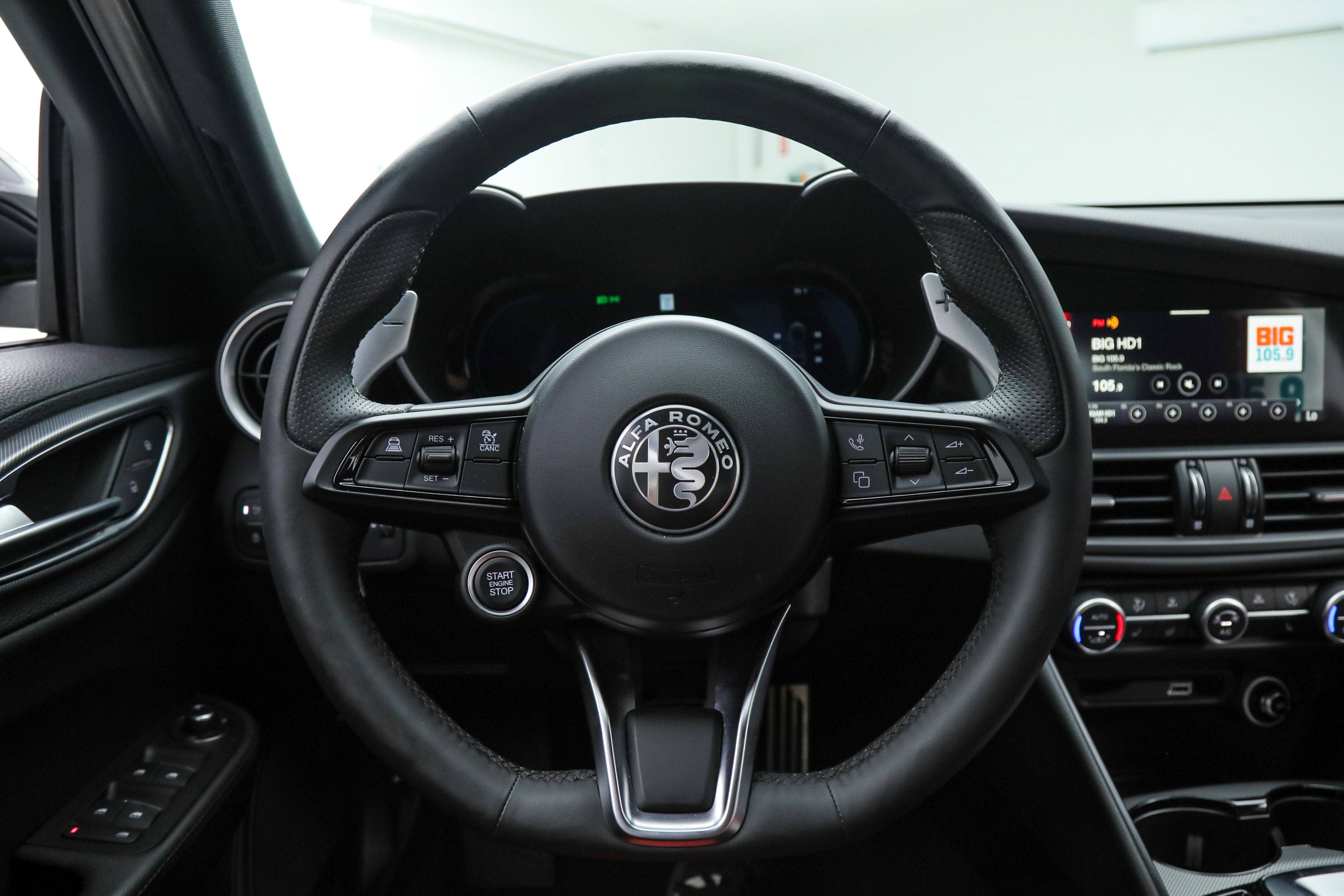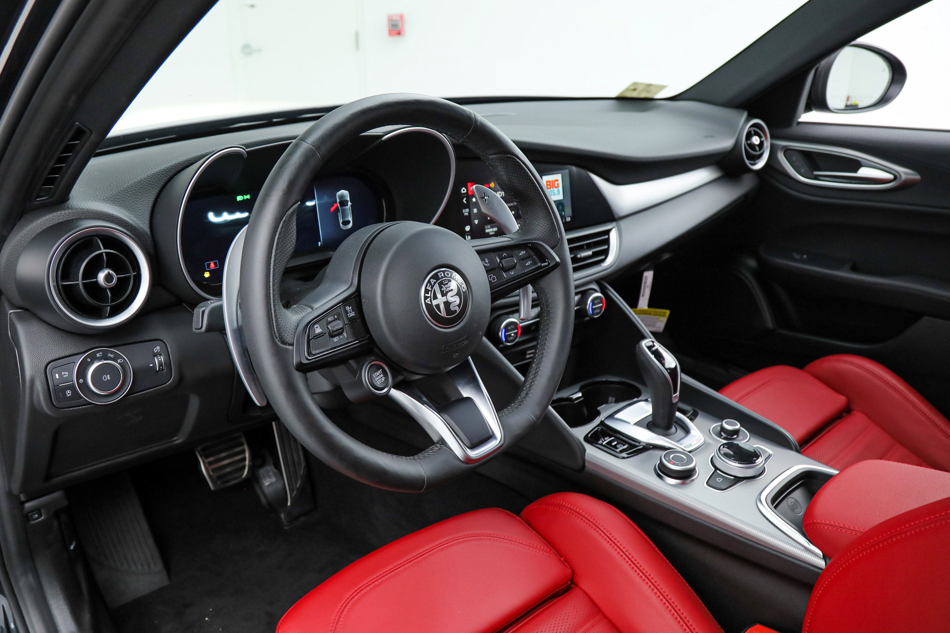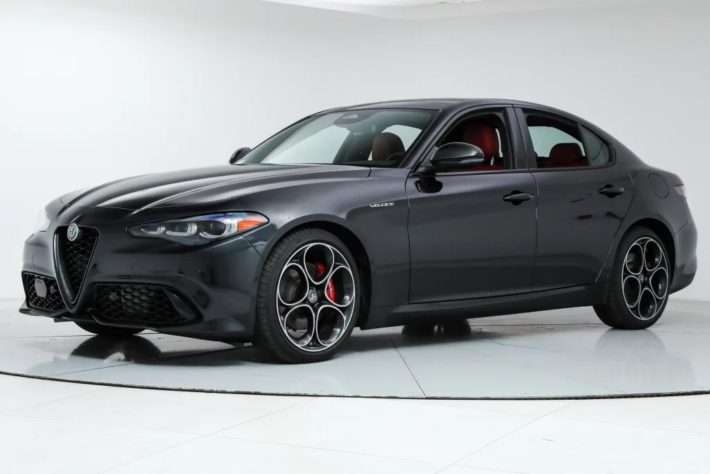 • Metallic Paint ($695) The 2025 Giulia is equipped as standard with LED Tri-Lobe Headlights, 12.3-inch TFT Digital Gauge Cluster, Navigation, Satellite and HD Radio, Apple CarPlay, Android Auto, Wireless Charging, Aluminum Paddle Shifters, Heated F/R Seats and Steering Wheel, Power Adjustable Front Seats with Lumbar, Reverse Camera, AutoDimming Exterior Mirrors, Power-Folding Heated Mirrors, RainSensitive Windshield Wipers, Keyless Entry and Start, Remote Start, HomeLink, Air Quality System, Sport Suspension, Carbon Fiber Drive Shaft, Alfa DNA Drive Mode System, Brembo Front Brakes, ForwardCollision Warning Plus, Lane-Keep Assist, Lane Departure Warning, Adaptive Cruise Control with Full Stop, Active Blind Spot Assist, Front and Rear ParkAssist Sensors, LED DRLs and Tail Lamps, and Gloss Black Exterior Mirrors. Universally praised, the Giulia is the definitive rear-drive sports sedan from Alfa Romeo. Exotic and lightweight materials contribute to a perfect 50/50 weight distribution, and provide exceptional handling and comfort. A powerful turbocharged engine and quick 8-speed transmission deliver a thrilling drive, and the interior is a harmony of luxury and technology that will reward you every time you are behind the wheel. If you are in the market for an Alfa Romeo Giulia Veloce, please call or email us today.