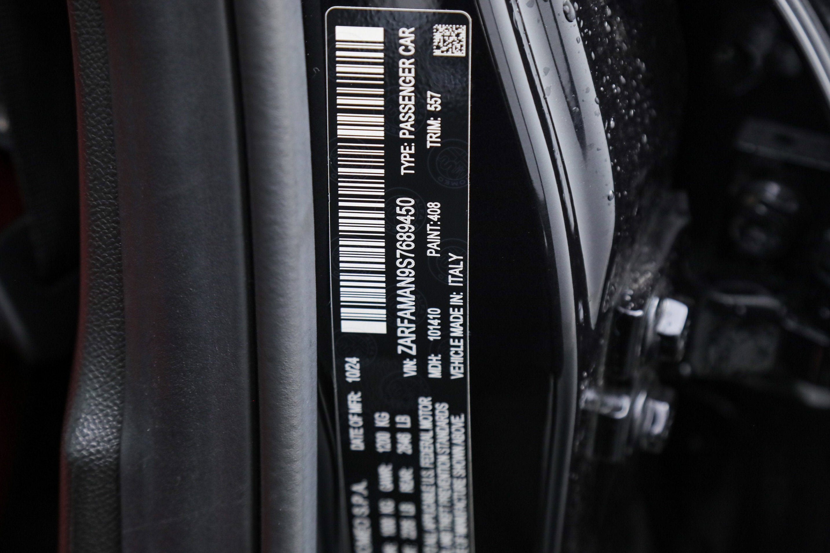 • VELOCE PACKAGE RWD -inc: Power Adjustable Bolster Gloss Red Calipers w/White Script Q2 Badge Limited Slip Differential Rear Axle Silver Veloce Badge