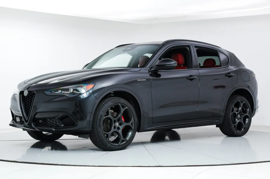 - Metallic Paint ($695) The 2025 Stelvio is equipped as standard with All-Wheel-Drive, LED Tri-Lobe Headlights, 12.3-inch TFT Digital Gauge Cluster, Navigation, Satellite and HD Radio, Apple CarPlay, Android Auto, Wireless Charging, Aluminum Paddle Shifters, Heated F/R Seats and Steering Wheel, Power Adjustable Front Seats with Lumbar, Adaptive Headlamps, Reverse Camera, AutoDimming Exterior Mirrors, Power-Folding Heated Mirrors, RainSensitive Windshield Wipers, Keyless Entry and Start, Remote Start, HomeLink, Carbon Fiber Drive Shaft, Alfa DNA Drive Mode System, ForwardCollision Warning Plus, Lane-Keep Assist, Traffic Sign Recognition, Driver Attention Alert, Adaptive Cruise Control with Full Stop, Blind Spot and Cross Path Detection, Front and Rear ParkAssist Sensors, LED DRLs and Dark Tail Lamps, 19-inch Sport 5-Hole Aluminum Wheels, Brembo Front Brakes, Dual Dark Exhaust Tips, and Vulcano Black Mirror Caps. The Stelvio is a new breed of high-performance SUV that is designed to reinvent the connection with the road. It is a perfect balance of seductive styling and performance cues. The Stelvio is built on the Giulia sedan platform and features the same excellent handling dynamics, while offering the practicality of a sport utility vehicle. Luxurious, powerful and high tech, the Stelvio is the true driver's SUV. If you are in the market for an Alfa Romeo Stelvio Veloce, please call or email us today.