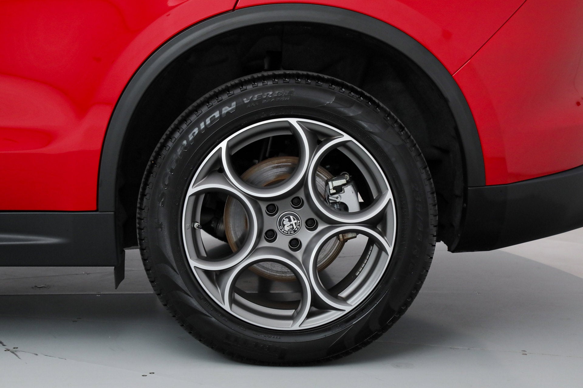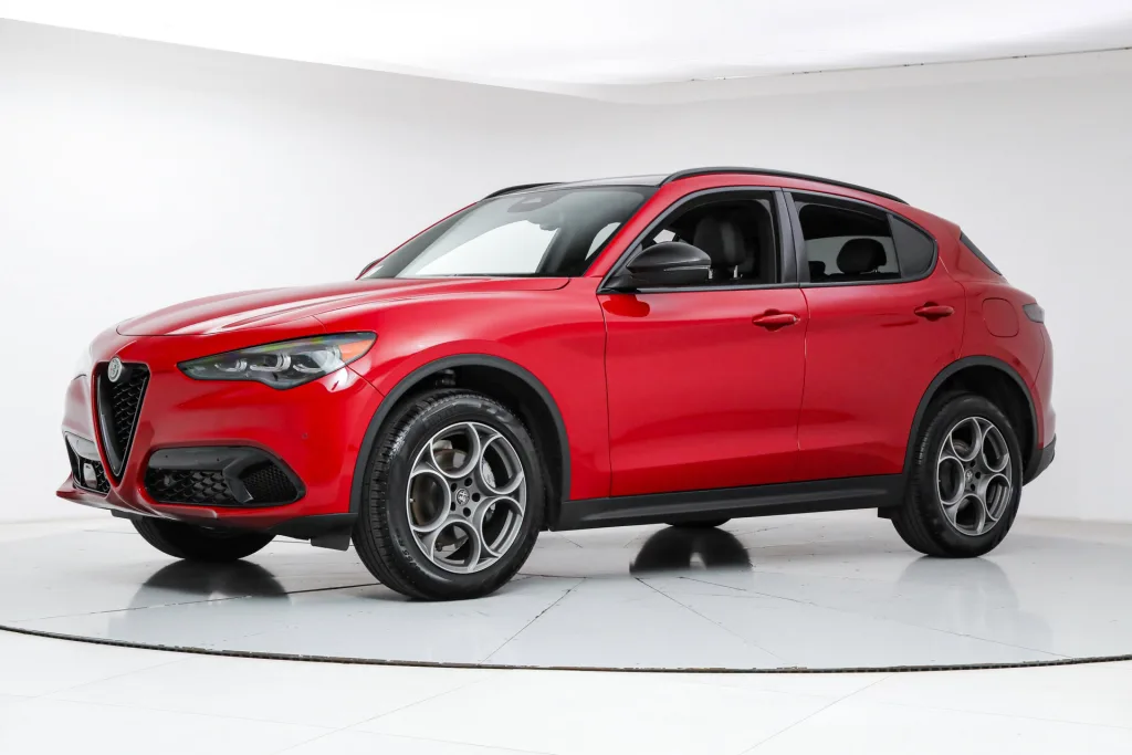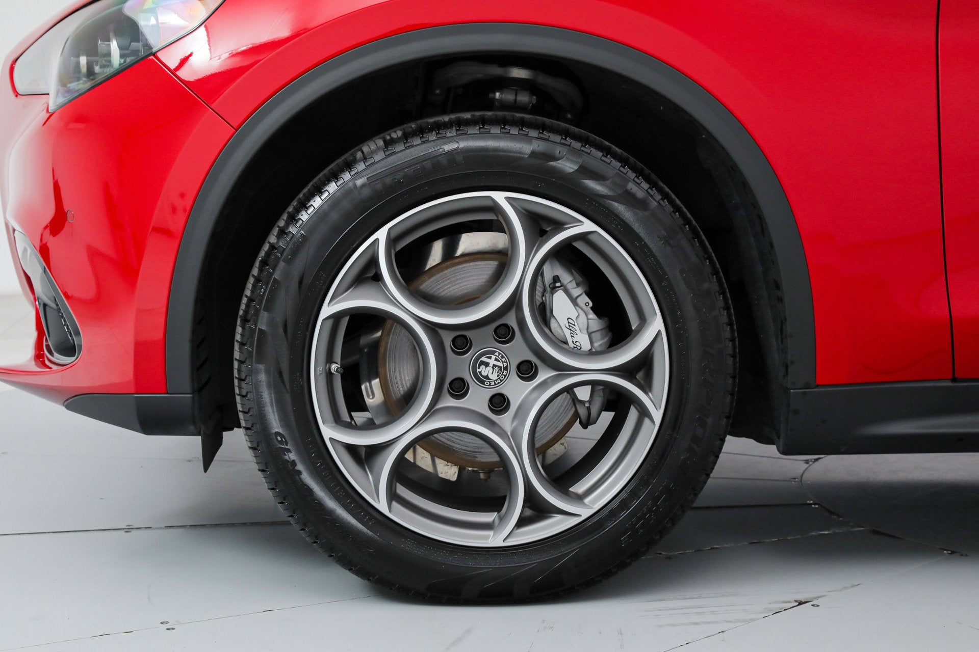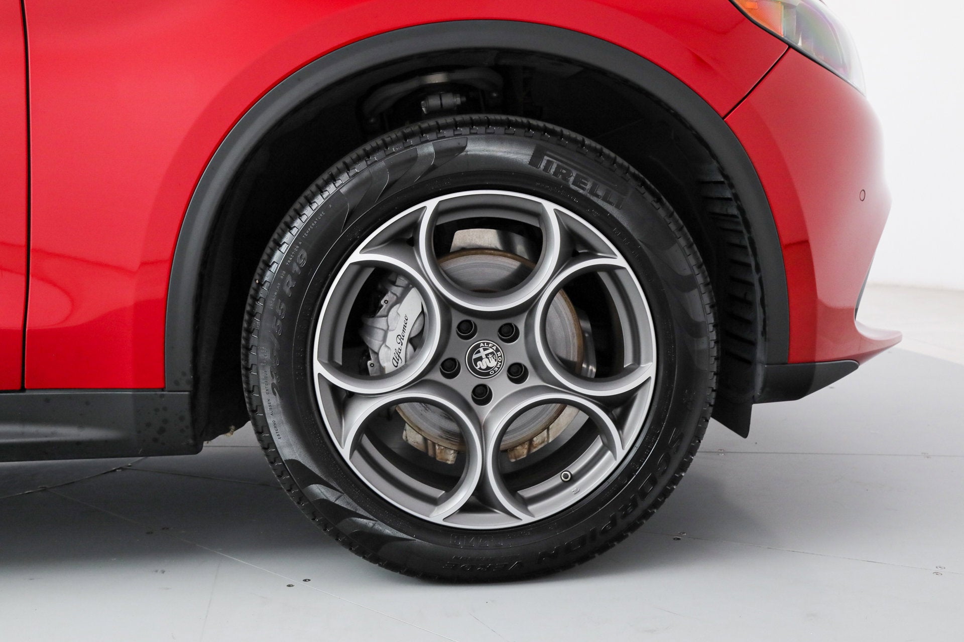 • Alfa Rosso Paint ($695) The 2025 Stelvio is equipped as standard with All-Wheel-Drive, LED Tri-Lobe Headlights, 12.3-inch TFT Digital Gauge Cluster, Navigation, Satellite and HD Radio, Apple CarPlay, Android Auto, Wireless Charging, Aluminum Paddle Shifters, Heated F/R Seats and Steering Wheel, Power Adjustable Front Seats with Lumbar, Adaptive Headlamps, Reverse Camera, AutoDimming Exterior Mirrors, Power-Folding Heated Mirrors, RainSensitive Windshield Wipers, Keyless Entry and Start, Remote Start, HomeLink, Carbon Fiber Drive Shaft, Alfa DNA Drive Mode System, ForwardCollision Warning Plus, Lane-Keep Assist, Traffic Sign Recognition, Driver Attention Alert, Adaptive Cruise Control with Full Stop, Blind Spot and Cross Path Detection, Front and Rear ParkAssist Sensors, LED DRLs and Dark Tail Lamps, 19-inch Sport 5-Hole Aluminum Wheels, Brembo Front Brakes, Dual Dark Exhaust Tips, and Vulcano Black Mirror Caps. The Stelvio is a new breed of high-performance SUV that is designed to reinvent the connection with the road. It is a perfect balance of seductive styling and performance cues. The Stelvio is built on the Giulia sedan platform and features the same excellent handling dynamics, while offering the practicality of a sport utility vehicle. Luxurious, powerful and high tech, the Stelvio is the true driver's SUV. If you are in the market for an Alfa Romeo Stelvio, please call or email us today.