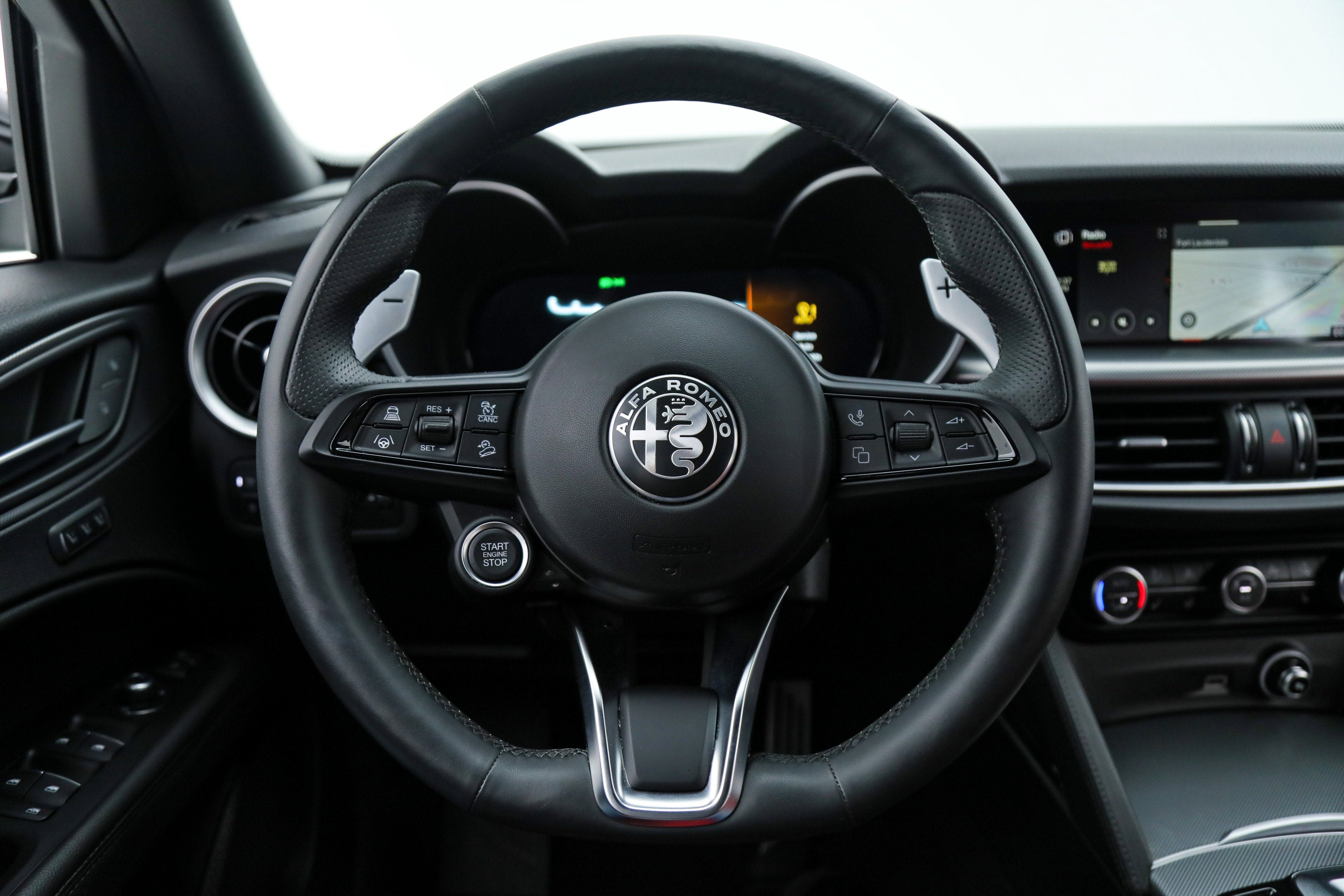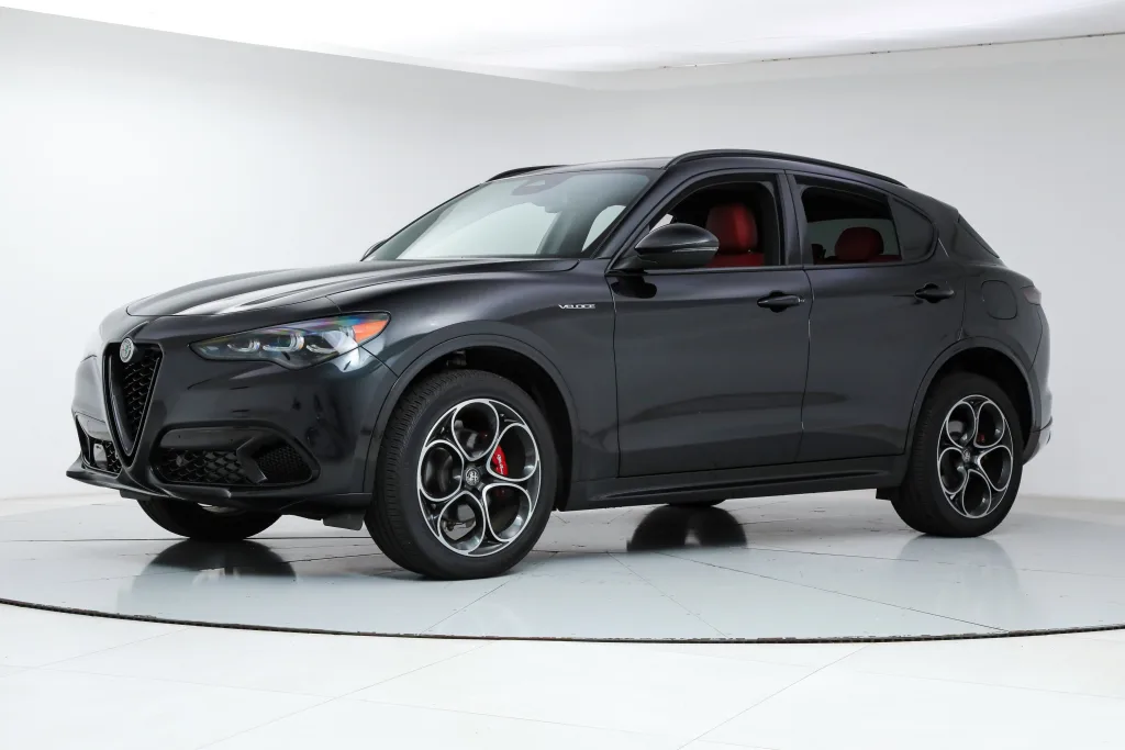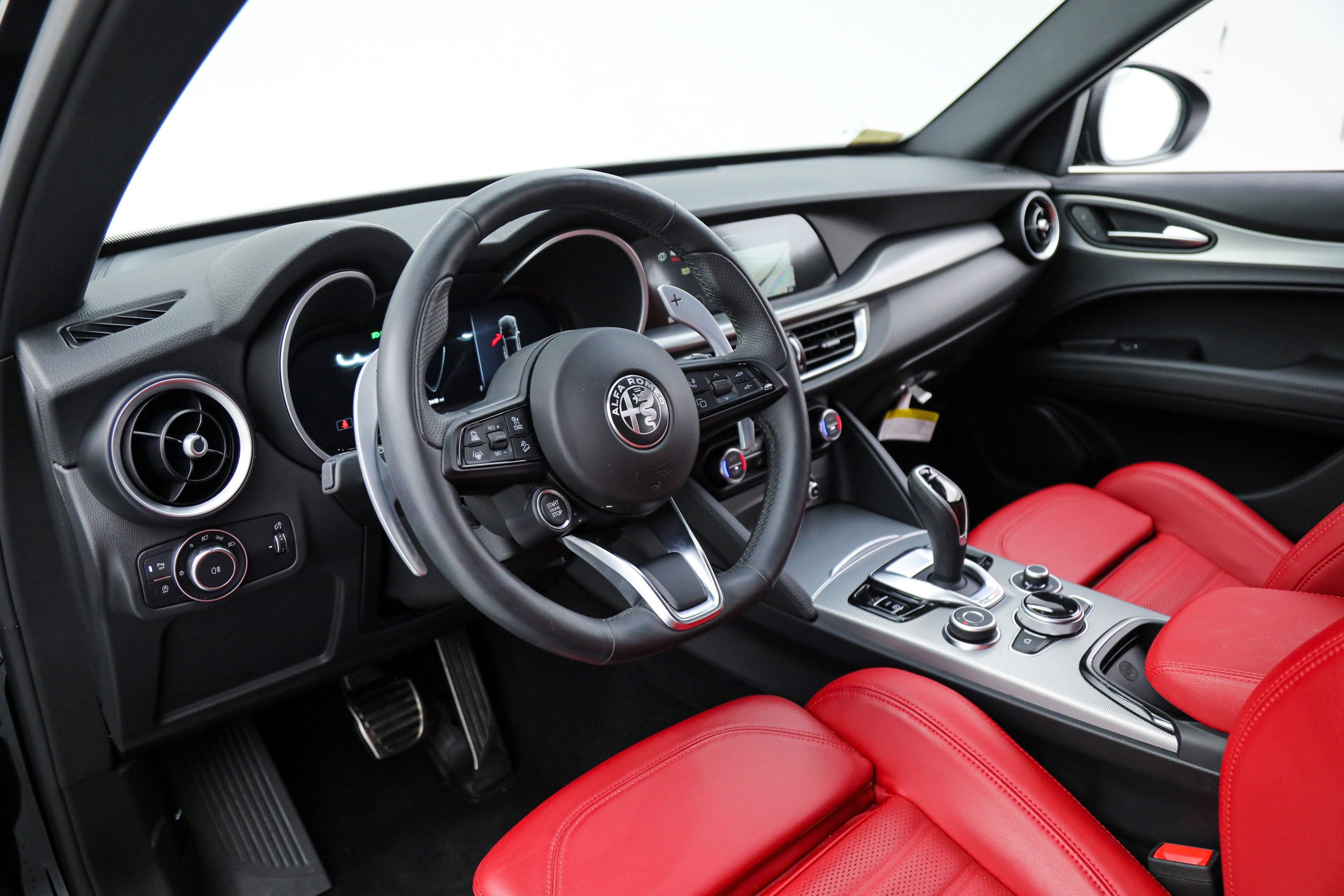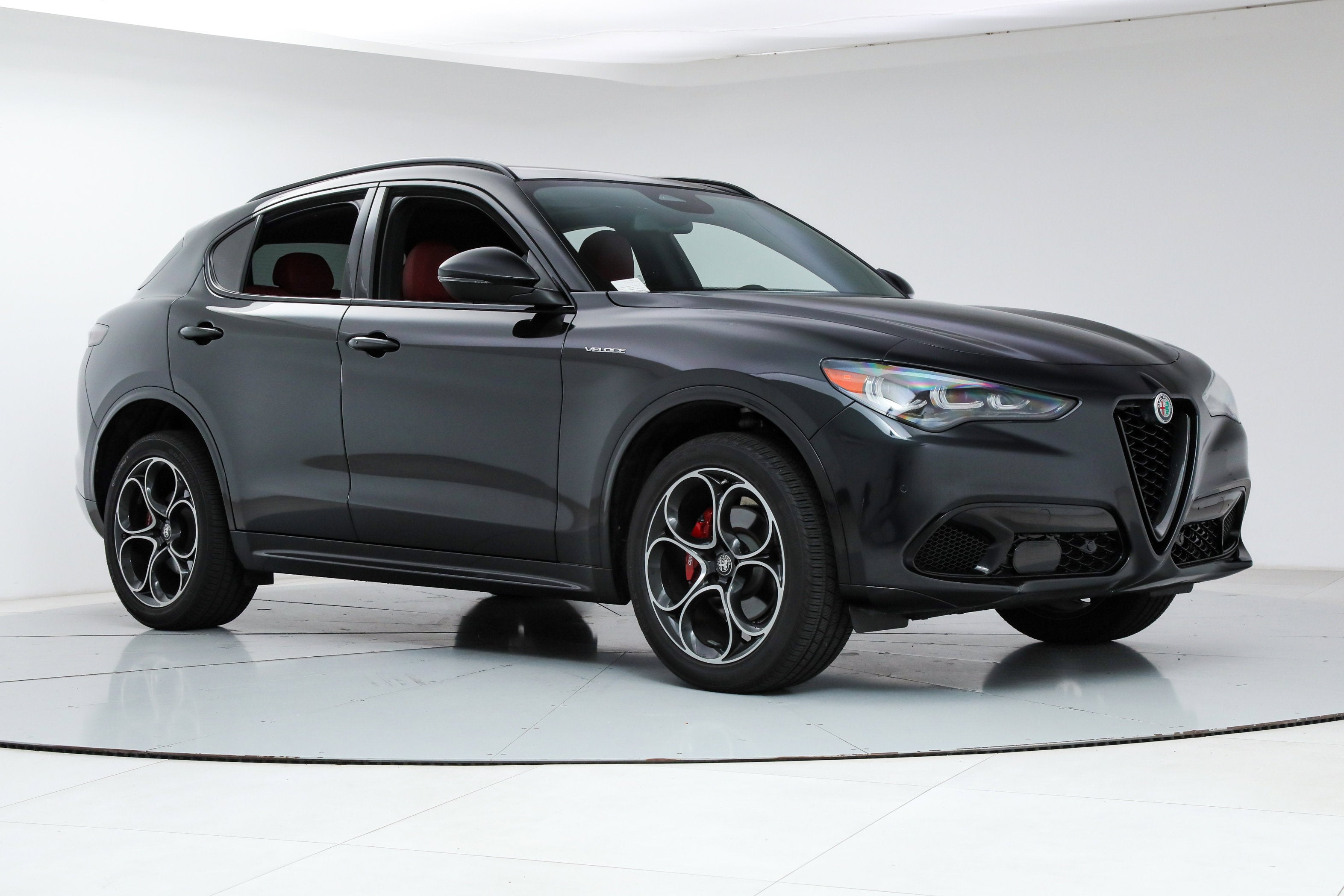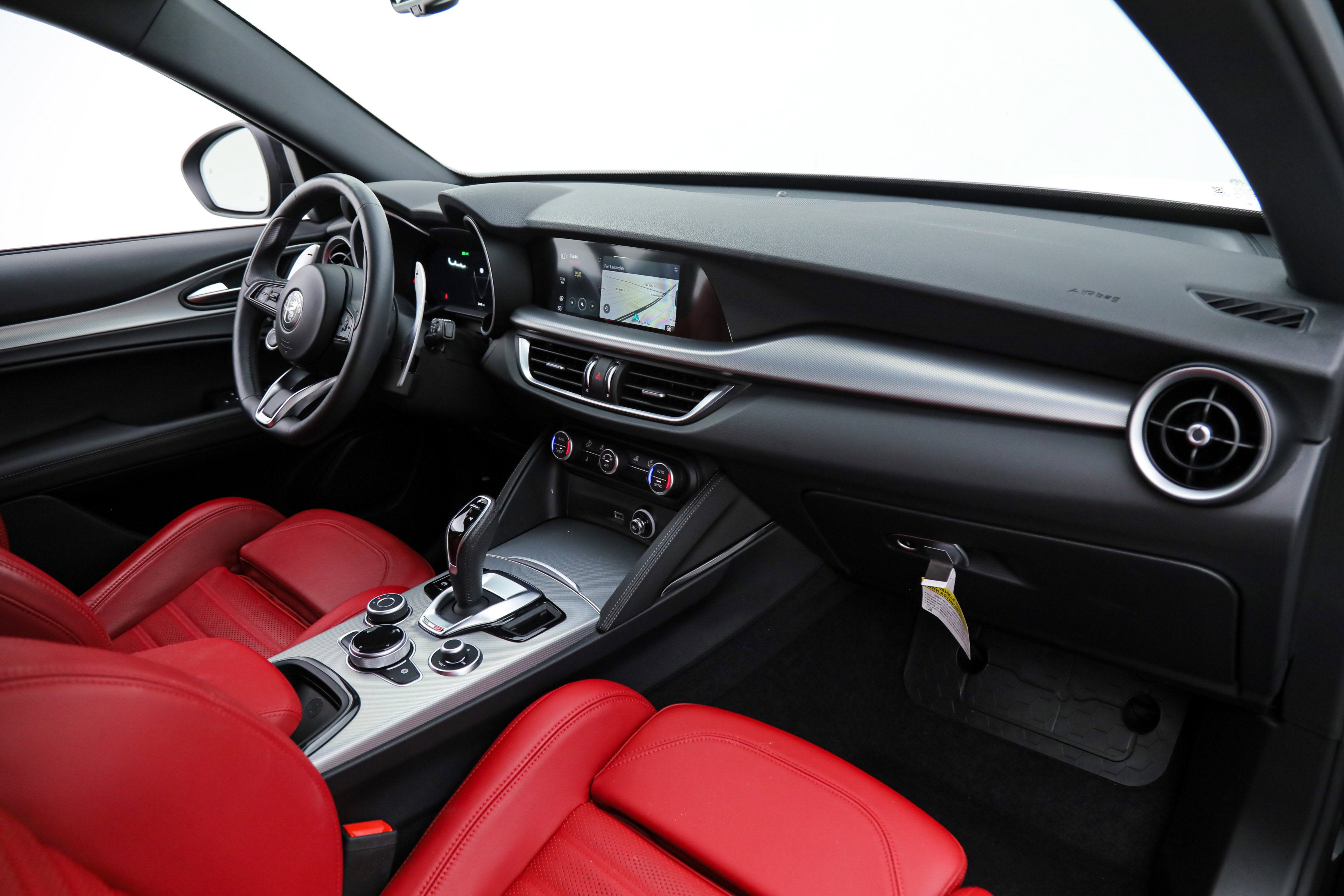 - Convenience Package ($500) - Active Driving Assist System - Intelligent Speed Assist (ISA) - Hands-Free Power Liftgate - Cargo Compartment Cover - Advanced Vehicle Anti-Theft System The 2025 Stelvio is equipped as standard with All-Wheel-Drive, LED Tri-Lobe Headlights, 12.3-inch TFT Digital Gauge Cluster, Navigation, Satellite and HD Radio, Apple CarPlay, Android Auto, Wireless Charging, Aluminum Paddle Shifters, Heated F/R Seats and Steering Wheel, Power Adjustable Front Seats with Lumbar, Adaptive Headlamps, Reverse Camera, AutoDimming Exterior Mirrors, Power-Folding Heated Mirrors, RainSensitive Windshield Wipers, Keyless Entry and Start, Remote Start, HomeLink, Carbon Fiber Drive Shaft, Alfa DNA Drive Mode System, ForwardCollision Warning Plus, Lane-Keep Assist, Traffic Sign Recognition, Driver Attention Alert, Adaptive Cruise Control with Full Stop, Blind Spot and Cross Path Detection, Front and Rear ParkAssist Sensors, LED DRLs and Dark Tail Lamps, 19-inch Sport 5-Hole Aluminum Wheels, Brembo Front Brakes, Dual Dark Exhaust Tips, and Vulcano Black Mirror Caps. The Stelvio is a new breed of high-performance SUV that is designed to reinvent the connection with the road. It is a perfect balance of seductive styling and performance cues. The Stelvio is built on the Giulia sedan platform and features the same excellent handling dynamics, while offering the practicality of a sport utility vehicle. Luxurious, powerful and high tech, the Stelvio is the true driver's SUV. If you are in the market for an Alfa Romeo Stelvio Veloce, please call or email us today.
