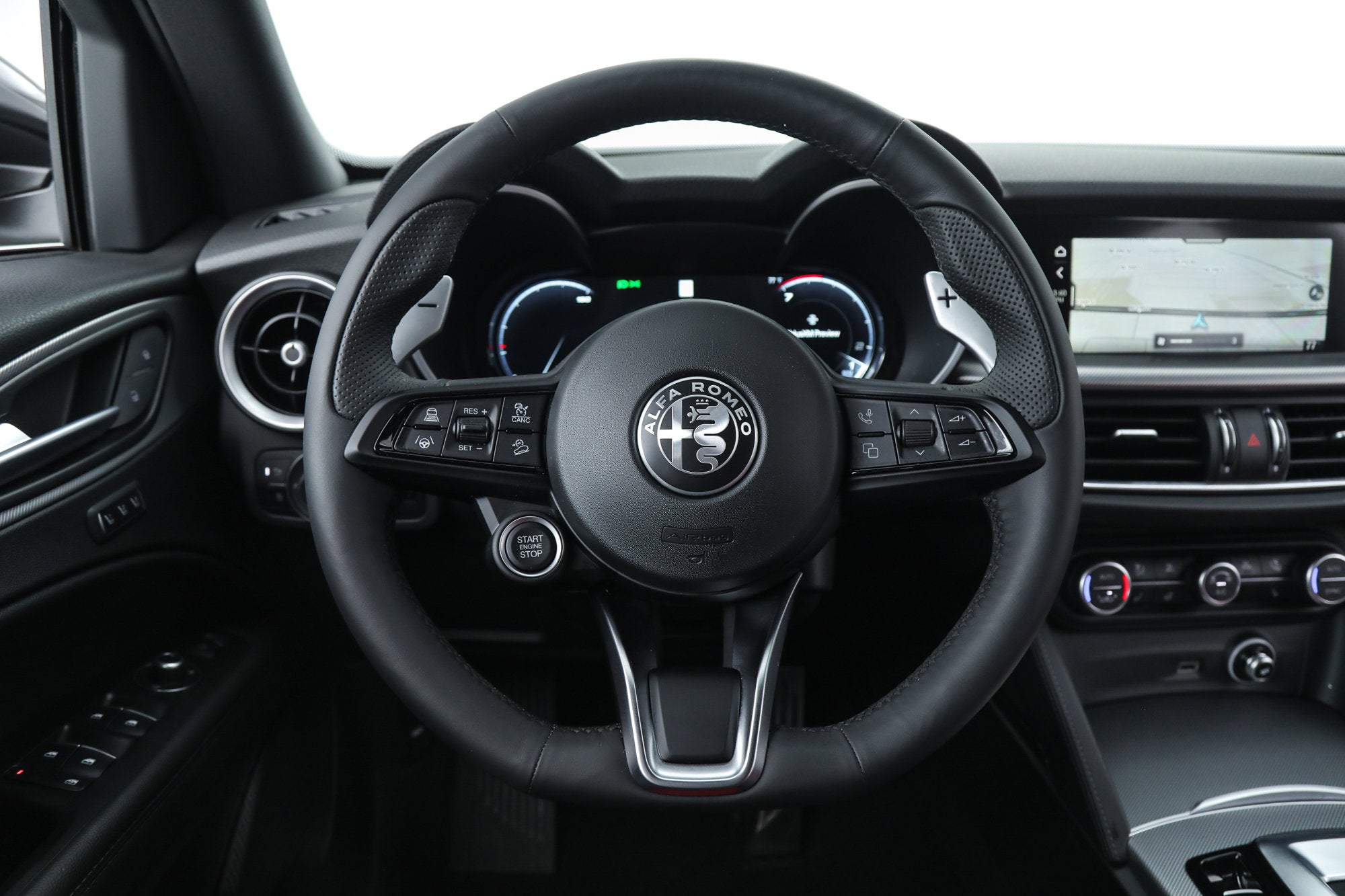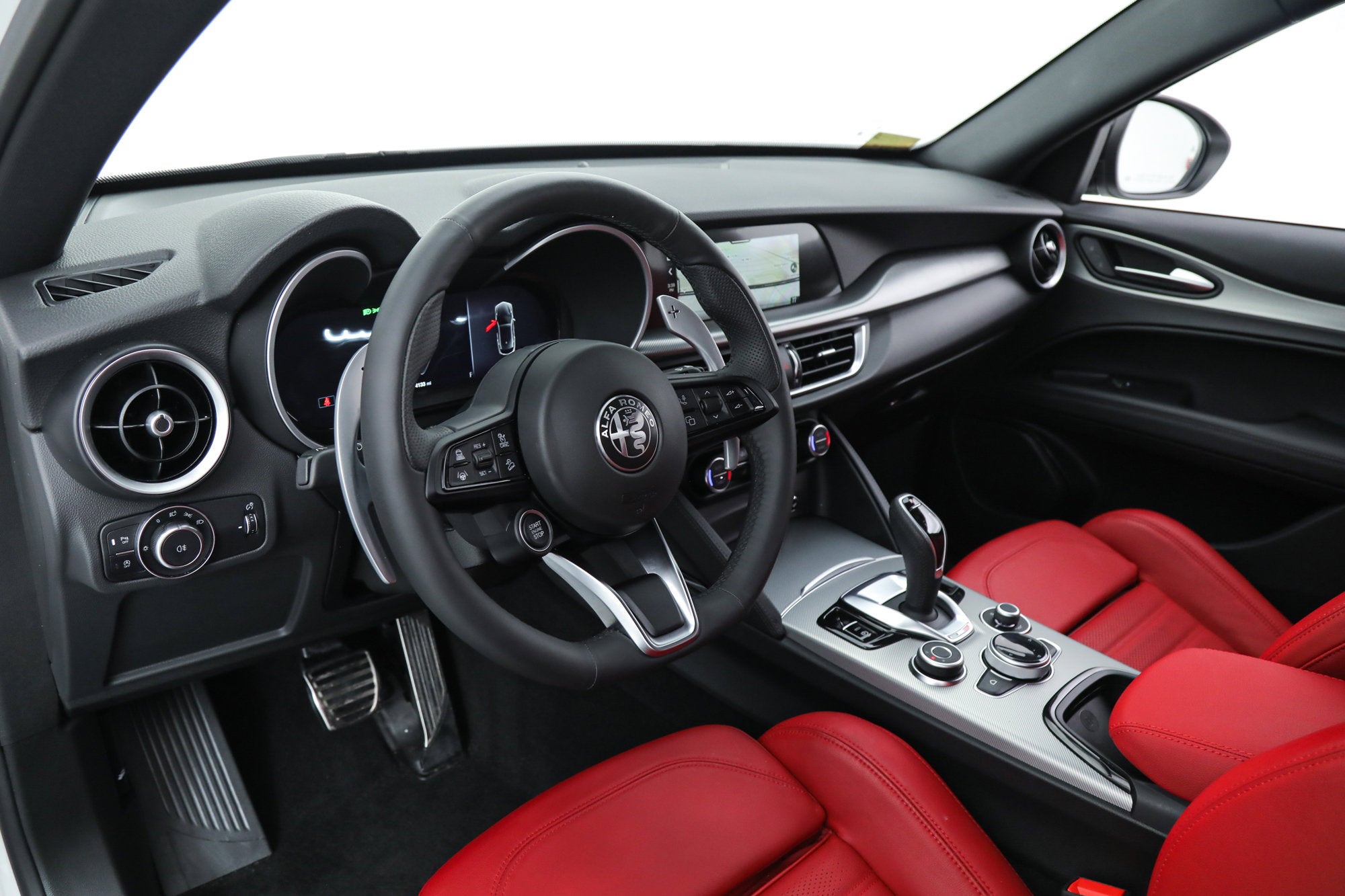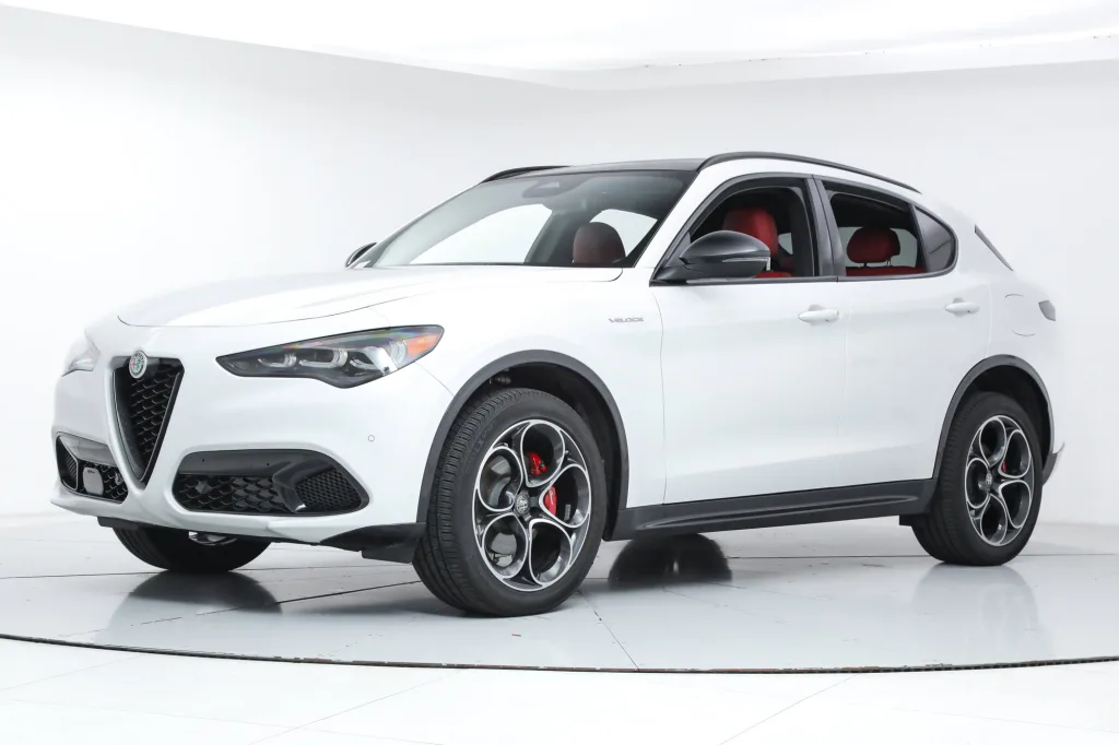 - Convenience Package ($500) - Active Driving Assist System - Intelligent Speed Assist (ISA) - Hands-Free Power Liftgate - Cargo Compartment Cover - Advanced Vehicle Anti-Theft System The 2025 Stelvio is equipped as standard with All-Wheel-Drive, LED Tri-Lobe Headlights, 12.3-inch TFT Digital Gauge Cluster, Navigation, Satellite and HD Radio, Apple CarPlay, Android Auto, Wireless Charging, Aluminum Paddle Shifters, Heated F/R Seats and Steering Wheel, Power Adjustable Front Seats with Lumbar, Adaptive Headlamps, Reverse Camera, AutoDimming Exterior Mirrors, Power-Folding Heated Mirrors, RainSensitive Windshield Wipers, Keyless Entry and Start, Remote Start, HomeLink, Carbon Fiber Drive Shaft, Alfa DNA Drive Mode System, ForwardCollision Warning Plus, Lane-Keep Assist, Traffic Sign Recognition, Driver Attention Alert, Adaptive Cruise Control with Full Stop, Blind Spot and Cross Path Detection, Front and Rear ParkAssist Sensors, LED DRLs and Dark Tail Lamps, 19-inch Sport 5-Hole Aluminum Wheels, Brembo Front Brakes, Dual Dark Exhaust Tips, and Vulcano Black Mirror Caps. The Stelvio is a new breed of high-performance SUV that is designed to reinvent the connection with the road. It is a perfect balance of seductive styling and performance cues. The Stelvio is built on the Giulia sedan platform and features the same excellent handling dynamics, while offering the practicality of a sport utility vehicle. Luxurious, powerful and high tech, the Stelvio is the true driver's SUV. If you are in the market for an Alfa Romeo Stelvio Veloce, please call or email us today.
