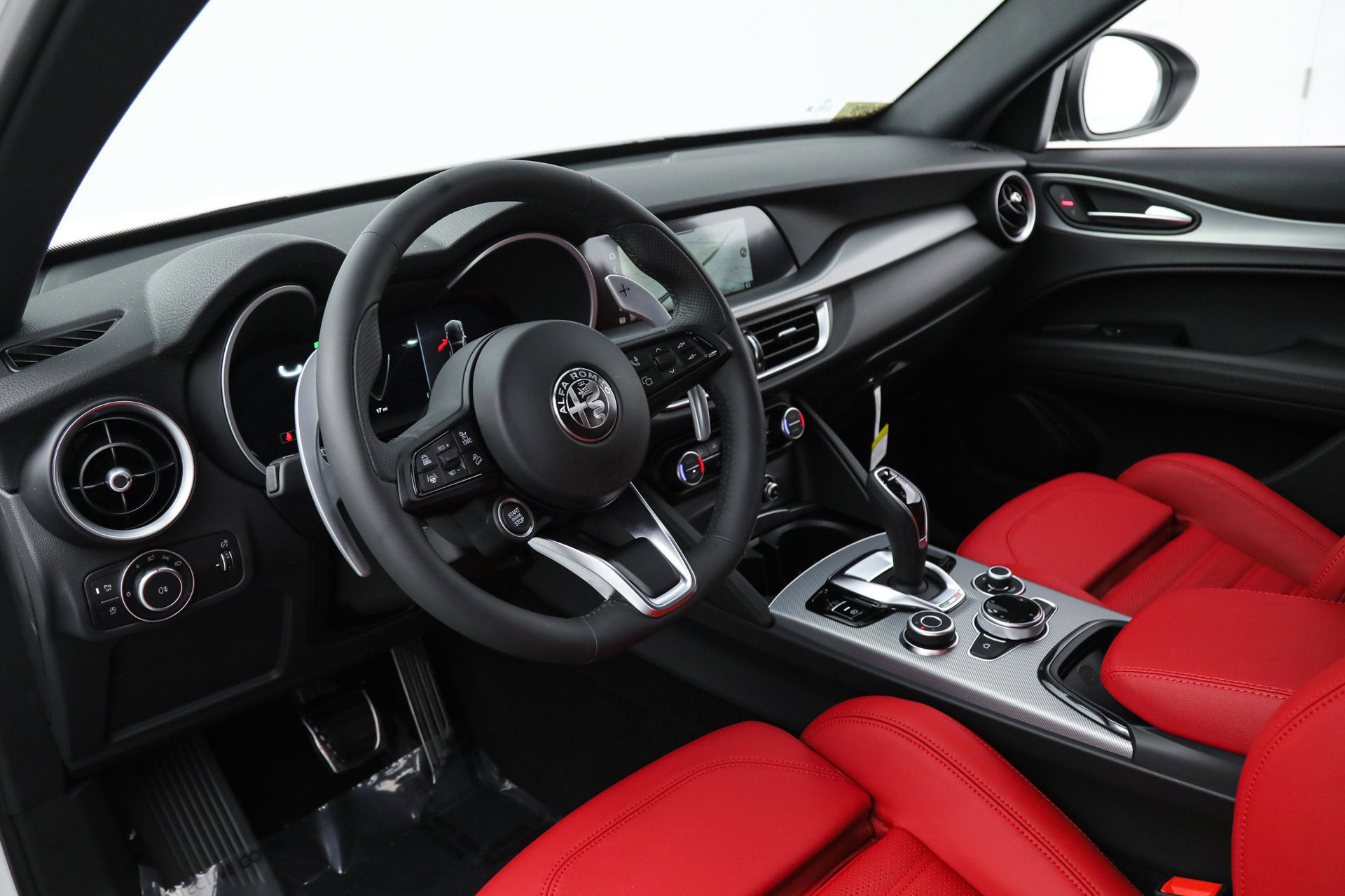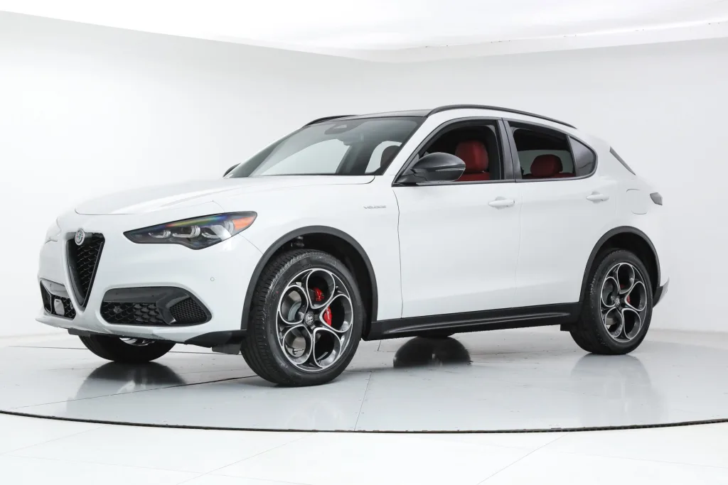 - Gloss Black Roof Rails The 2025 Stelvio is equipped as standard with All-Wheel-Drive, LED Tri-Lobe Headlights, 12.3-inch TFT Digital Gauge Cluster, Navigation, Satellite and HD Radio, Apple CarPlay, Android Auto, Wireless Charging, Aluminum Paddle Shifters, Heated F/R Seats and Steering Wheel, Power Adjustable Front Seats with Lumbar, Adaptive Headlamps, Reverse Camera, AutoDimming Exterior Mirrors, Power-Folding Heated Mirrors, RainSensitive Windshield Wipers, Keyless Entry and Start, Remote Start, HomeLink, Carbon Fiber Drive Shaft, Alfa DNA Drive Mode System, ForwardCollision Warning Plus, Lane-Keep Assist, Traffic Sign Recognition, Driver Attention Alert, Adaptive Cruise Control with Full Stop, Blind Spot and Cross Path Detection, Front and Rear ParkAssist Sensors, LED DRLs and Dark Tail Lamps, 19-inch Sport 5-Hole Aluminum Wheels, Brembo Front Brakes, Dual Dark Exhaust Tips, and Vulcano Black Mirror Caps. The Stelvio is a new breed of high-performance SUV that is designed to reinvent the connection with the road. It is a perfect balance of seductive styling and performance cues. The Stelvio is built on the Giulia sedan platform and features the same excellent handling dynamics, while offering the practicality of a sport utility vehicle. Luxurious, powerful and high tech, the Stelvio is the true driver's SUV. If you are in the market for an Alfa Romeo Stelvio Veloce, please call or email us today.
