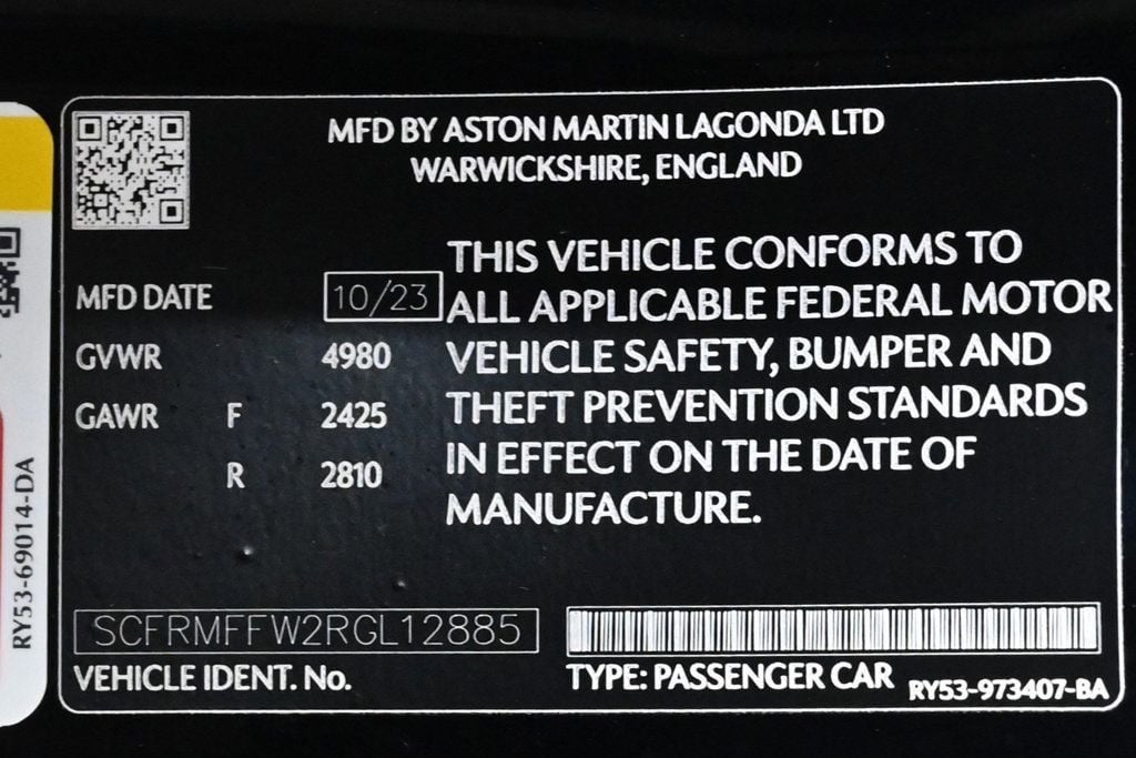 EXTREMELY LOW MILES! Get the best value from your vehicle purchase. This 2024 boasts an extremely low 2703 miles! LOADED WITH VALUE! Comes equipped with: Air Conditioning, Navigation System, Front Heated Seats. This Aston Martin DB12 also includes Clock, Climate Control, Power Passenger Seat, Tachometer, Multi-Zone Climate Control, Memory Seat Position, Digital Info Center, Cruise Control, Tilt Steering Wheel, Power Steering, Telescoping Steering Wheel, Power Windows, Steering Radio Controls, Power Mirrors, Leather Steering Wheel, Leather Shifter, Driver Airbag, ABS Brakes, Fog Lights, Passenger Airbag, Traction Control, Intermittent Wipers, Side Airbags, Dynamic Stability, Keyless Entry, Rear Defogger, Security System, AM/FM, Surround Sound, Touch Screen, Rear Spoiler, Center Arm Rest, Cup Holders, Vanity Mirrors, Heated Mirrors, Rear Fog Lamps, Daytime Running Lights, Parking Sensors, Reverse Camera, Side Curtain Airbags, Roll Stability Control, Tire Pressure Monitor, Aux. Audio Input. Air Conditioning, Climate Control, Dual Zone Climate Control, Cruise Control, Power Steering, Power Windows, Power Mirrors, Leather Steering Wheel, Leather Shifter, Power Passenger Seat, Memory Seat Position, Clock, Tachometer, Digital Info Center, Tilt Steering Wheel, Telescoping Steering Wheel, Steering Wheel Radio Controls, Driver Airbag, Passenger Airbag, Side Airbags, Keyless Entry, Security System, ABS Brakes, Traction Control, Dynamic Stability, Rear Defogger, Fog Lights, Intermittent Wipers, AM/FM, Alloy Wheels, Leather Interior Surface, Navigation System, 11 Speakers, Radio data system, Radio: Aston Martin Infotainment Audio System, Automatic temperature control, Power driver seat, Adaptive suspension, Four wheel independent suspension, 4-Wheel Disc Brakes, Dual front impact airbags, Dual front side impact airbags, Front anti-roll bar, Knee airbag, Low tire pressure warning, Occupant sensing airbag, Overhead airbag, Rear anti-roll bar, Brake assist, Delay-off headlights, Fully automatic headlights, Bumpers: body-color, Heated door mirrors, Power door mirrors, Spoiler, Turn signal indicator mirrors, Apple CarPlay, Compass, Driver door bin, Driver vanity mirror, Front reading lights, Illuminated entry, Outside temperature display, Passenger vanity mirror, Rear reading lights, Rear seat center armrest, Sport steering wheel, Telescoping steering wheel, Front Center Armrest, Heated Front Comfort Seats, Heated front seats, Leather Seat Trim, Sport Plus Seats, Passenger door bin, Wheels: 21 Y-Spoke - Satin Bronze , Rain sensing wipers Aux. Audio Input, Center Arm Rest, Cup Holders, Daytime Running Lights, Front Heated Seats, Heated Mirrors, Navigation System, Parking Sensors, Rear Fog Lamps, Rear Spoiler, Rear Spoiler, Reverse Camera, Roll Stability Control, Side Curtain Airbags, Tire Pressure Monitor, Vanity Mirrors - Contact THE COLLECTION GENERAL at 786-349-9658 or GENERAL@THECOLLECTION.COM for more information. -