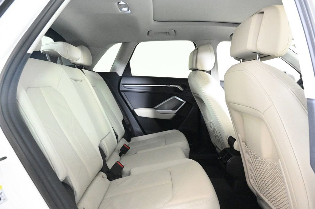 EXTREMELY LOW MILES! Get the best value from your vehicle purchase. This 2023 boasts an extremely low 12926 miles! LOADED WITH VALUE! Comes equipped with: Air Conditioning, Rear Air Conditioning, Sunroof, MP3, Front Heated Seats. This Audi Q3 also includes Power Driver's Seat, Clock, Climate Control, Power Passenger Seat, Tachometer, Multi-Zone Climate Control, Memory Seat Position, Digital Info Center, Cruise Control, Privacy Glass/Tinted Windows, Tilt Steering Wheel, Power Steering, Telescoping Steering Wheel, Power Windows, Steering Radio Controls, Power Mirrors, Moonroof, Leather Steering Wheel, Leather Shifter, Driver Airbag, ABS Brakes, Fog Lights, Passenger Airbag, Traction Control, Intermittent Wipers, Side Airbags, Dynamic Stability, Keyless Entry, Rear Defogger, Security System, AM/FM, Anti-Theft, Touch Screen, Satellite Radio, Sliding Rear Window, Rear Spoiler, Rear Wipers, Center Arm Rest, Remote Trunk Lid, Vanity Mirrors, Heated Mirrors, Rear Fog Lamps, Child Proof Door Locks, Daytime Running Lights, Parking Sensors, Reverse Camera, Side Curtain Airbags, Roll Stability Control, Power Lift Gate, Tire Pressure Monitor, Carpeted Floor Mats, Overhead Console, Aux. Audio Input, HD Radio, Voice Control. Air Conditioning, Climate Control, Dual Zone Climate Control, Cruise Control, Tinted Windows, Power Steering, Power Windows, Power Mirrors, Leather Steering Wheel, Leather Shifter, Power Drivers Seat, Power Passenger Seat, Memory Seat Position, Rear Air Conditioning, Phone, Clock, Tachometer, Digital Info Center, Tilt Steering Wheel, Telescoping Steering Wheel, Steering Wheel Radio Controls, Sunroof, Moonroof, Driver Airbag, Passenger Airbag, Side Airbags, Keyless Entry, Security System, ABS Brakes, Traction Control, Dynamic Stability, Rear Defogger, Fog Lights, Intermittent Wipers, AM/FM, Anti-Theft, Alloy Wheels, Leather Interior Surface, 19 Wheel Package, Convenience Package, LED Interior Lighting Package, 10 Speakers, Radio data system, Radio: Audi Sound System, SiriusXM with 360L, Automatic temperature control, Audi Advanced Key, Power driver seat, Four wheel independent suspension, 4-Wheel Disc Brakes, Dual front impact airbags, Dual front side impact airbags, Emergency communication system: Audi connect CARE, Front anti-roll bar, Knee airbag, Low tire pressure warning, Occupant sensing airbag, Overhead airbag, Rear anti-roll bar, Power Liftgate, Brake assist, Exterior Parking Camera Rear, Auto High-beam Headlights, Delay-off headlights, Fully automatic headlights, Audi Beam-Rings, Auto-Dimming Power-Folding Exterior Mirrors, Bumpers: body-color, Heated door mirrors, Power door mirrors, Spoiler, Turn signal indicator mirrors, Audi Guard Protection Kit, Driver door bin, Driver vanity mirror, Frameless Auto-Dimming Interior Mirror with Compass, Front reading lights, Illuminated entry, Outside temperature display, Overhead console, Passenger vanity mirror, Rear reading lights, Rear seat center armrest, Telescoping steering wheel, Front Center Armrest, Heated Front Bucket Seats, Heated front seats, Leather Seating Surfaces, Split folding rear seat, Sport Plus Seats, Passenger door bin, Wheels: 18 5-V-Spoke-S Design, Wheels: 19 5-Double-Spoke Dynamic Design, Rain sensing wipers, Rear window wiper, 3.533 Axle Ratio Aux. Audio Input, Carpeted Floor Mats, Center Arm Rest, Child Proof Door Locks, Daytime Running Lights, Front Heated Seats, Heated Mirrors, Overhead Console, Parking Sensors, Power Lift Gate, Rear Fog Lamps, Rear Spoiler, Rear Spoiler, Rear Wipers, Remote Trunk Lid, Reverse Camera, Roll Stability Control, Side Curtain Airbags, Sliding Rear Window, Tire Pressure Monitor, Vanity Mirrors - Contact Alvaro Uribe at 786-628-7606 or auribe@ferrariofmiami.com for more information. -