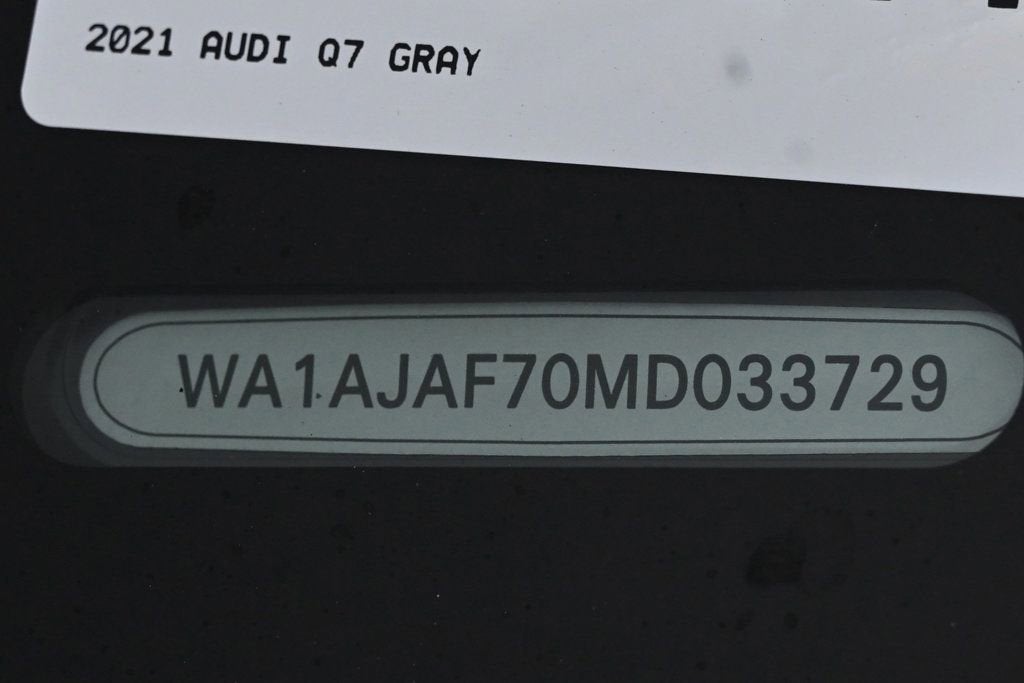 VERY LOW MILES! At just 29480 miles, this 2021 Audi provides great value. KEY FEATURES AND OPTIONS Comes equipped with: Air Conditioning, Rear Air Conditioning, Sunroof, Front Heated Seats. This Audi Q7 also includes Power Driver's Seat, Clock, Climate Control, Power Passenger Seat, Tachometer, Multi-Zone Climate Control, Memory Seat Position, Digital Info Center, Cruise Control, Homelink System, Privacy Glass/Tinted Windows, Tilt Steering Wheel, Power Steering, Roof Rack, Telescoping Steering Wheel, Power Windows, Steering Radio Controls, Wood Trim, Power Mirrors, Moonroof, Leather Steering Wheel, Leather Shifter, Driver Airbag, ABS Brakes, Fog Lights, Passenger Airbag, Traction Control, Intermittent Wipers, Side Airbags, Dynamic Stability, Keyless Entry, Rear Defogger, Security System, AM/FM, Anti-Theft, Sliding Rear Window, Rear Spoiler, 3rd Row Seating, Rear Wipers, Center Arm Rest, Remote Fuel Door, Vanity Mirrors, Heated Mirrors, Rear Fog Lamps, Child Proof Door Locks, Daytime Running Lights, Parking Sensors, Reverse Camera, Side Curtain Airbags, Roll Stability Control, Power Lift Gate, Tire Pressure Monitor, Carpeted Floor Mats, Overhead Console, HD Radio. Air Conditioning, Climate Control, Dual Zone Climate Control, Cruise Control, Tinted Windows, Power Steering, Power Windows, Power Mirrors, Leather Steering Wheel, Leather Shifter, Power Drivers Seat, Power Passenger Seat, Memory Seat Position, Roof Rack, Rear Air Conditioning, Phone, Wood Trim, Clock, Tachometer, Digital Info Center, Homelink System, Tilt Steering Wheel, Telescoping Steering Wheel, Steering Wheel Radio Controls, Sunroof, Moonroof, Driver Airbag, Passenger Airbag, Side Airbags, Keyless Entry, Security System, ABS Brakes, Traction Control, Dynamic Stability, Rear Defogger, Fog Lights, Intermittent Wipers, AM/FM, Anti-Theft, Alloy Wheels, Leather Interior Surface, Navigation system: Audi MMI Navigation plus with Touch Response, Ambient Interior Lighting Package, Convenience Package, Interior Protection Package, 10 Speakers, Radio data system, Radio: Audi Sound System, Automatic temperature control, Power driver seat, Steering wheel memory, 3-Spoke Multifunction Steering Wheel with Paddles, Four wheel independent suspension, 4-Wheel Disc Brakes, Dual front impact airbags, Dual front side impact airbags, Emergency communication system: Audi connect CARE, PRIME & PLUS, Front anti-roll bar, Low tire pressure warning, Occupant sensing airbag, Overhead airbag, Rear anti-roll bar, Power Liftgate, Brake assist, Exterior Parking Camera Rear, Auto High-beam Headlights, Delay-off headlights, Fully automatic headlights, Bumpers: body-color, Front & Rear Doors Audi Beam-Rings, Heated Auto-Dimming Power Folding Exterior Mirrors, Heated door mirrors, Power door mirrors, Spoiler, Turn signal indicator mirrors, Auto-dimming Rear-View mirror, Black Cloth Headliner, Compass, Driver door bin, Driver vanity mirror, Front reading lights, Genuine wood door panel insert, Illuminated entry, Outside temperature display, Overhead console, Passenger vanity mirror, Rear reading lights, Rear seat center armrest, Telescoping steering wheel, Topview Camera System, 3rd row seats: bench, Front Center Armrest, Heated Front Bucket Seats, Heated front seats, Leather Seating Surfaces, Reclining 3rd row seat, Split folding rear seat, Sport Plus Seats, Passenger door bin, Wheels: 19 5-Arm-Star Design, Rain sensing wipers, Rear window wiper, 3.76 Axle Ratio 3rd Row Seating, Carpeted Floor Mats, Center Arm Rest, Child Proof Door Locks, Daytime Running Lights, Front Heated Seats, Heated Mirrors, Overhead Console, Parking Sensors, Power Lift Gate, Rear Fog Lamps, Rear Spoiler, Rear Spoiler, Rear Wipers, Remote Fuel Door, Reverse Camera, Roll Stability Control, Side Curtain Airbags, Sliding Rear Window, Tire Pressure Monitor, Vanity Mirrors - Contact Alvaro Uribe at 786-628-7606 or auribe@ferrariofmiami.com for more information. -