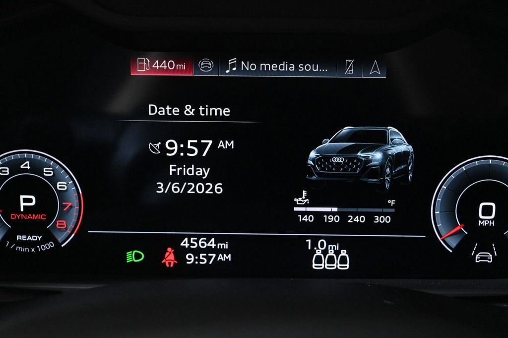 THE COLLECTION CERTIFIED This Audi Q8 has been certified by The Collection. Service Loaners (also known as courtesy cars) are dealer-owned models that stay on the dealership lot and are used exclusively for business purposes, including serving as temporary rentals for service-center clients whose personal vehicles will be in service for longer than they can afford to wait. VERY LOW MILES! At just 4561 miles, this 2025 Audi provides great value. KEY FEATURES AND OPTIONS Comes equipped with: Air Conditioning, Rear Air Conditioning, Sunroof, Front Heated Seats. This Audi Q8 also includes Power Driver's Seat, Clock, Power Passenger Seat, Tachometer, Memory Seat Position, Digital Info Center, Cruise Control, Homelink System, Privacy Glass/Tinted Windows, Tilt Steering Wheel, Power Steering, Telescoping Steering Wheel, Power Windows, Steering Radio Controls, Wood Trim, Power Mirrors, Moonroof, Leather Steering Wheel, Leather Shifter, Driver Airbag, ABS Brakes, Fog Lights, Passenger Airbag, Traction Control, Intermittent Wipers, Dynamic Stability, Keyless Entry, Rear Defogger, Security System, AM/FM, Anti-Theft, Sliding Rear Window, Rear Spoiler, Rear Wipers, Center Arm Rest, Remote Fuel Door, Vanity Mirrors, Heated Mirrors, Rear Fog Lamps, Child Proof Door Locks, Daytime Running Lights, Parking Sensors, Side Curtain Airbags, Roll Stability Control, Rear-Side Airbags, Power Lift Gate, Tire Pressure Monitor, Carpeted Floor Mats, Overhead Console, Heated Steering Wheel, HD Radio. Air Conditioning, Climate Control, Cruise Control, Tinted Windows, Power Steering, Power Windows, Power Mirrors, Leather Steering Wheel, Leather Shifter, Power Drivers Seat, Power Passenger Seat, Memory Seat Position, Rear Air Conditioning, Phone, Wood Trim, Clock, Tachometer, Digital Info Center, Homelink System, Tilt Steering Wheel, Telescoping Steering Wheel, Steering Wheel Radio Controls, Sunroof, Moonroof, Driver Airbag, Passenger Airbag, Keyless Entry, Security System, ABS Brakes, Traction Control, Dynamic Stability, Rear Defogger, Fog Lights, Intermittent Wipers, AM/FM, Anti-Theft, Alloy Wheels, Leather Interior Surface, Navigation system: Audi MMI Navigation with Touch Response, Black Optic Package, Convenience Package, Executive Plus Package, LED Interior Lighting Plus Package, Premium Plus Package, S Line Style Package, 10 Speakers, Radio data system, Radio: Audi MMI Navigation Plus with MMI Touch Response, Automatic temperature control, Heated Rear Seats, Power driver seat, Steering wheel memory, Adaptive suspension, Comfort Adaptive Air Suspension, Four wheel independent suspension, 4-Wheel Disc Brakes, Dual front impact airbags, Dual front side impact airbags, Emergency communication system: Audi connect CARE, Front anti-roll bar, Low tire pressure warning, Occupant sensing airbag, Overhead airbag, Rear anti-roll bar, Rear side impact airbag, Power Liftgate, Brake assist, Exterior Parking Camera Rear, Auto High-beam Headlights, Delay-off headlights, Fully automatic headlights, Headlight cleaning, Dual-Pane Acoustic Glass For Side Windows, Anthracite Gray Audi Rings, Auto-dimming door mirrors, Black Exterior Trim, Bumpers: body-color, Dark Chrome Exhaust Tips, Heated door mirrors, Power door mirrors, Power Soft-Closing Doors, S Line Exterior, Spoiler, Turn signal indicator mirrors, Audi Guard Protection Kit, Auto-dimming Rear-View mirror, Compass, Control Buttons in Gloss Black with Haptic Feedback, Driver door bin, Driver vanity mirror, Front and Rear Doors Audi Beam-Rings, Front reading lights, Genuine wood door panel insert, Heated Steering Wheel, Illuminated Door Sills, Illuminated entry, Outside temperature display, Overhead console, Passenger vanity mirror, Rear reading lights, Rear seat center armrest, S Line Illuminated Door Sills, Telescoping steering wheel, Top View Camera System with Virtual 360 View, Front Center Armrest, Front Seats with Ventilation, Heated Front Bucket Seats, Heated front seats, Leather Seating Surfaces, Split folding rear seat, Sport Plus Seats, Passenger door bin, 7-Pin Adapter, Trailer Hitch, Wheels: 21 5-W-Spoke-Design Bicolor Finish, Wheels: 22 5-Double-Arm Design Bicolor Finish, Power Rear Side Windows, Rain sensing wipers, Rear window wiper Carpeted Floor Mats, Center Arm Rest, Child Proof Door Locks, Daytime Running Lights, Front Heated Seats, Heated Mirrors, Heated Steering Wheel, Overhead Console, Parking Sensors, Power Lift Gate, Rear Fog Lamps, Rear Spoiler, Rear Spoiler, Rear Wipers, Rear-Side Airbags, Remote Fuel Door, Roll Stability Control, Side Curtain Airbags, Sliding Rear Window, Tire Pressure Monitor, Vanity Mirrors - Contact Alvaro Uribe at 786-628-7606 or auribe@ferrariofmiami.com for more information. -