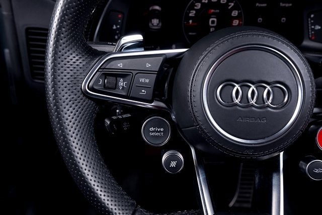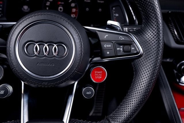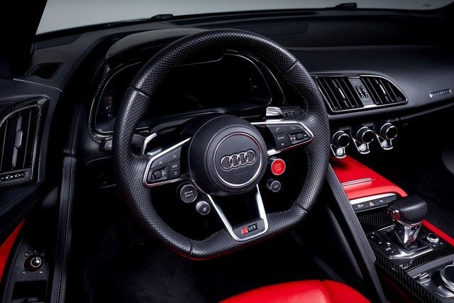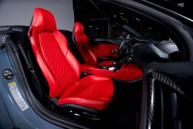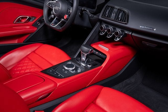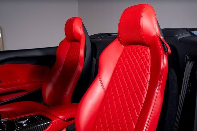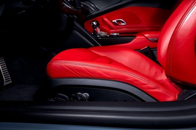 Ferrari of Long Island is proud to present this stunning Audi R8 V10 Performance Spyder Quattro, finished in Kemora Gray Metallic over a striking Express Red interior. With an original MSRP of $230,990, this R8 Spyder delivers breathtaking performance, open-air exhilaration, and unmistakable presence. Powered by a naturally aspirated 5.2-liter V10 engine paired with a 7-speed S tronic transmission and Quattro all-wheel drive system, the R8 V10 Performance Spyder offers lightning-quick shifts, exceptional grip, and thrilling acceleration. The dynamic steering system further enhances precision and responsiveness, creating a truly engaging driving experience. This example rides on 20" 5-double-spoke-dynamic design wheels in anthracite finish and features red brake calipers, perfectly complementing the bold Express Red interior. Carbon fiber accents, including the front spoiler, rocker inlays, and exhaust surround, add an aggressive motorsport-inspired touch to the exterior. Black Audi rings and badges complete the sleek and purposeful appearance. Inside, the Sport Seat Package elevates both comfort and style, offering 18-way power sport seats with pneumatic leg and side bolsters, diamond-stitched seating surfaces, and a full leather package. The cabin blends supercar performance with refined craftsmanship, making every drive as luxurious as it is exhilarating. Combining iconic V10 performance, Quattro confidence, and open-top excitement, this Audi R8 V10 Performance Spyder Quattro represents an exceptional opportunity for enthusiasts seeking a true exotic driving experience. Please contact us for additional information or to schedule a private viewing.
