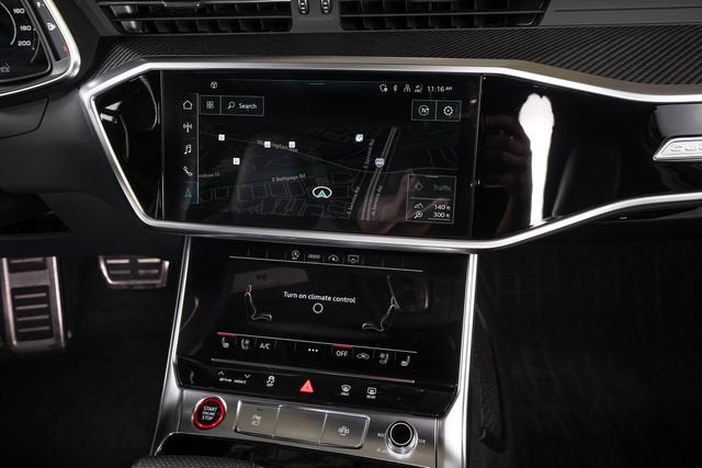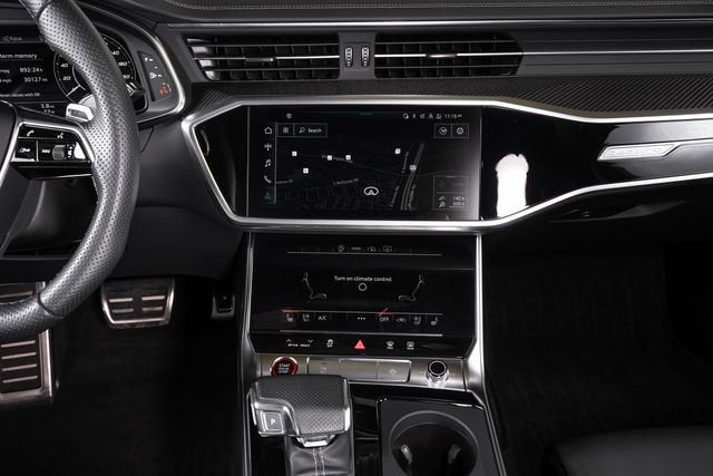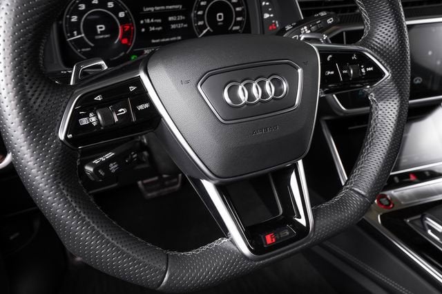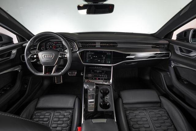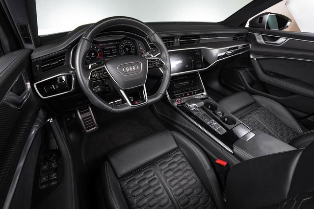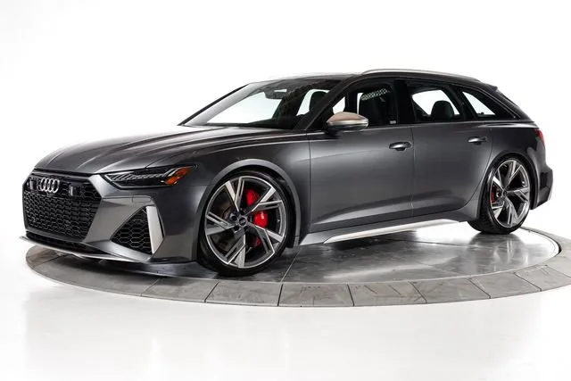 Ferrari of Long Island is proud to present this stunning Audi RS 6 Avant, finished in Daytona Gray pearl effect over a Black leather interior with Rock Gray stitching. This highly optioned example is equipped with a host of premium features, including the Driver Assistance Package with adaptive cruise assist with lane guidance, Audi side assist with pre sense rear, intersection assist, and traffic sign recognition. A night vision assistant further enhances visibility and driver awareness in low-light conditions. Performance and styling are elevated by a sport exhaust system and striking red brake calipers, emphasizing the RS 6 Avants dynamic character and aggressive presence. Please contact Ferrari of Long Island today for additional information or to schedule your private viewing.