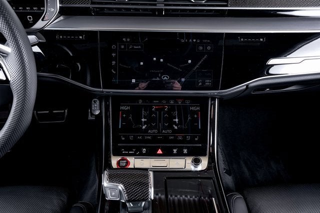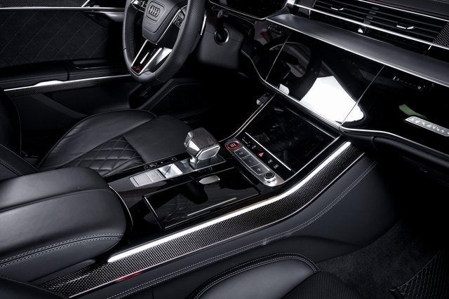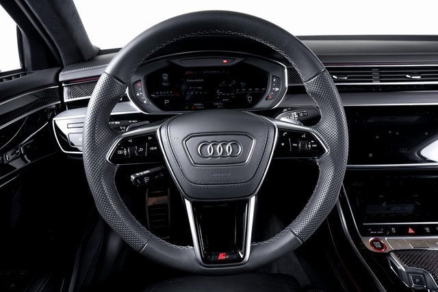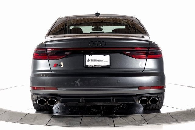 Ferrari of Long Island is proud to present this exceptional Audi S8, finished in Daytona Gray Pearl Effect over a refined Black interior. With an original MSRP of $132,780, this S8 delivers understated executive presence paired with exhilarating twin-turbo V8 performance. Equipped with an 8-speed Tiptronic transmission and Audis legendary quattro all-wheel drive system, the S8 offers seamless power delivery and confident handling in all conditions. It rides on striking 21" 10-spoke design wheels wrapped in summer performance tires, complemented by Black brake calipers for a subtle yet athletic appearance. The Comfort Plus Package elevates the cabin with a Dinamica headliner, extended leather package (upper dashboard and door tops), heated rear outboard seats, and a head-up display. Digital Matrix-design LED headlights provide advanced illumination technology with exceptional visibility and precision. The Executive Package enhances both safety and convenience, featuring Adaptive Cruise Assist with lane guidance, Audi Side Assist with Pre Sense Rear, Intersection Assist, Traffic Sign Recognition, and Remote Park Assist Plus for effortless maneuvering in tight spaces. Further enhancing its bold aesthetic, the Black Optic Plus Package adds black Audi rings and model badges, black exterior mirror housings, and black exterior trim, giving the S8 a sleek, aggressive finish. Blending refined luxury, advanced driver assistance technology, and formidable performance, this Audi S8 represents a compelling opportunity in the high-performance executive sedan segment. Please contact us for additional information or to schedule a private viewing.