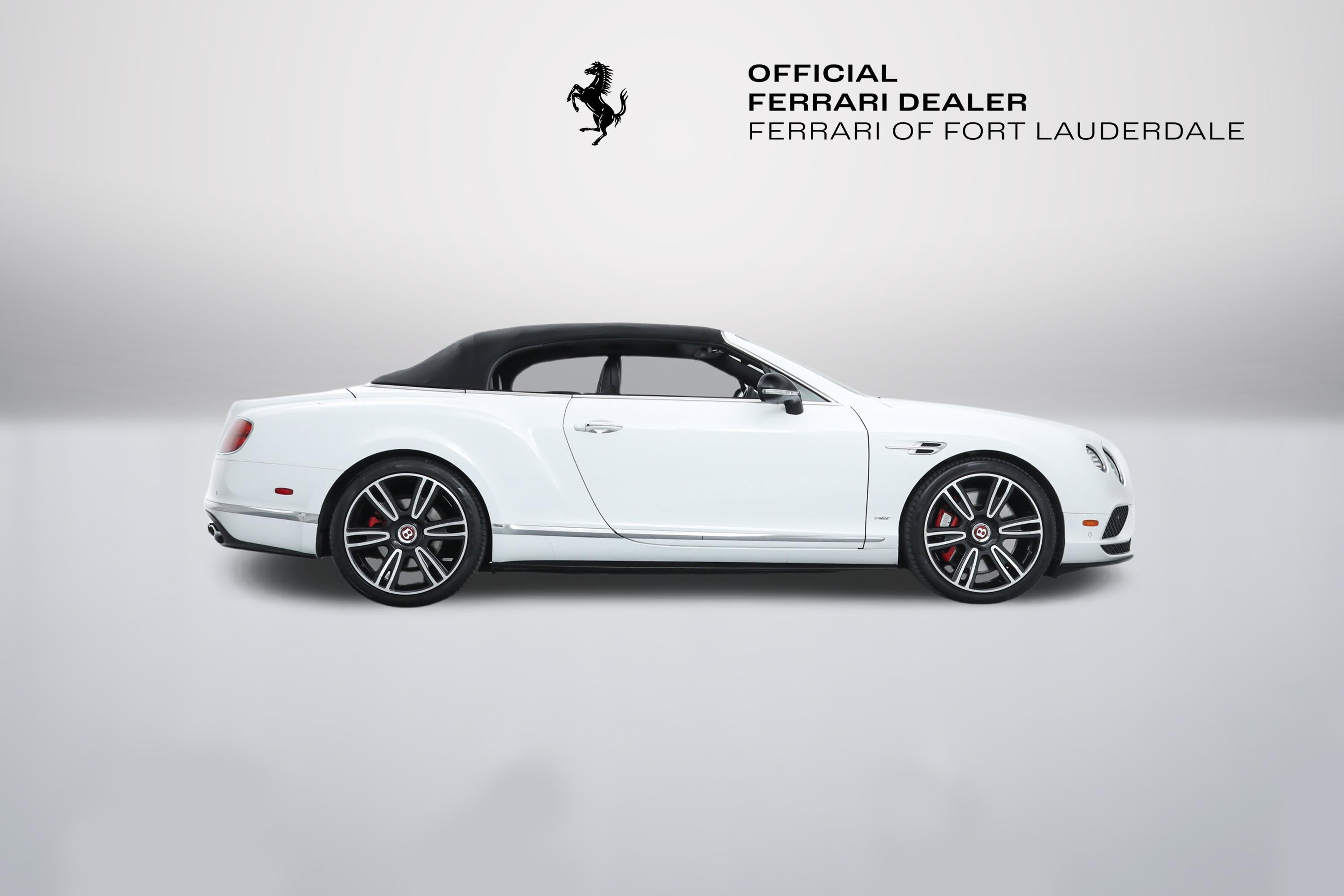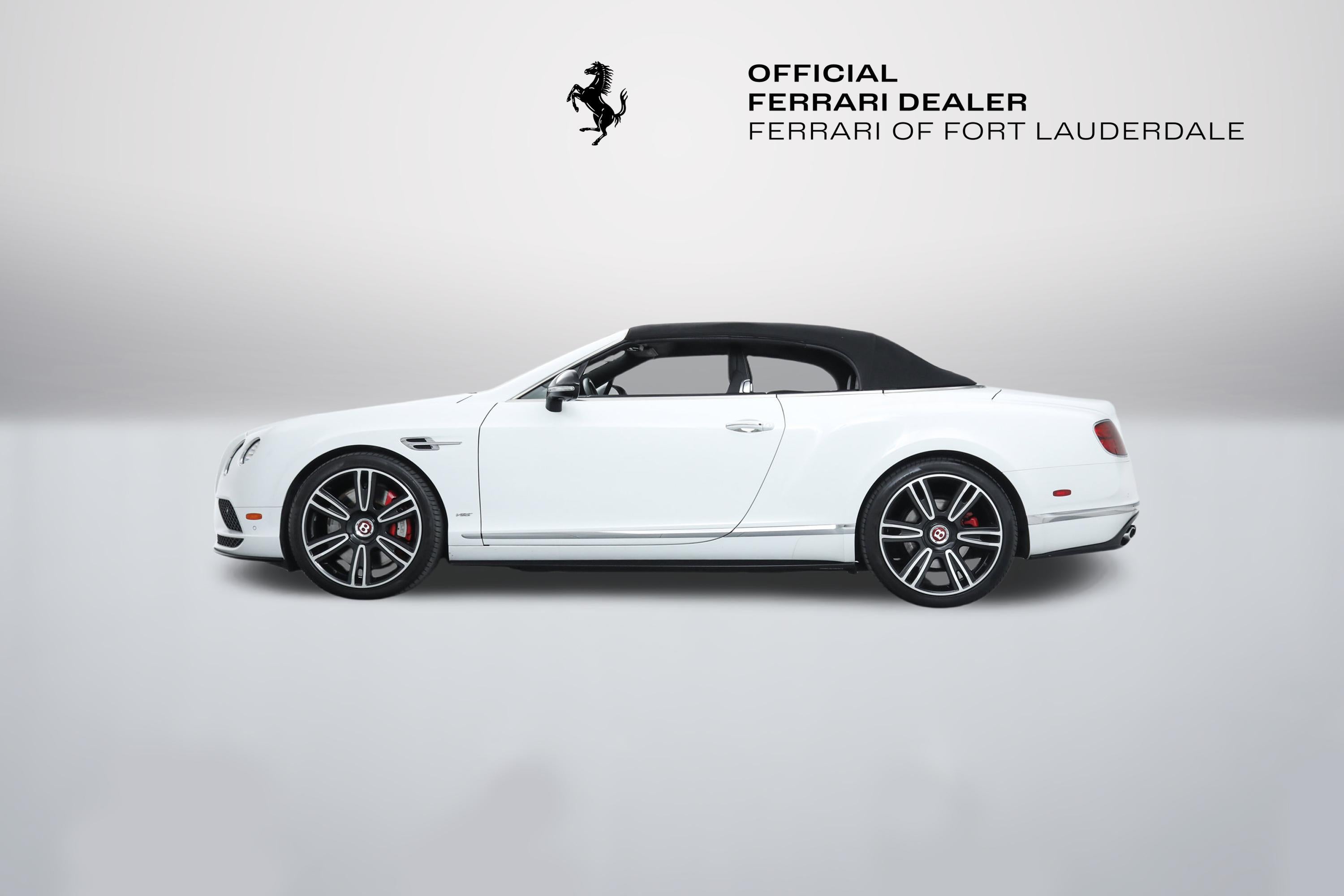 Bentley Continental GT V8 S Convertible Mulliner Driving Specification Ferrari Maserati Alfa Romeo of Fort Lauderdale is proud to present this gorgeous Bentley Continental GT V8 S Convertible. Finished in Arctica over Beluga, the Continental GT V8 S Convertible has been carefully driven by ONE PREVIOUS OWNER. Expertly maintained by authorized Bentley dealers, it is in pristine condition throughout. This Bentley has been specified with: - Mulliner Driving Specification ($9,680) - Arctica Paint ($5,715) - Sports Exhaust ($2,580) - Contrast Stitching ($1,980) - Dark Tint Front and Rear Lamps ($1,805) - Ventilated Front Seats with Massage ($1,070) - Exterior Mirrors in Beluga Gloss ($670) - Deep Pile Overmats to Front and Rear ($425) - Hand Contrast Stitching to Steering Wheel ($210) The acclaimed Bentley Continental GT Convertible represents the finest in open-top English Grand Touring motorcars. The GT V8 S Convertible is even more powerful than the standard V8 model. It has a higher top speed, tighter suspension, and improved handling. The V8 S is motivated by a wonderful twin-turbo 8-cylinder engine that routes its power through a sophisticated all-wheel-drive system. It was designed as the more athletic and efficient alternative to the 12-cylinder car, and benefits from lower weight and an overall sharper nature. It is still supremely comfortable and powerful however. The Continental GT Convertible body is a work of art, where crisp and muscular lines meet classic details and exceptionally rich paint. Lovely hand-stitched hides and breathtaking wood veneers grace the beautifully appointed cabin, while high-tech amenities ensure your drive will always be a pleasure. If you are in the market for a Bentley Continental GT V8 S Convertible Mulliner, please call or email us today.