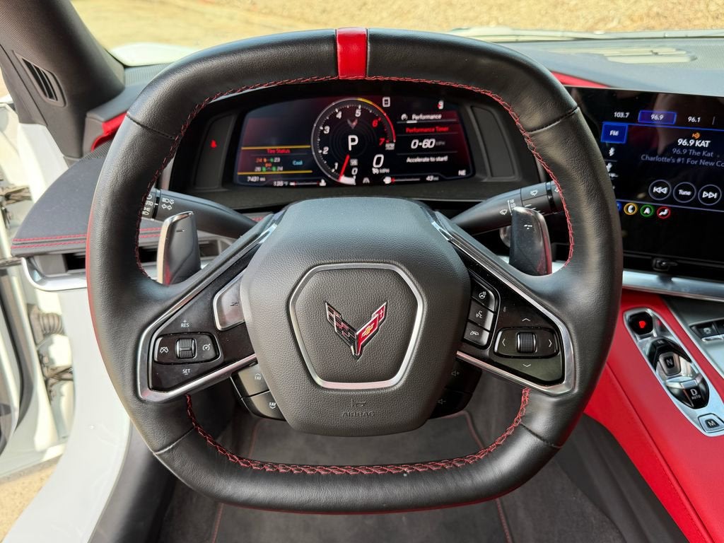 Check out all these great options Memory Driver & Passenger Convenience Package, Preferred Equipment Group 2LT (2 Cargo Nets, Driver Power Bolster Seat Adjuster, Electrical Theft Deterrent System, HD Front & Rear Vision Cameras, Head-Up Display, Heated & Vented Driver & Passenger Seats, Heated Steering Wheel, Passenger Power Bolster Seat Adjuster, Performance Data & Video Recorder, Power Driver Lumbar Control Seat Adjuster, Power Passenger Lumbar Control Seat Adjuster, Power-Adjustable Outside Heated Mirrors, Rear Camera Mirror, Rear Cross Traffic Alert, Side Blind Zone Alert, Universal Home Remote, Vehicle Inclination Theft Deterrent Sensor, Vehicle Interior Movement Theft Deterrent Sensor, and Wireless Charging for Devices), Z51 Performance Package (Electronic Limited-Slip Differential, Heavy-Duty Cooling System, Performance Exhaust w/Stainless-Steel Tips, Performance Rear Axle Ratio, Rear Z51 Spoiler, Z51 Performance Brakes, and Z51 Performance Suspension), 14 Speakers, 4-Wheel Disc Brakes, 8-Way Power Driver Seat Adjuster, 8-Way Power Passenger Seat Adjuster, ABS brakes, Air Conditioning, Alloy wheels, AM/FM radio: SiriusXM, Apple CarPlay/Android Auto, Auto-dimming door mirrors, Auto-dimming Rear-View mirror, Automatic temperature control, Body-Color Removeable Roof Panel, Bose Performance Series Sound System w/14 Speakers, Brake assist, Bright Red-Painted Calipers, Bumpers: body-color, Compass, Delay-off headlights, Driver door bin, Driver vanity mirror, Dual front impact airbags, Dual front side impact airbags, Electronic Stability Control, Emergency communication system: OnStar and Chevrolet connected services capable, Four wheel independent suspension, Front anti-roll bar, Front Bucket Seats, Front Center Armrest, Front dual zone A/C, Front License Plate Bracket, Front Lift Adjustable Height w/Memory, Front reading lights, Fully automatic headlights, Garage door transmitter, GT1 Bucket Seats, HD Radio, Heads-Up Display, Heated door mirrors, Heated front seats, Heated steering wheel, Illuminated entry, Leather Shift Knob, Leather steering wheel, Low tire pressure warning, Memory seat, Mulan Lthr Seating Surfaces w/Perforated Inserts, Navigation System, Occupant sensing airbag, Outside temperature display, Overhead console, Panic alarm, Passenger door bin, Passenger vanity mirror, Power door mirrors, Power driver seat, Power passenger seat, Power steering, Power windows, Radio data system, Radio: Chevrolet Infotainment 3 Premium System, Rear anti-roll bar, Rear Parking Sensors, Rear window defroster, Remote keyless entry, Security system, SiriusXM Radio, Speed control, Speed-sensing steering, Sport steering wheel, Steering wheel memory, Steering wheel mounted audio controls, Tachometer, Telescoping steering wheel, Tilt steering wheel, Traction control, Trip computer, Turn signal indicator mirrors, Variably intermittent wipers, Ventilated front seats, Voltmeter, Wheels: 19" x 8.5" Fr/20" x 11" Rr Bright Silver, and Wheels: 19" x 8.5" Fr/20" x 11" Rr Carbon Flash. 2020 Chevrolet Corvette Stingray PLEASE CALL (704)535-7100 TO VERIFY AVAILABILITY SAVE YOUR CASH & ASK ABOUT OUR LOW RATE FINANCING EXTENDED TERMS AVAILABLE TO QUALIFIED CLIENTELE. Awards: