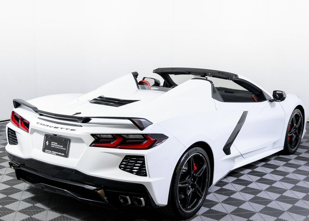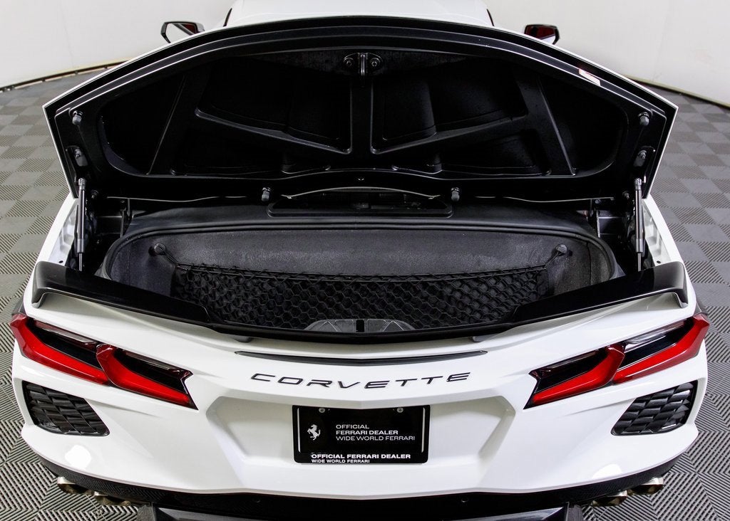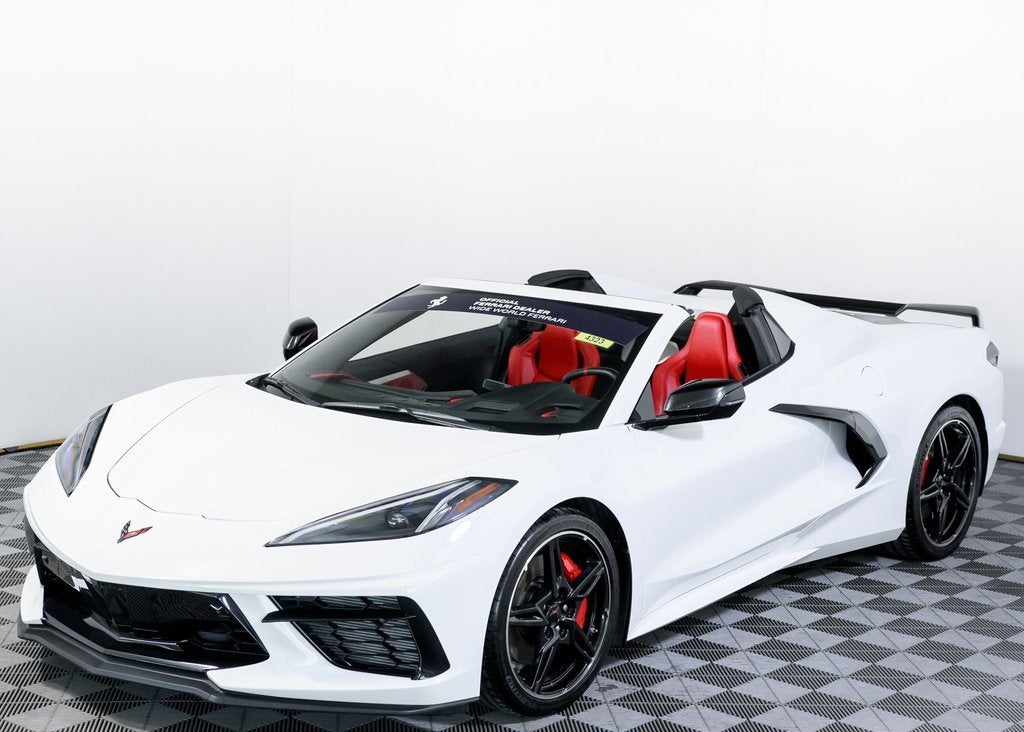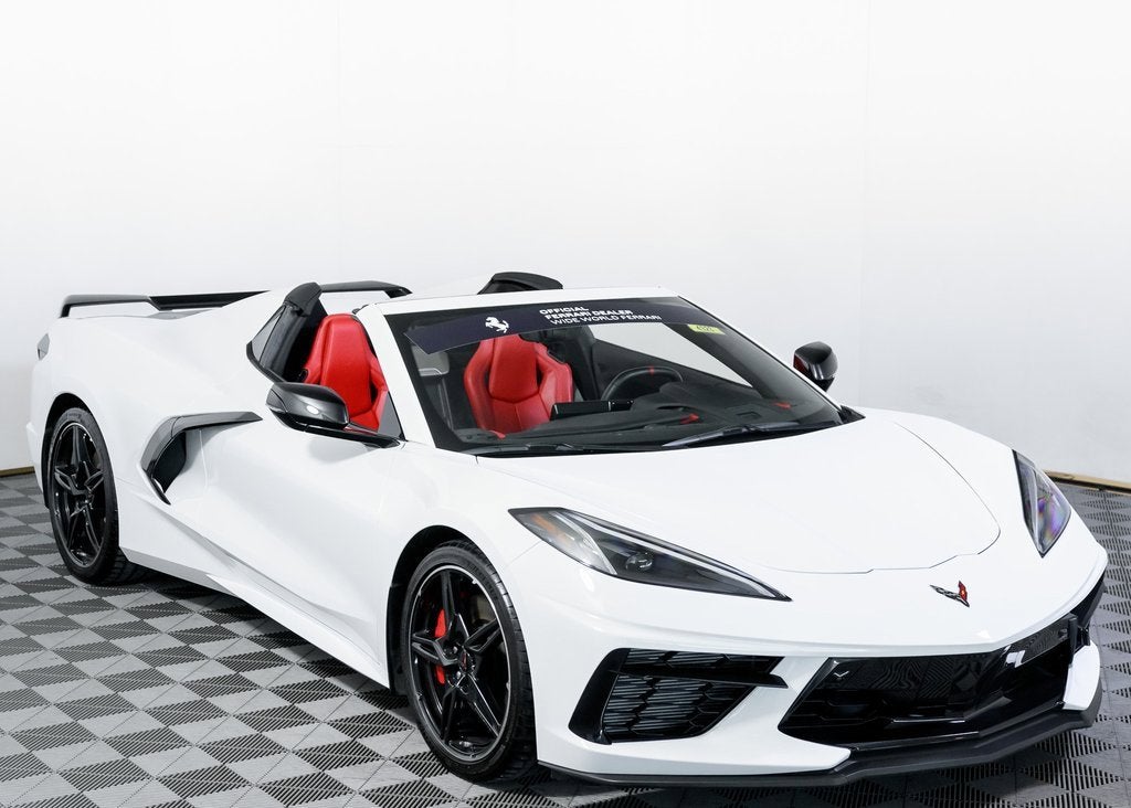 Wide World Ferrari is proud to present this 2020 Chevrolet Corvette Stingray 2LT Convertible, an exceptional low-mileage example showing just 3,721 miles and supported by a clean Carfax. Representing a revolutionary moment in Corvette history, the mid-engine C8 Stingray delivers supercar-level performance, precision handling, and everyday usability, now paired with the exhilaration of open-top driving. Finished in Arctic White, the exterior showcases the Stingrays sharp, aerodynamic lines with a crisp, modern presence. Carbon Flash Metallic painted outside mirrors add subtle contrast, while the 19 front and 20 rear Carbon Flash painted aluminum wheels with machined edges give the car an aggressive, planted stance. The look is completed by Bright Red painted brake calipers, reinforcing the cars performance-focused character. Inside, the cockpit is trimmed in striking Adrenaline Red, creating a bold and immersive driver environment. The 2LT Convertible Preferred Equipment Package elevates comfort and technology, blending premium materials with advanced features to ensure both luxury and performance are seamlessly integrated. Performance is where this Stingray truly shines. The highly desirable Z51 Performance Package enhances handling, braking, and overall dynamics, while Magnetic Ride Control delivers exceptional composure across varying road conditions. Front lift with adjustable height and memory adds everyday practicality, allowing confident navigation of steep driveways and urban obstacles without compromise. As the only 4-Time Cavallino Winning Ferrari Center in the tri-state area and one of the first Ferrari Centers in North America, we pride ourselves on exceptional service. We assist with all aspects of your purchase, including trade-ins, shipping, registration, non-reported financing, and customizations. Conveniently located in Rockland County, just under 30 miles from Manhattan. For more information, email us at ferrarivip@newcountry.com or call 845-682-0129.