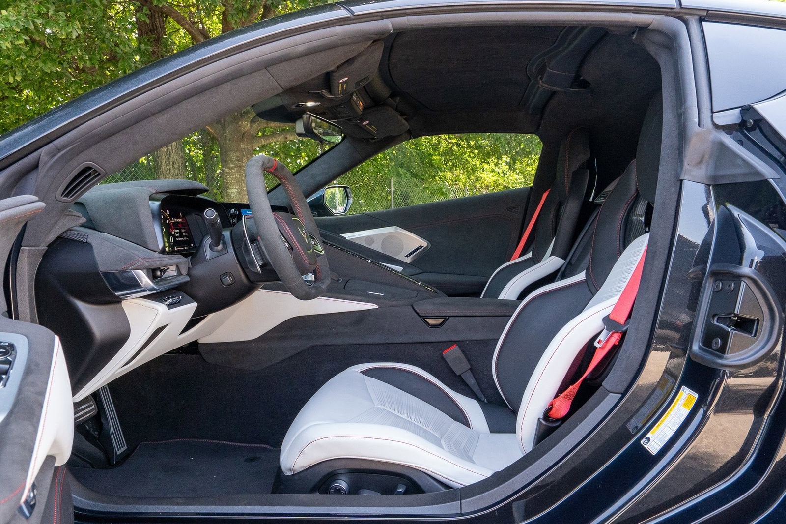 2023 Chevrolet Corvette Stingray 6.2L V8 2 Cargo Nets, 70th Anniversary Special Edition, Apple CarPlay/Android Auto, Automatic Leveling System Headlamp Control, Black Rear Fascia/Roof Storage Protector (LPO), Body-Color Removable Roof Panel, Bose Performance Series Sound System w/14 Speakers, Custom Leather Wrapped Interior Package, Driver Power Bolster Seat Adjuster, Edge Red LT2 Engine Cover, Edge Red-Painted Calipers, Electrical Theft Deterrent System, Front Lift Adjustable Height w/Memory, Garage door transmitter, HD Front & Rear Vision Cameras, Head-Up Display, Heated & Vented Driver & Passenger Seats, Heated Steering Wheel, Leather Shift Knob, Leather steering wheel, Memory Driver & Passenger Convenience Package, Navigation System, Passenger Power Bolster Seat Adjuster, Performance Data & Video Recorder, Power Driver Lumbar Control Seat Adjuster, Power Passenger Lumbar Control Seat Adjuster, Power-Adjustable Outside Heated Mirrors, Preferred Equipment Group 3LT, Premium audio system: Chevrolet Infotainment 3 Premium, Rear Camera Mirror, Rear Cross Traffic Alert, Remote keyless entry, Satin Black Met Full Length Dual Racing Stripes, Side Blind Zone Alert, Sueded Microfiber-Wrapped Steering Wheel, Sueded Microfiber-Wrapped Upper Interior Trim Pkg, Torch Red Seat Belt Color w/Adrenaline Red Dip Int, Universal Home Remote, Vehicle Inclination Theft Deterrent Sensor, Vehicle Interior Movement Theft Deterrent Sensor, Wheels: 19" x 8.5" Fr/20" x 11" Rr Midnight Gray, Wireless Charging for Devices. Awards: