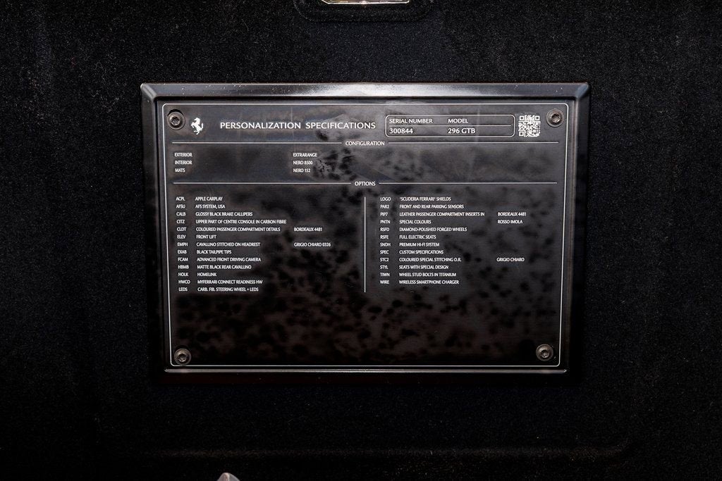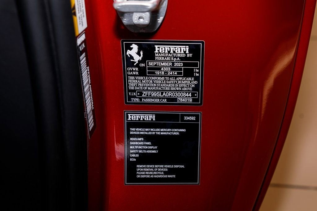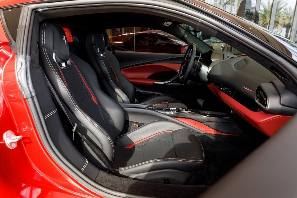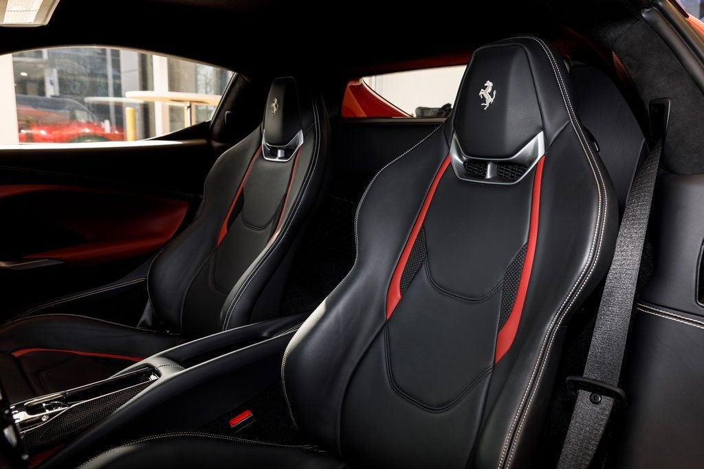 Factory options: External colors - Rosso Imola Internal colors - Nero Carpets colors - Nero -Special colors -Afs system America -Forged wheels glossy diamond -Black brake calipers -Titanium wheel bolts -Suspension lifter -Front parking sensors -'Scuderia Ferrari' shields -Advanced front driving camera -Colored special stitching -Color leather seats stripes -Black ceramic exhaust pipes -Specific design seats -Horse stitched on headrest -Full electric seats -Wireless charger smartphone -Rear prancing horse matte black -Color leather interior inserts -Premium hifi system -Apple CarPlay -Garage door openers -Carbon fibre upper tunnel trim -Carbon steering wheel + paddles + LEDs -Hw readiness MyFerrari connect For more information or to schedule a test drive, contact us today!