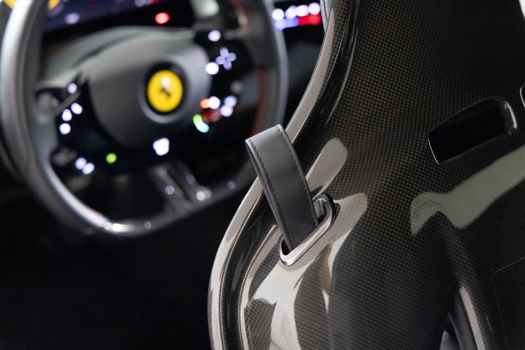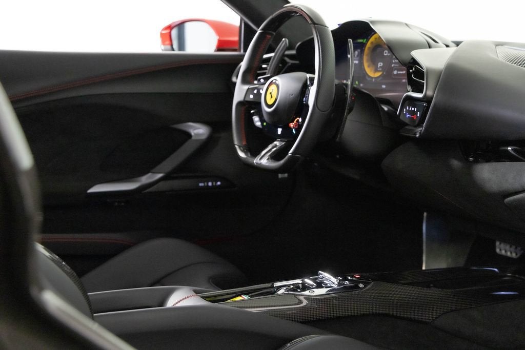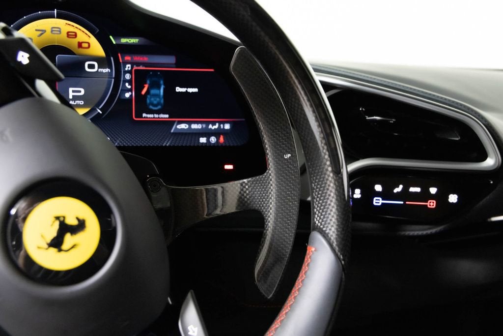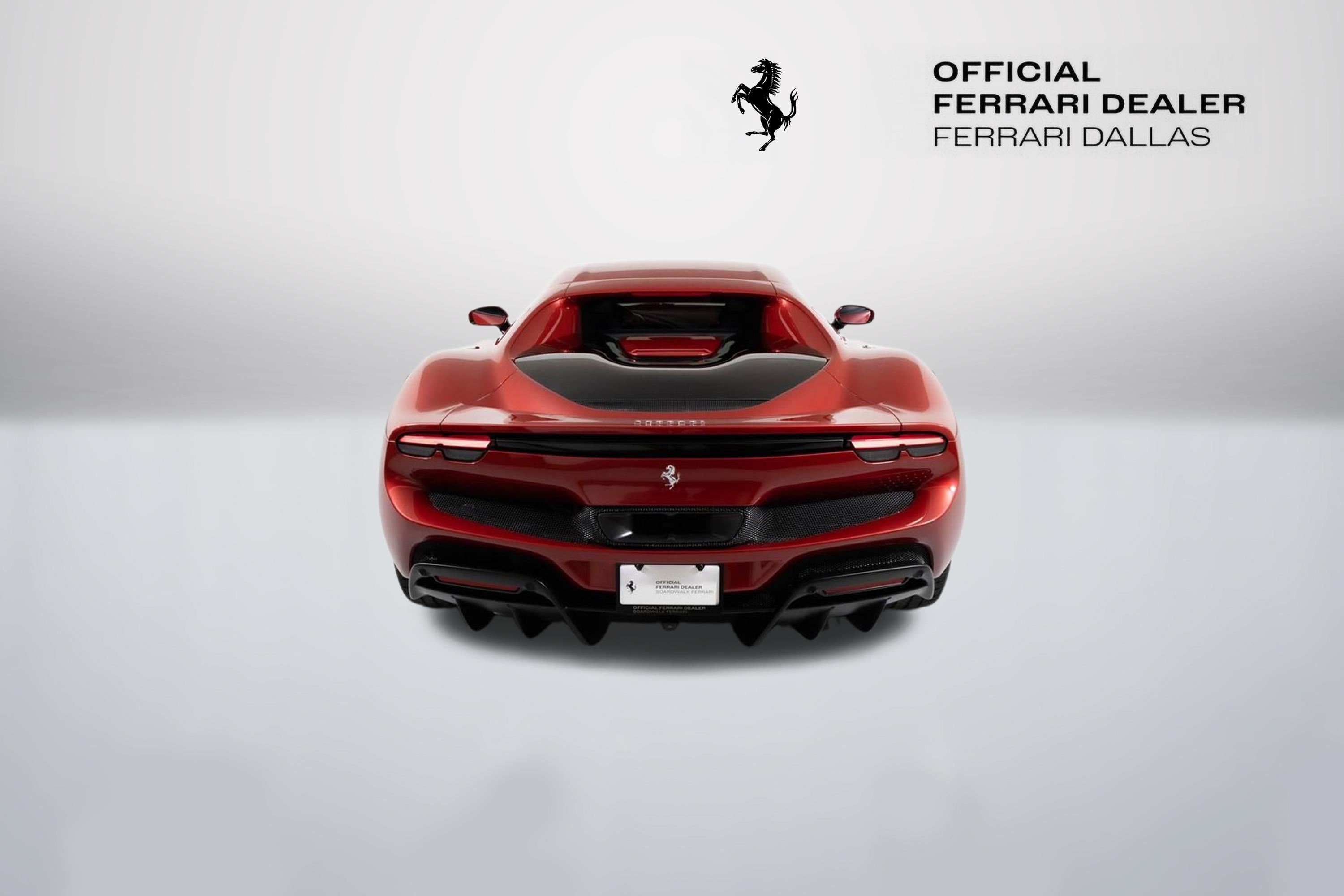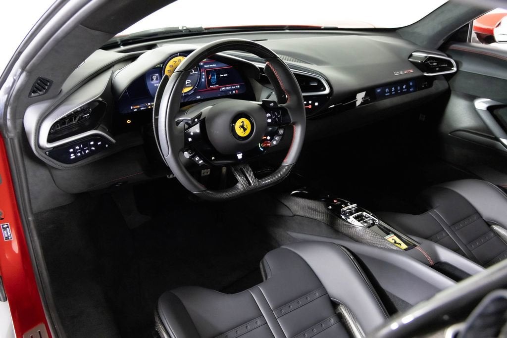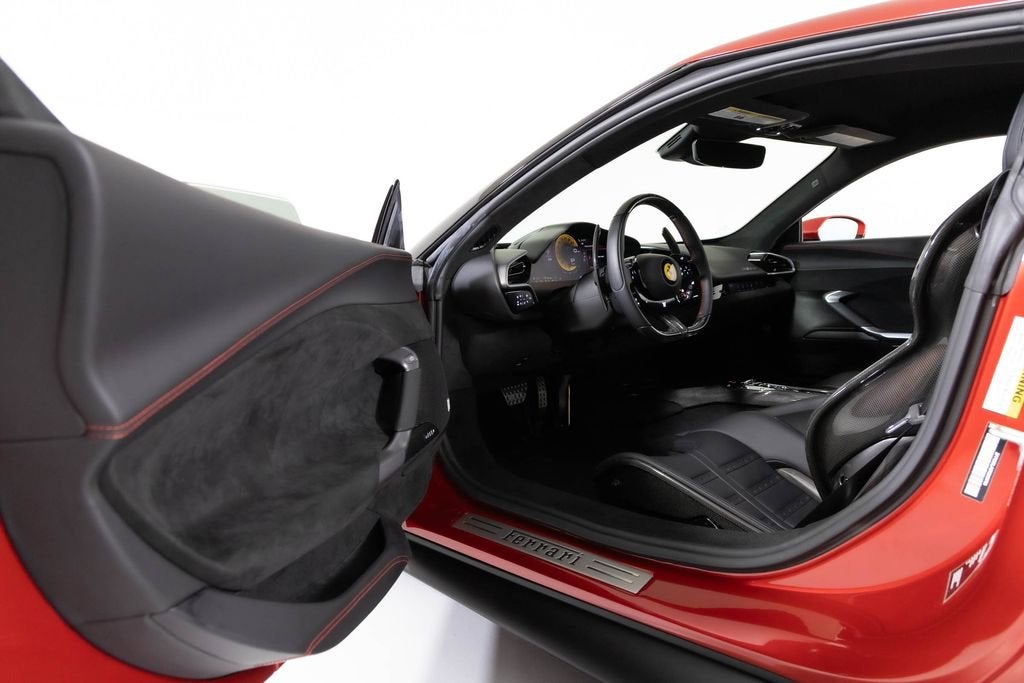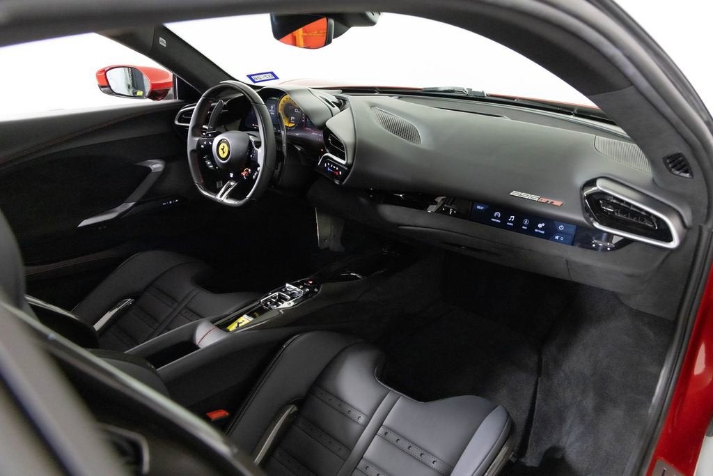This 2024 Ferrari 296 GTB has just over 500 miles on the odometer. It also had a new window sticker price of $405,835. This car has over $67,000 in additional factory options and customization. Highlights include special exterior color $13,700, Daytona racing seats and black ceramic exhaust pipes. The car was locally owned and has a clean CARFAX vehicle history report. It is here on consignment. EXTERIOR IN SPECIAL COLOURS ROSSO IMOLA NERO LEATHER INTERIOR AND CARPETS DAYTONA RACE SEATS RACING SEAT LIFTER COLOURED SPECIAL STITCHING FILO SPECIALE ROSSO HORSE STITCHED ON HEADREST ROSSO (RED) APPLE CARPLAY AFS SYSTEM AMERICA BLACK BRAKE CALIPERS CARBON FIBRE UPPER TUNNEL SUSPENSION LIFTER BLACK CERAMIC EXHAUST PIPES ADVANCED FRONT DRIVING CAMERA CARBON FIBER STEERING WHEEL + LEDS SCUDERIA FERRARI SHIELDS FRONT AND REAR PARKING SENSORS 20 INCH FORGED DIAMOND RIMS PREMIUM HIFI SYSTEM TITANIUM WHEEL BOLTS WIRELESS CHARGER SMARTPHONE 2 KEYS MANUALS CAR COVER DUFFLE BAG BATTERY TENDER As one of the top-selling preowned Ferrari dealers in the nation, Ferrari Dallas takes tremendous pride in offering only the best late-model, low-mileage Ferraris available anywhere in North America. For specific details on the vehicle listed above, please contact any of our qualified sales consultants by calling 888-701-5761. We look forward to assisting you.