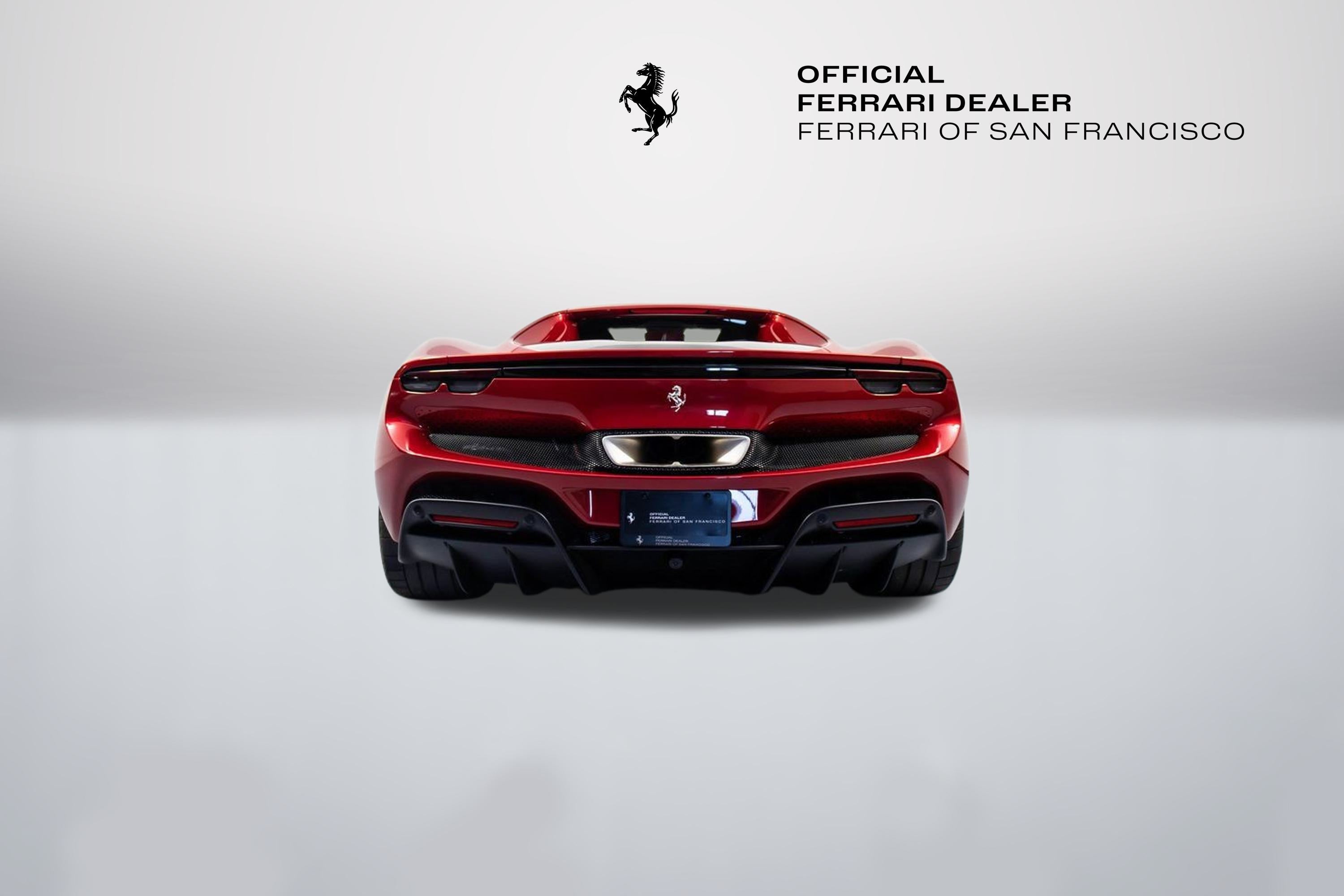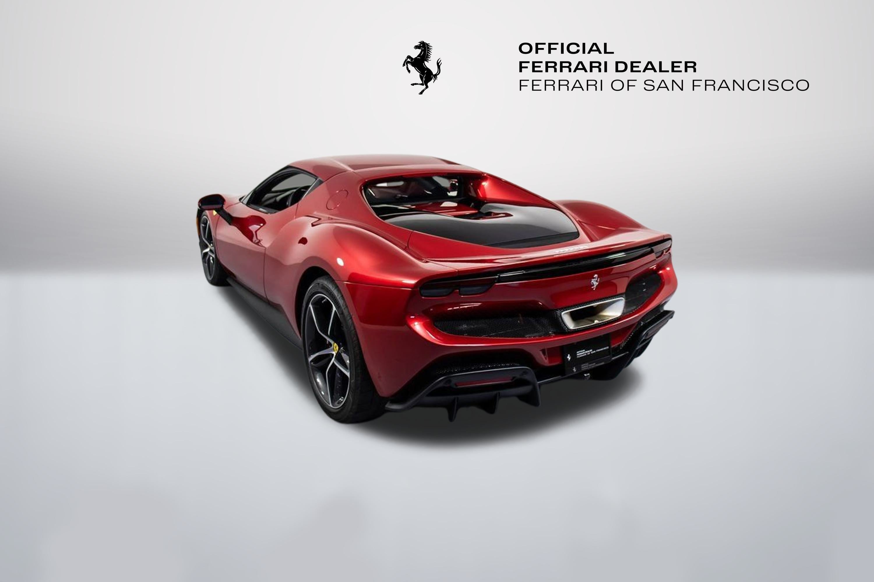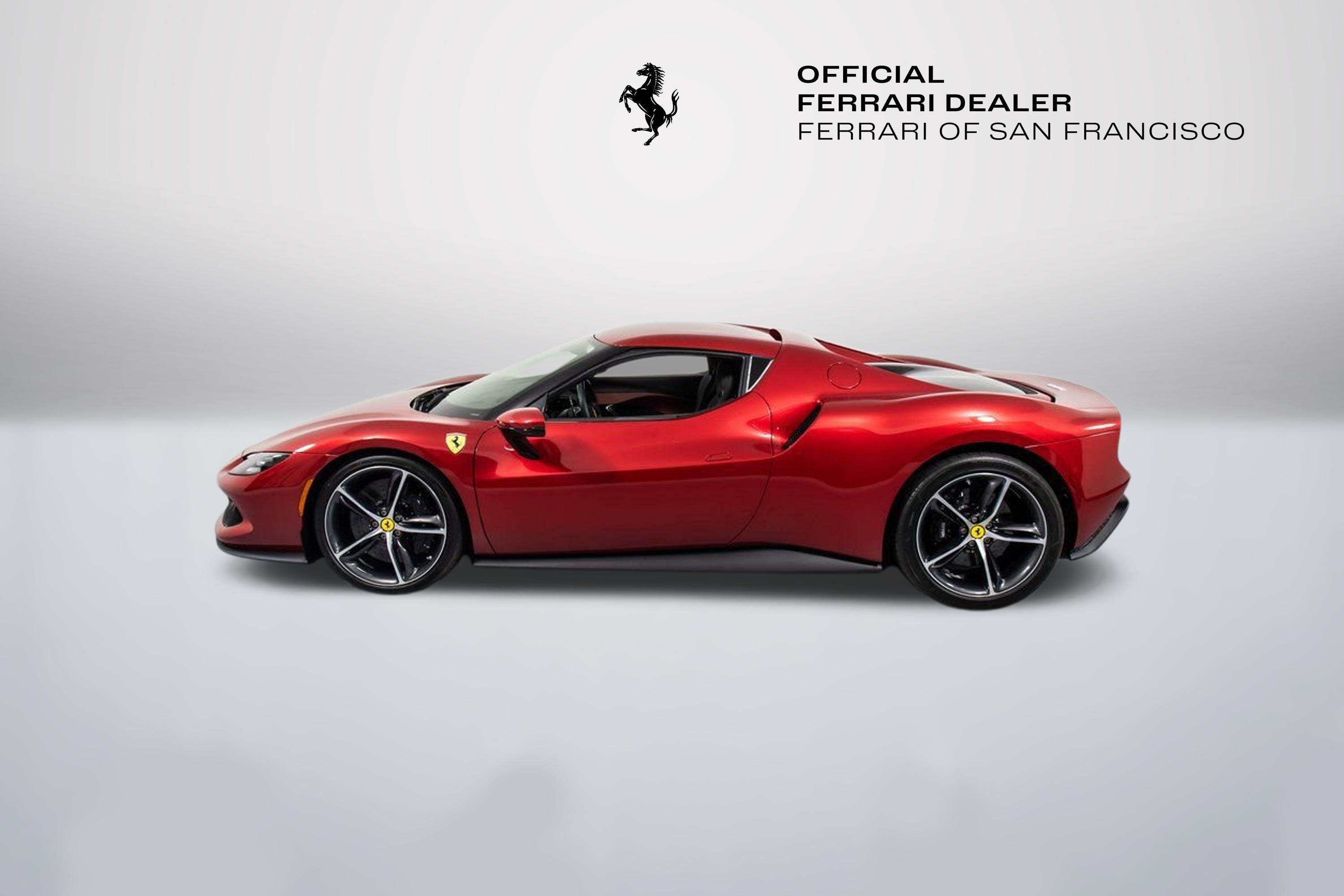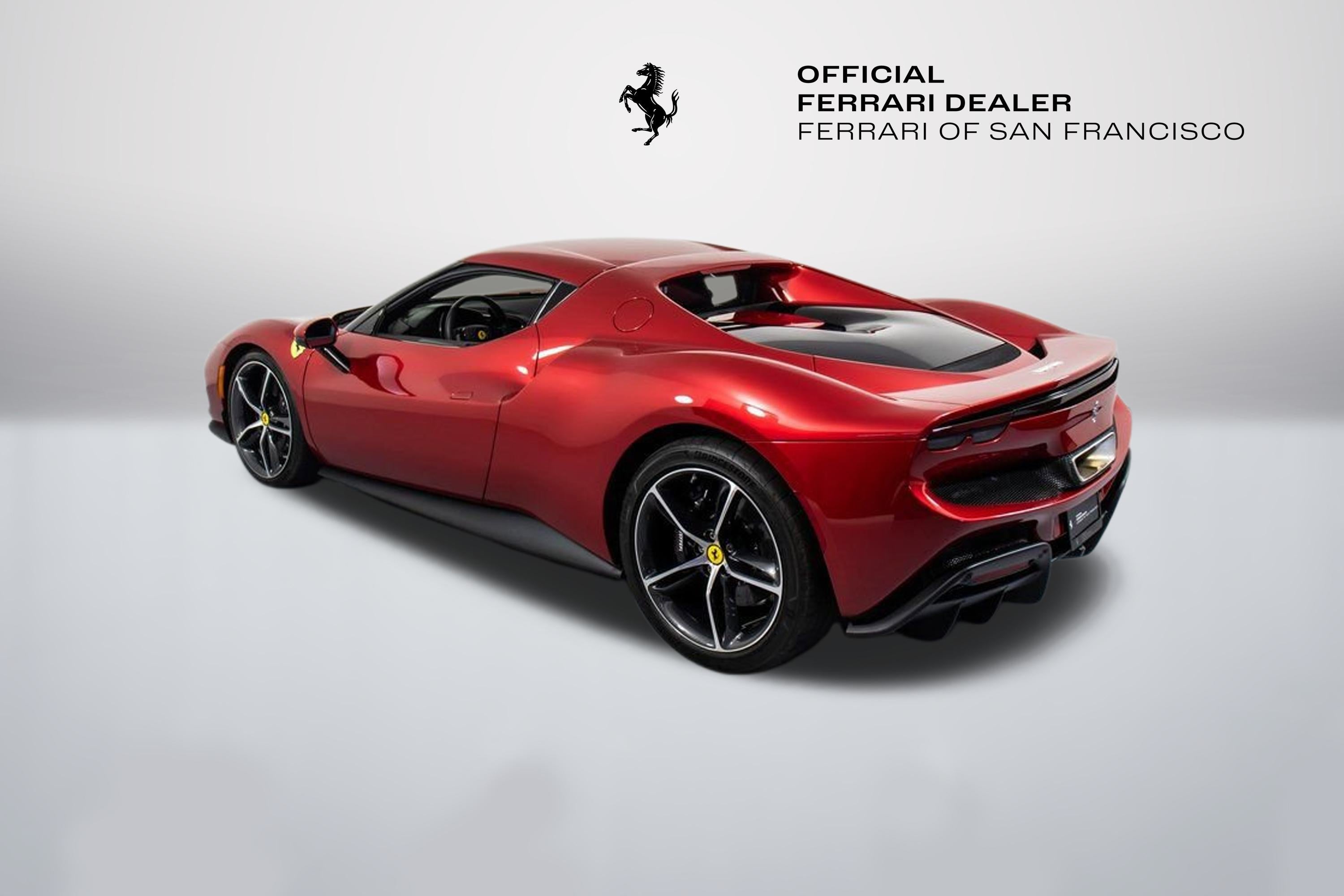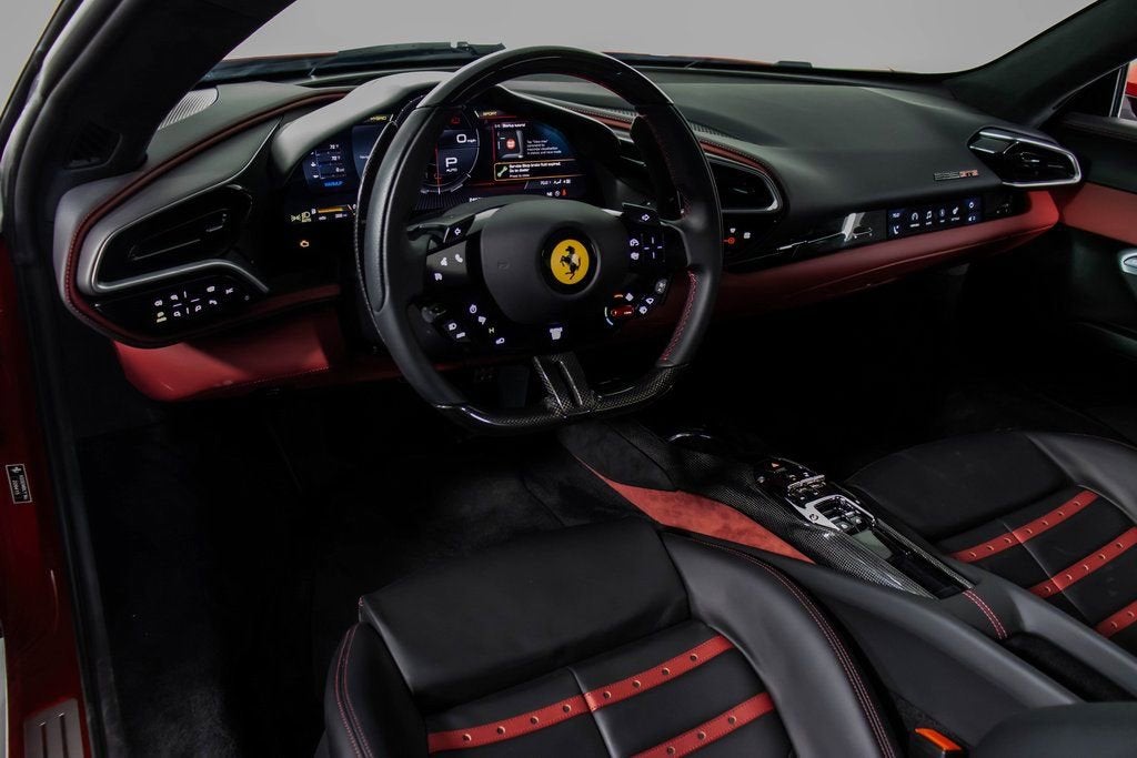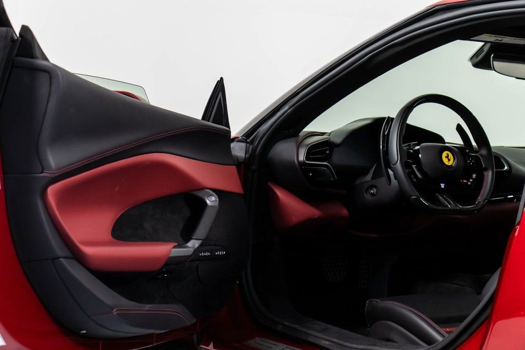 288653 Exterior: Rosso Imola Interior: Nero Mats: Nero 2023 Ferrari 296 GTB Options: Apple CarPlay AFS System Glossy Black Brake Calipers Upper Part of Center Console in Carbon Fiber Dash Inserts in Carbon Fiber Daytona Style Seats Suspension Lifter Cavallino Stitched on Headrest in Bordeaux Advanced Front Driving Camera Home Link MyFerrari Connect Readiness HW Carb. Fib. Steering Wheel + LEDS 'Scuderia Ferrari' Shields Front and Rear Parking Sensors Leather Passenger Compartment Inserts in Bordeaux Special Colors in Rosso Imola Diamond-Polished Forged Wheels Full Electric Seats Colored Special Stitching O.R. in Bordeaux Wheel Stud Bolts in Titanium Wireless Smartphone Charger The 2023 Ferrari 296 GTB is presented in the striking Rosso Imola exterior, a special color that highlights its sculpted lines, paired with a refined Nero interior and Nero mats. The cabin exudes elegance with Daytona-style seats, Bordeaux leather inserts, and a Cavallino stitched on the headrest in Bordeaux, complemented by special Bordeaux contrast stitching. Performance-focused details include carbon fiber dash inserts, upper center console in carbon fiber, and a carbon fiber steering wheel with LEDs, while diamond-polished forged wheels and glossy black brake calipers emphasize its athletic stance. Equipped with advanced technology such as Apple CarPlay, suspension lifter, advanced front driving camera, front and rear parking sensors, HomeLink, MyFerrari Connect readiness, and a wireless smartphone charger, this 296 GTB perfectly blends cutting-edge innovation with Ferraris racing heritage. Enhanced by Scuderia Ferrari shields, titanium wheel bolts, and full electric seats, this car is both a drivers machine and a statement of Italian craftsmanship.