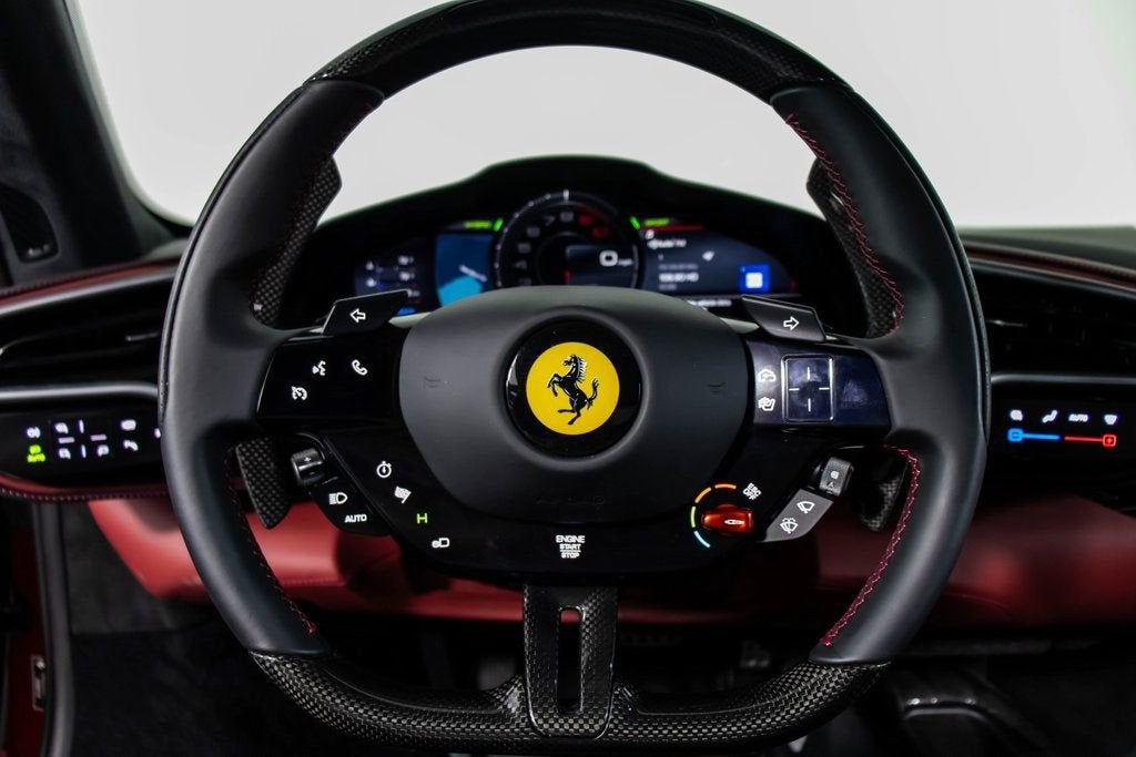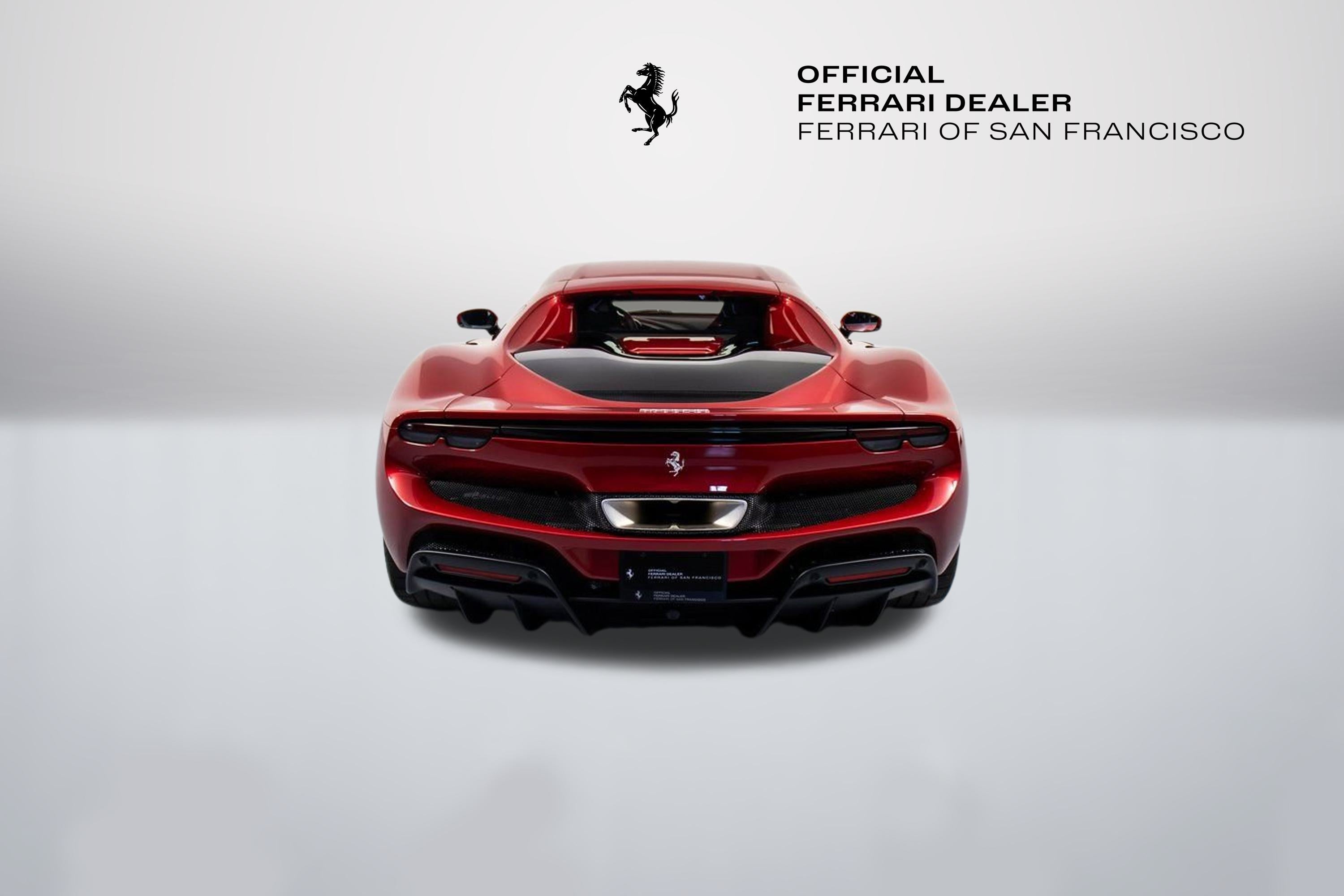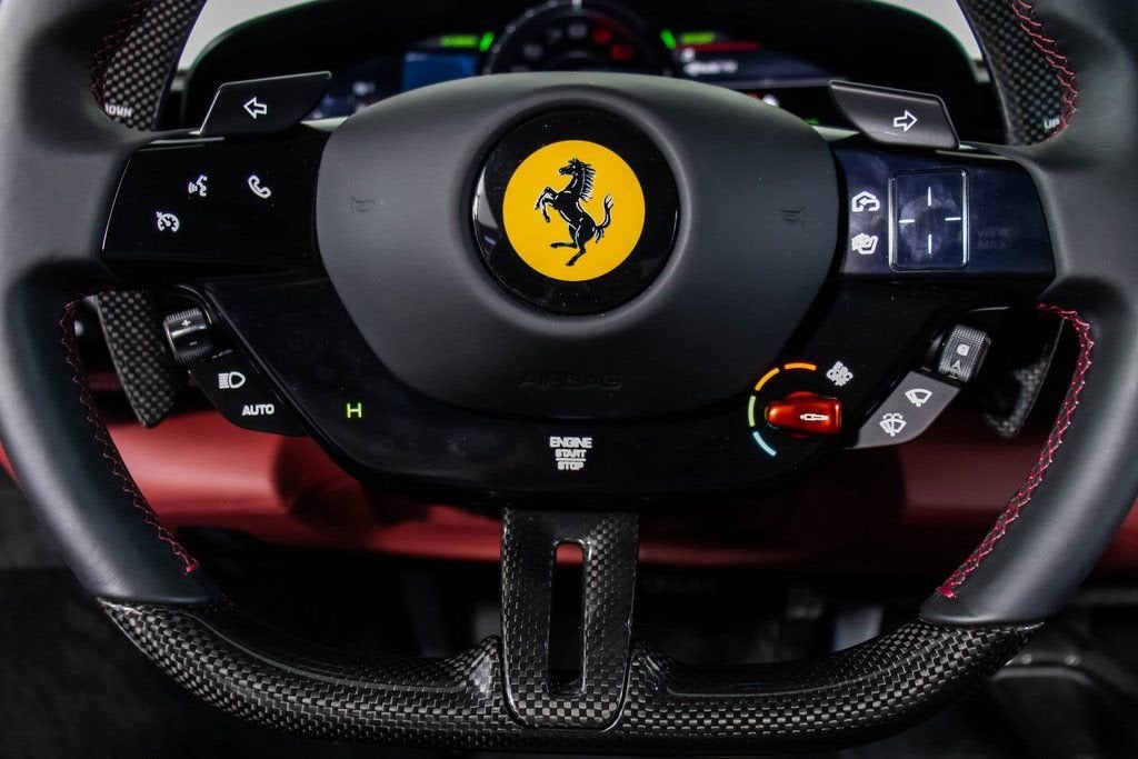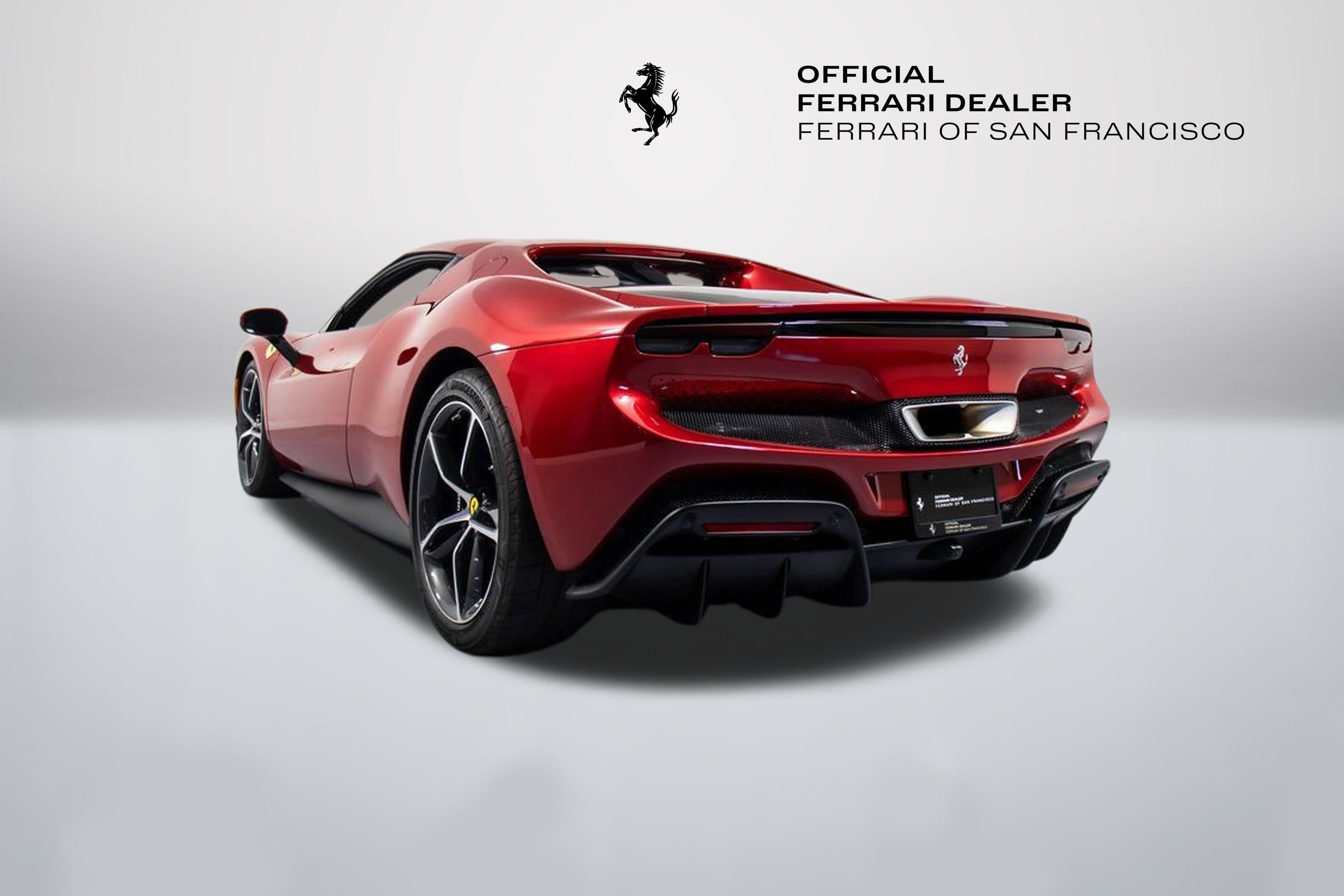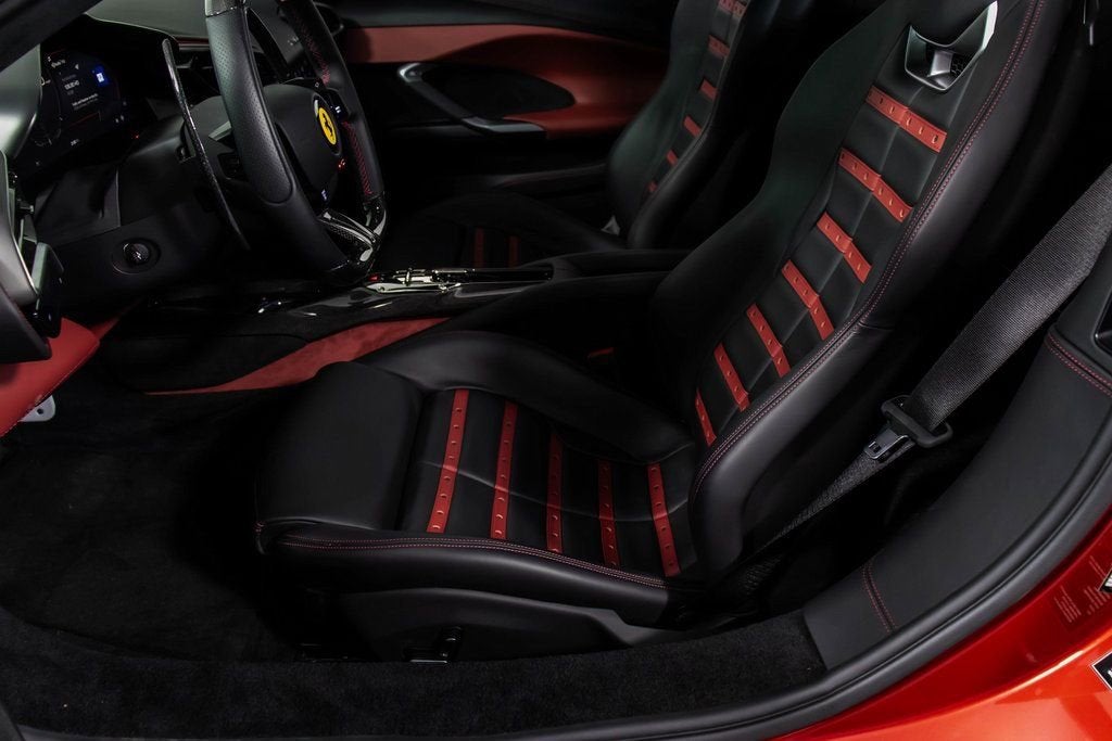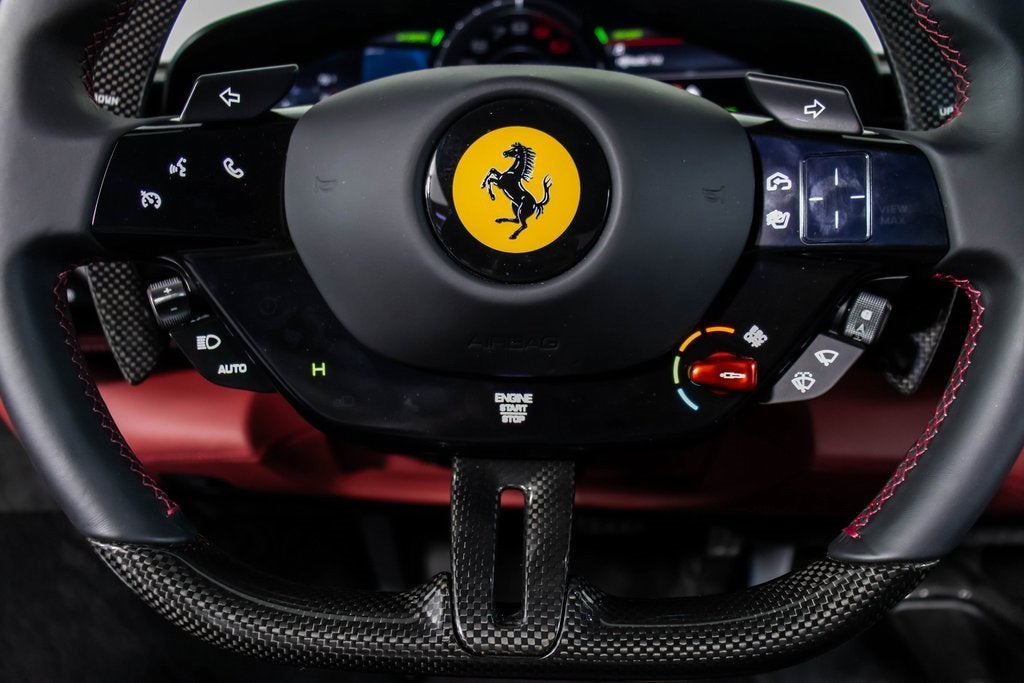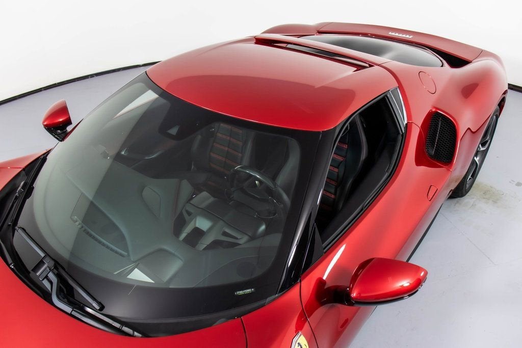 288653 Exterior: Rosso Imola Interior: Nero Mats: Nero 2023 Ferrari 296 GTB Options: Apple CarPlay AFS System Glossy Black Brake Calipers Upper Part of Center Console in Carbon Fiber Dash Inserts in Carbon Fiber Daytona Style Seats Suspension Lifter Cavallino Stitched on Headrest in Bordeaux Advanced Front Driving Camera Home Link MyFerrari Connect Readiness HW Carb. Fib. Steering Wheel + LEDS 'Scuderia Ferrari' Shields Front and Rear Parking Sensors Leather Passenger Compartment Inserts in Bordeaux Special Colors in Rosso Imola Diamond-Polished Forged Wheels Full Electric Seats Colored Special Stitching O.R. in Bordeaux Wheel Stud Bolts in Titanium Wireless Smartphone Charger The 2023 Ferrari 296 GTB is presented in the striking Rosso Imola exterior, a special color that highlights its sculpted lines, paired with a refined Nero interior and Nero mats. The cabin exudes elegance with Daytona-style seats, Bordeaux leather inserts, and a Cavallino stitched on the headrest in Bordeaux, complemented by special Bordeaux contrast stitching. Performance-focused details include carbon fiber dash inserts, upper center console in carbon fiber, and a carbon fiber steering wheel with LEDs, while diamond-polished forged wheels and glossy black brake calipers emphasize its athletic stance. Equipped with advanced technology such as Apple CarPlay, suspension lifter, advanced front driving camera, front and rear parking sensors, HomeLink, MyFerrari Connect readiness, and a wireless smartphone charger, this 296 GTB perfectly blends cutting-edge innovation with Ferraris racing heritage. Enhanced by Scuderia Ferrari shields, titanium wheel bolts, and full electric seats, this car is both a drivers machine and a statement of Italian craftsmanship.