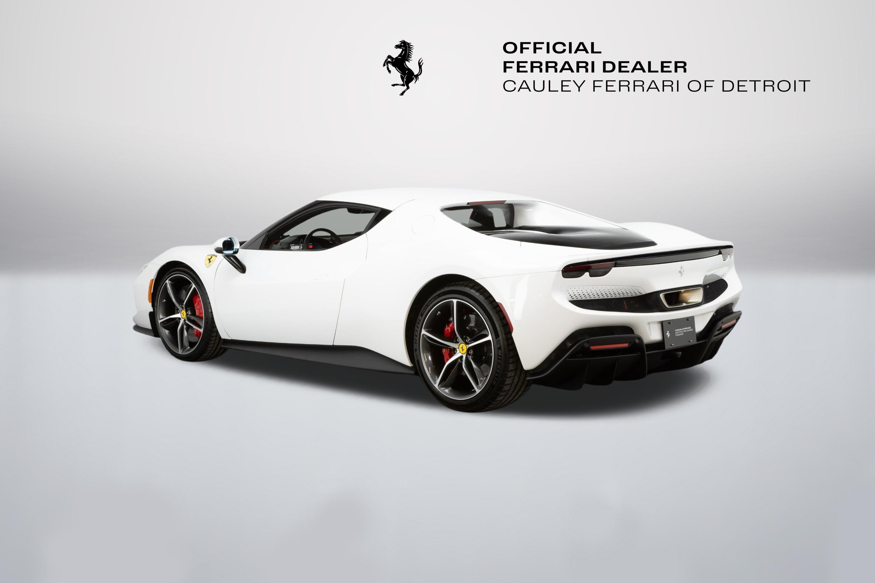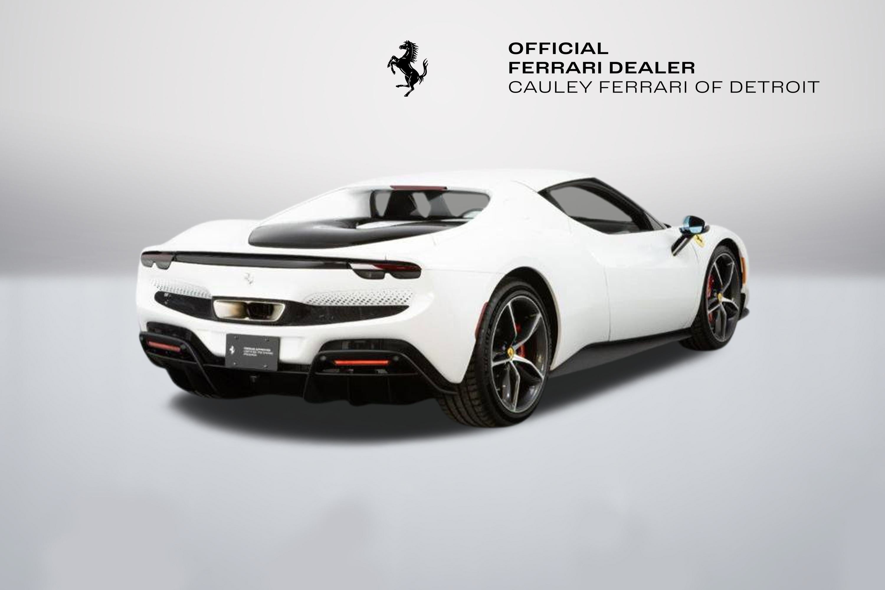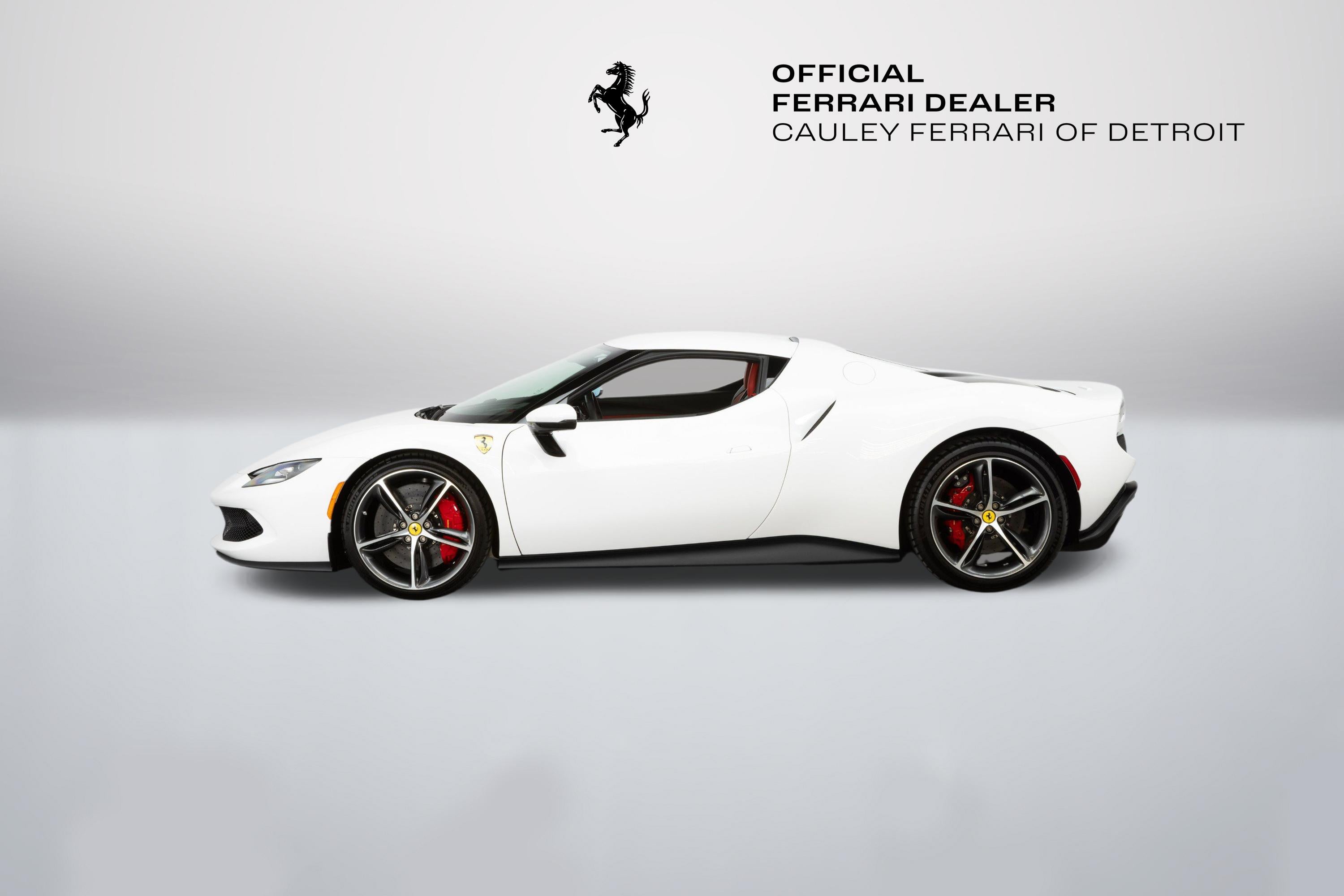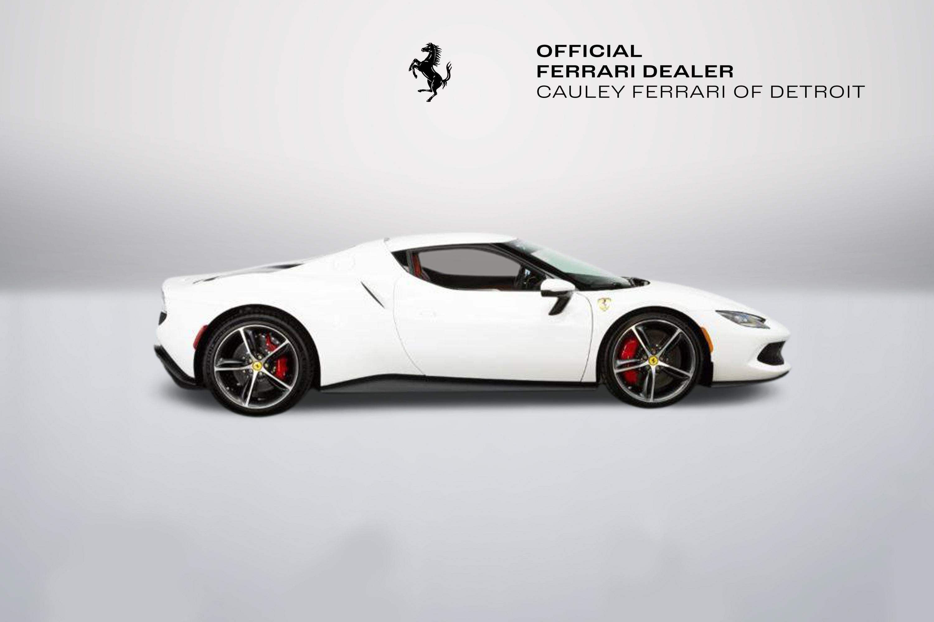 Cauley Ferrari of Detroit is excited to offer you this loaded and highly desirable 2024 296 GTB finished in Bianco Cervino over a Rosso interior. It comes very well equipped with all of the right options, such as Front Suspension Lifter, Scuderia Ferrari Shields, Carbon Fiber Racing Seats, the Carbon Fiber Steering with LEDs, Premium JBL Sound, and much more. The full options list can be seen below. We are selling this as a Certified Pre-Owned Vehicle, and the Factory Warranty remains in effect until 7/26/27, and we will be adding an additional year of factory bumper-to-bumper warranty through 7/26/28. The free scheduled maintenance plan is in effect until 7/26/31. Give us a call at 248-538-9600 to set up an appointment for a closer look or stop by our showroom in West Bloomfield, MI. Please ask us about our financing and leasing options available through Ferrari Financial Services (FFS). We can offer you monthly financing as far out as 84 months, Balloon financing up to 60 months, as well as Open-End Leasing scenarios. FFS is available on all new and pre-owned Ferrari models. These flexible payment options really make getting into a Ferrari easier than ever before. Let us show you how. Give us a call at 248-538-9600 to set up an appointment for a closer look or stop by our showroom in West Bloomfield, MI. Factory Options: - Apple CarPlay - AFS System, USA - Central Part of Seats in Technical Alcantara - Red Brake Calipers - Exterior Sill Kickplate in Carbon - Coloured Passenger Compartment Details Rosso Ferrari 130421 - Mats in Black Leather / Black Alcantara - Front Suspension Lift - Cavallino Stitched on Headrest Nero 4000 - Handy Fire Extinguisher - Advanced Front Driving Camera - Additional Coloured Mats with Logo - MyFerrari Connect Readiness Hardware - Carbon Fiber Steering Wheel + LEDs - Scuderia Ferrari Shields - Additional Colours Bianco Cervino - Carbon Fibre Racing Seats Large Size Seats - Racing Seat Lifter - Diamond-Polished Forged Wheels - Premium Hi-Fi System - Coloured Special Stitching Rosso 0504 - Wheel Stud Bolts in Titanium - Michelin Tires - Wireless Smartphone Charger Dealer Added Options: - Front Clip of the car covered in PPF The 296 GTB, an evolution of Ferrari's mid-rear-engined two-seater sports Berlinetta concept, represents a revolution for the Maranello-based company as it introduces the new 120 V6 engine coupled with a plug-in (PHEV) electric motor capable of delivering up to 830 HP The car thus redefines the idea of driving fun to provide pure excitement not only when pursuing maximum performance but also during everyday driving. The engine structure means that the turbochargers can fit within the V. This increases its compactness, lowers its center of gravity, reduces its mass, and helps it achieve extraordinarily high-power levels (663 HP). The new Ferrari V6 sets a record of 221 hp/l for specific torque output for a production car. The design of the 296 GTB redefines the identity of Ferrari's mid-rear-engined Berlinetta, giving the car a compact, modern, and original line. Its short wheelbase and monolithic appearance make it the most compact Berlinetta from Maranello of the last decade. Having abandoned the typical fastback Berlinetta layout, the Ferrari Style Centre focused on creating a cabin set within a powerful volume. This was the result of the short wheelbase and aspects such as muscular mudguards, a visor roof, flying buttresses, and a brand-new vertical rear screen. The rear is dominated by a ring-shaped flying buttress that houses the engine compartment cover, developed on an unusual three-dimensional glass surface. The central part of the car stands out with a body-colored element that represents a style theme dear to the Maranello marque. Another characteristic of the 296 GTB is the truncated tail that enhances its compactness. The tail incorporates a horizontal element that encloses lights and an integrated spoiler.