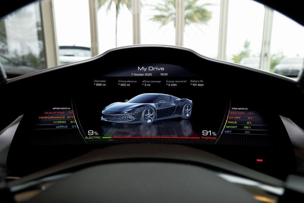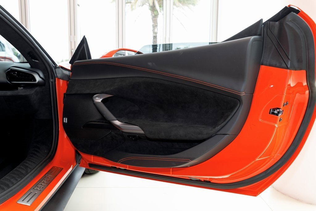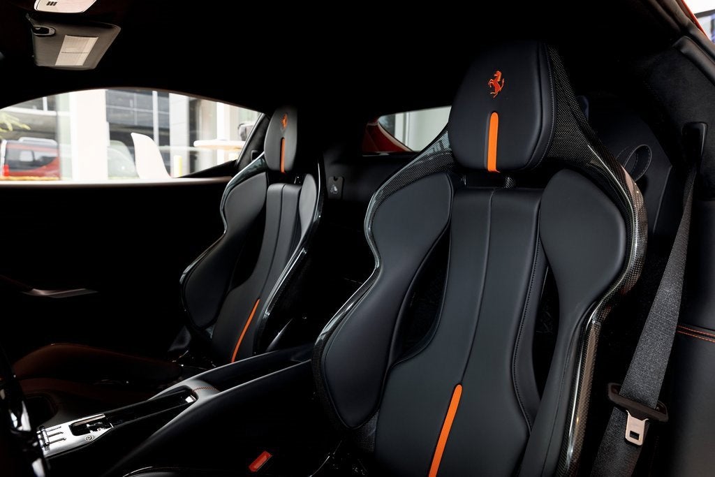 Factory options: External Colors - Rosso Dino Internal Colors - Nero Carpet Colors - Nero -Apple CarPlay -Blind Spot Detection and rear radar -Camera with LDW (Lane Departure Warning) -HW READINESS MYFERRARI CONNECT -Electrochromic exterior rear view mirrors -Front and rear parking sensors -Premium Hi-Fi system -Surround View -Wireless smartphone charger -Leather passenger compartment details -Extracampionario cabin detail colors -Embroidered Cavallino emblem on headrest -"Corsa" racing seats in carbon fibre -Manual ratchet seat height adjustment mechanism -Stitching with special thread -Special stitching in colour of customers choice -Rosso Scuderia brake callipers -Horse Embroidered On Rear Wall -Sports tailpipe tips -Rear Prancing Horse Matt Black -Satin Prancing Horse -Carbon fibre steering wheel with LEDs -"Scuderia Ferrari" shields on fenders -Glossy painted wheels For more information or to schedule a test drive, contact us today!