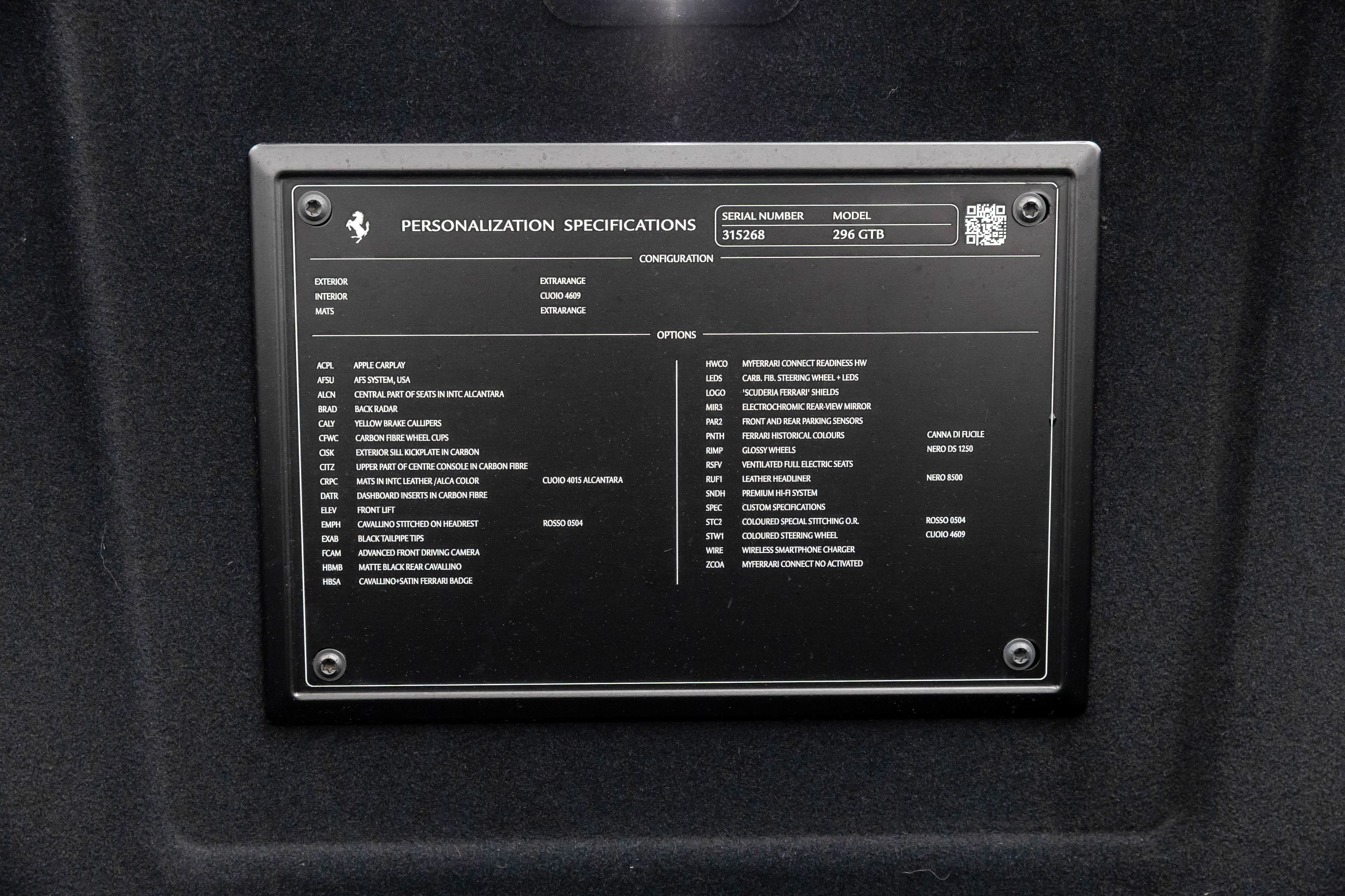 Ferrari of Washington is pleased to offer you this Ferrari 296 GTB . Our team strives to make each experience here at Ferrari of Washington the best possible, so here are a few key components of this vehicle. This 296 GTB is covered in Canna-Di-Fucile exterior paint with interior. Ferrari equipped this 296 GTB with many options including: 4-Wheel Disc Brakes, 6 Speakers, ABS brakes, Adaptive suspension, Air Conditioning, Alloy wheels, AM/FM radio, Apple CarPlay, Automatic temperature control, Brake assist, Bumpers: body-color, Ceramic disc brakes: front and rear, Compass, Delay-off headlights, Driver door bin, Dual front impact airbags, Dual front side impact airbags, Electronic Stability Control, Exterior Parking Camera Rear, Four wheel independent suspension, Front anti-roll bar, Front Bucket Seats, Front Center Armrest, Front reading lights, Fully automatic headlights, Heated door mirrors, Illuminated entry, Leather Seat Trim, Leather steering wheel, Low tire pressure warning, Navigation System, Outside temperature display, Passenger cancellable airbag, Passenger door bin, Power door mirrors, Power driver seat, Power passenger seat, Power steering, Power windows, Radio data system, Radio: Audio & Nav Systems in Digital Gauge Cluster, Rain sensing wipers, Rear anti-roll bar, Rear fog lights, Rear Parking Sensors, Rear window defroster, Remote keyless entry, Security system, Speed control, Speed-sensing steering, Spoiler, Sport steering wheel, Standard Seats, Steering wheel mounted audio controls, Tachometer, Telescoping steering wheel, Tilt steering wheel, Traction control, Trip computer, Variably intermittent wipers, Voltmeter, and Wheels: 20" Standard. CARFAX One-Owner. Recent Arrival! We are conveniently located only 6 miles from Dulles International Airport in beautiful Sterling, VA.