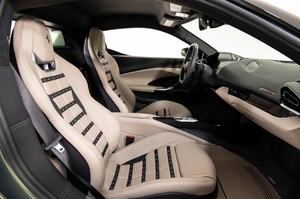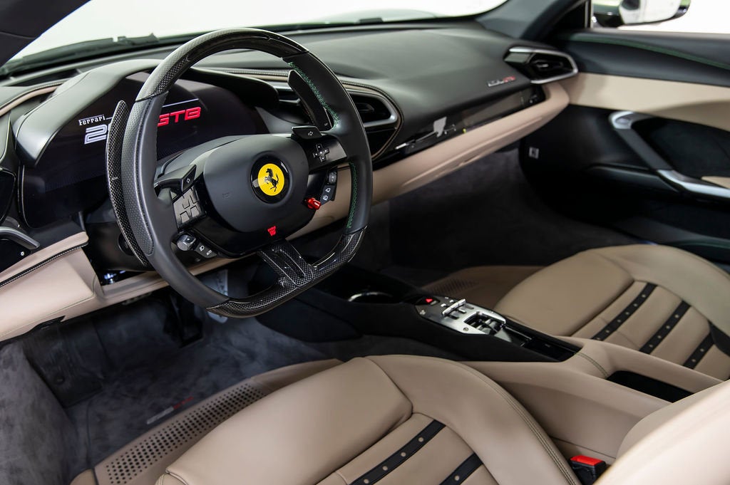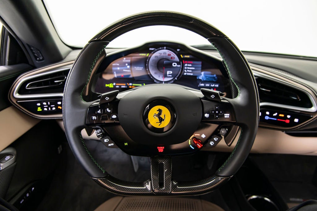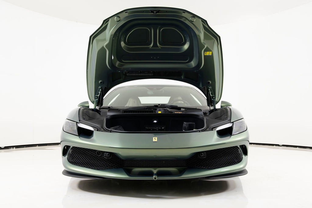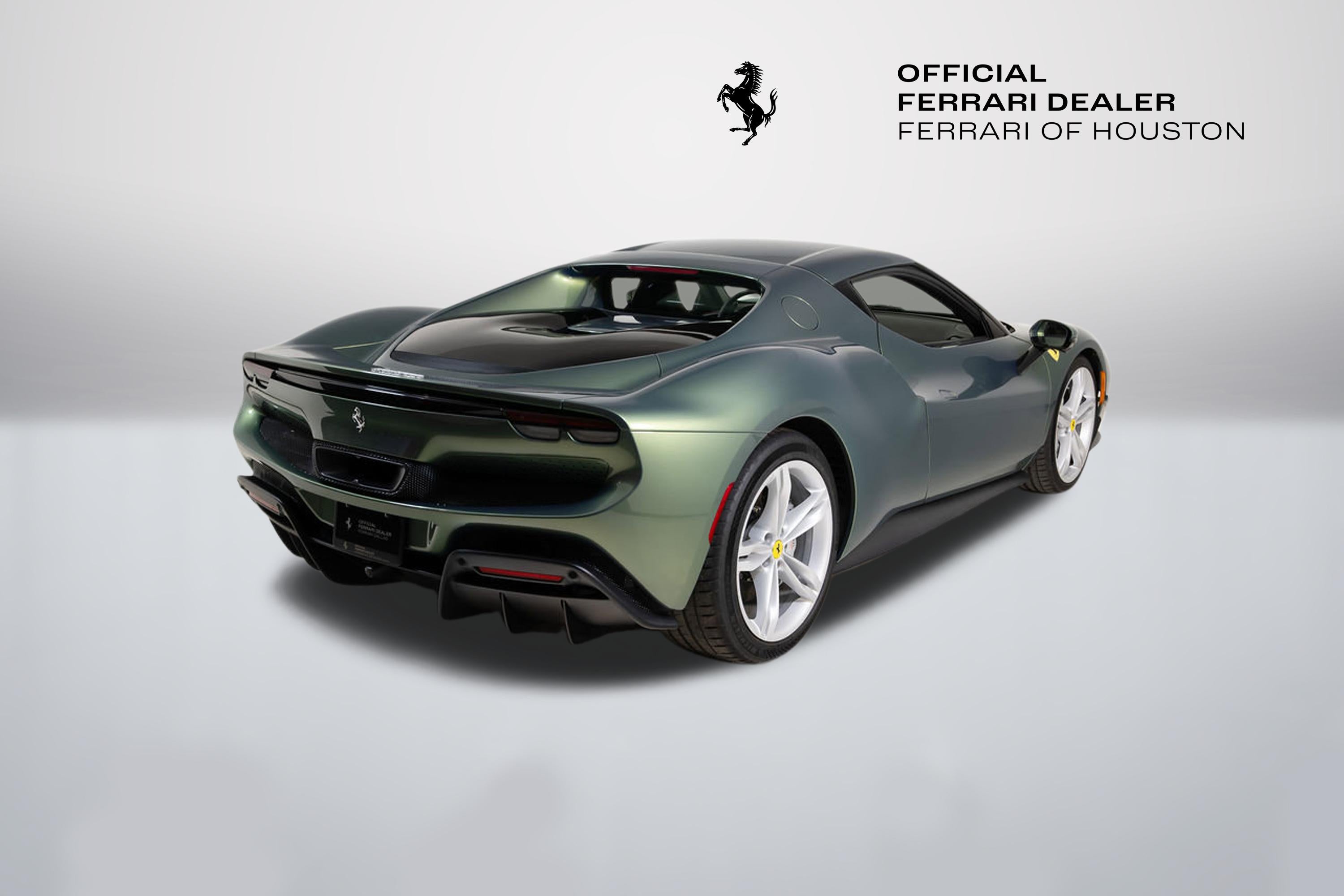 Ferrari of Houston is pleased to offer this stunning 2025 Ferrari 296 GTB. This is the exciting new V6 hybrid model that produces a staggering 819 bhp and defines "fun to drive." The 296 GTB offers breathtaking Ferrari styling that invokes classic Ferrari's of the past in a modern, compact package. Here is an opportunity to be the owner of a stunning 296 GTB with low mileage and a fantastic list of desirable factory options (see below) with an original MSRP of $447,852. This 296 GTB was sold new by Ferrari of Houston, has covered only 2,060 miles. Finished is elegant Verde Minarale paint over Dove leather, this 296 GTB has been through a comprehensive 101 Point Ferrari Approved inspection and comes with Ferrari warranty coverage until 7/23/2028, and no-cost annual maintenance until 7/23/2032. It is complete with all keys, books/manuals, car cover and battery charger. This Ferrari qualifies for special programs offered by Ferrari Financial Services, including extended financing terms and a popular 60 month balloon program. Please let us know if we can structure a custom quote to best fit your financial objectives. ACPLAPPLE CARPLAY AFSUAFS SYSTEM AMERICA BRADBACK RADAR CALAALUMINUM BRAKE CALIPERS CRPCCARPETS LEATH.INTC /ALCA COLORALCANTARA CHARCOAL 7452 CRPTCarpet colorsEXTRA SAMPLE - NOT STANDARD DATRCARBON FIBER DASHBOARD INSERTS DAYTDAYTONA STYLE SEATS ELEVSUSPENSION LIFTER EMPHHORSE STITCHED ON HEADRESTGREEN 1097 EXABBLACK CERAMIC EXHAUST PIPES EXTCExternal colorsEXTRA SAMPLE - NOT STANDARD FCAMAdvanced Front Driving Camera FLMACOLORED MATS WITH LOGO HWCOHW READINESS MYFERRARI CONNECT INTCInternal colorsDOVE 130426 LEDSCARB.FIB.