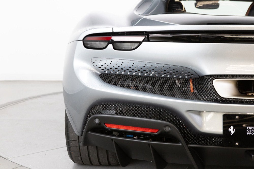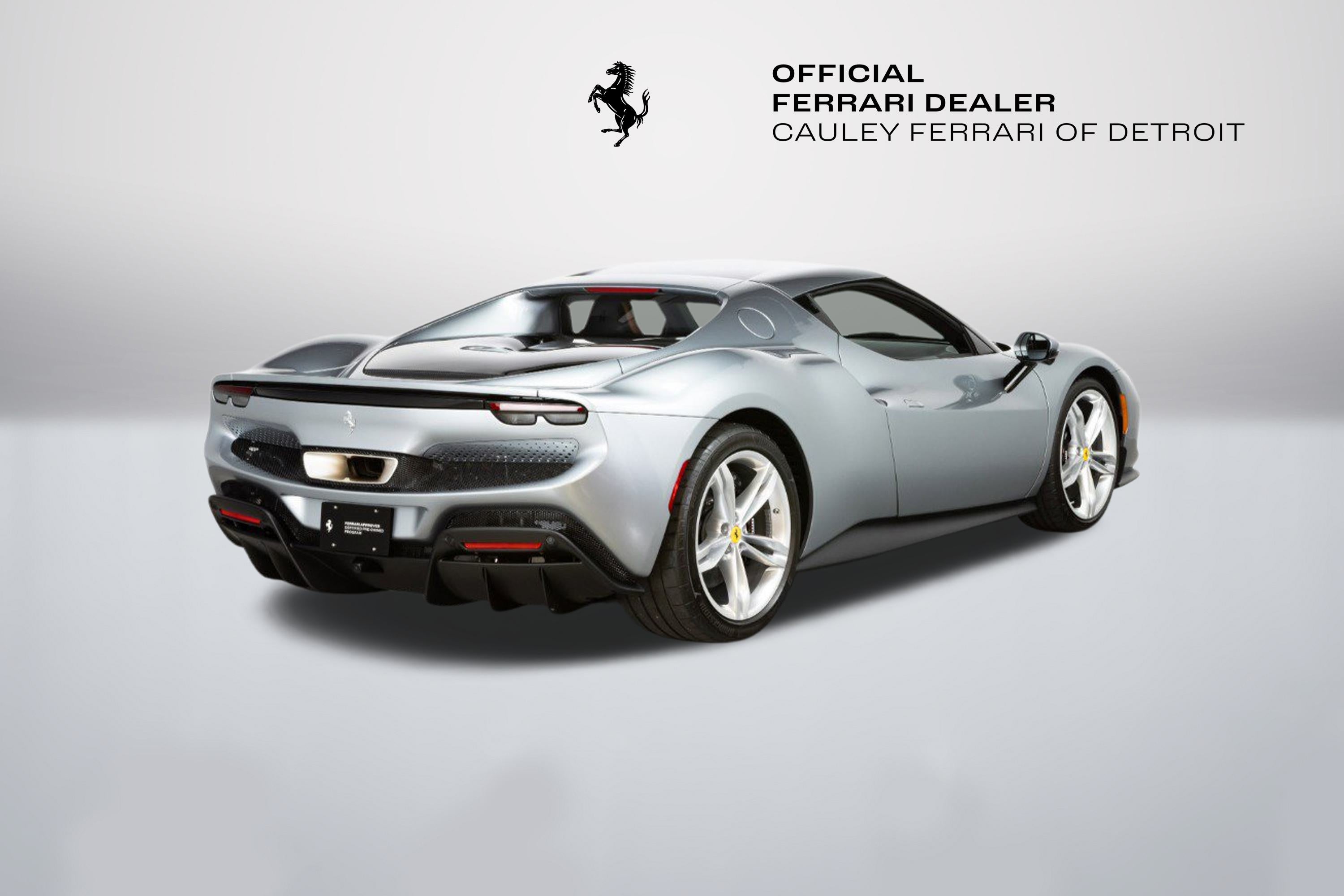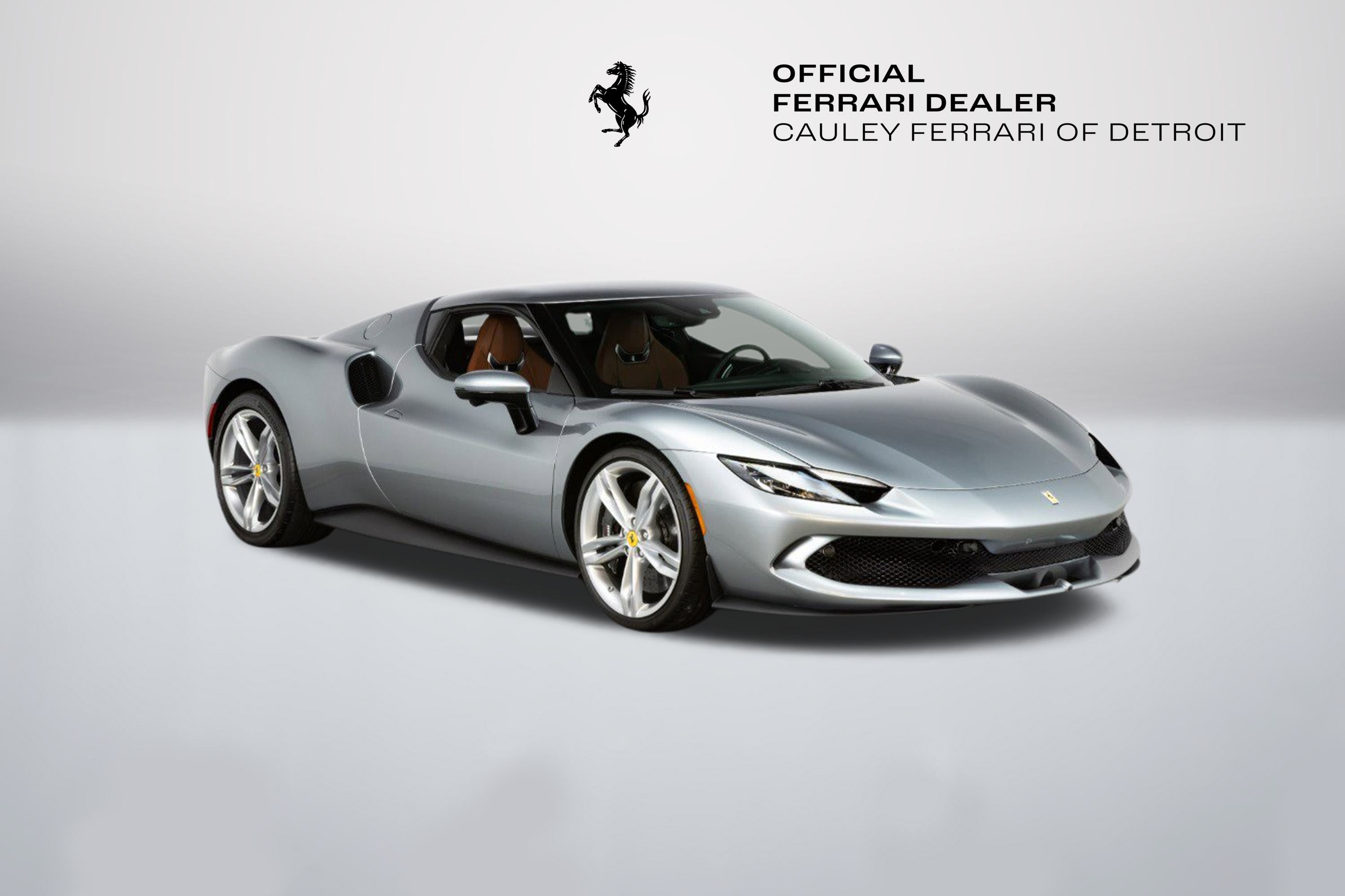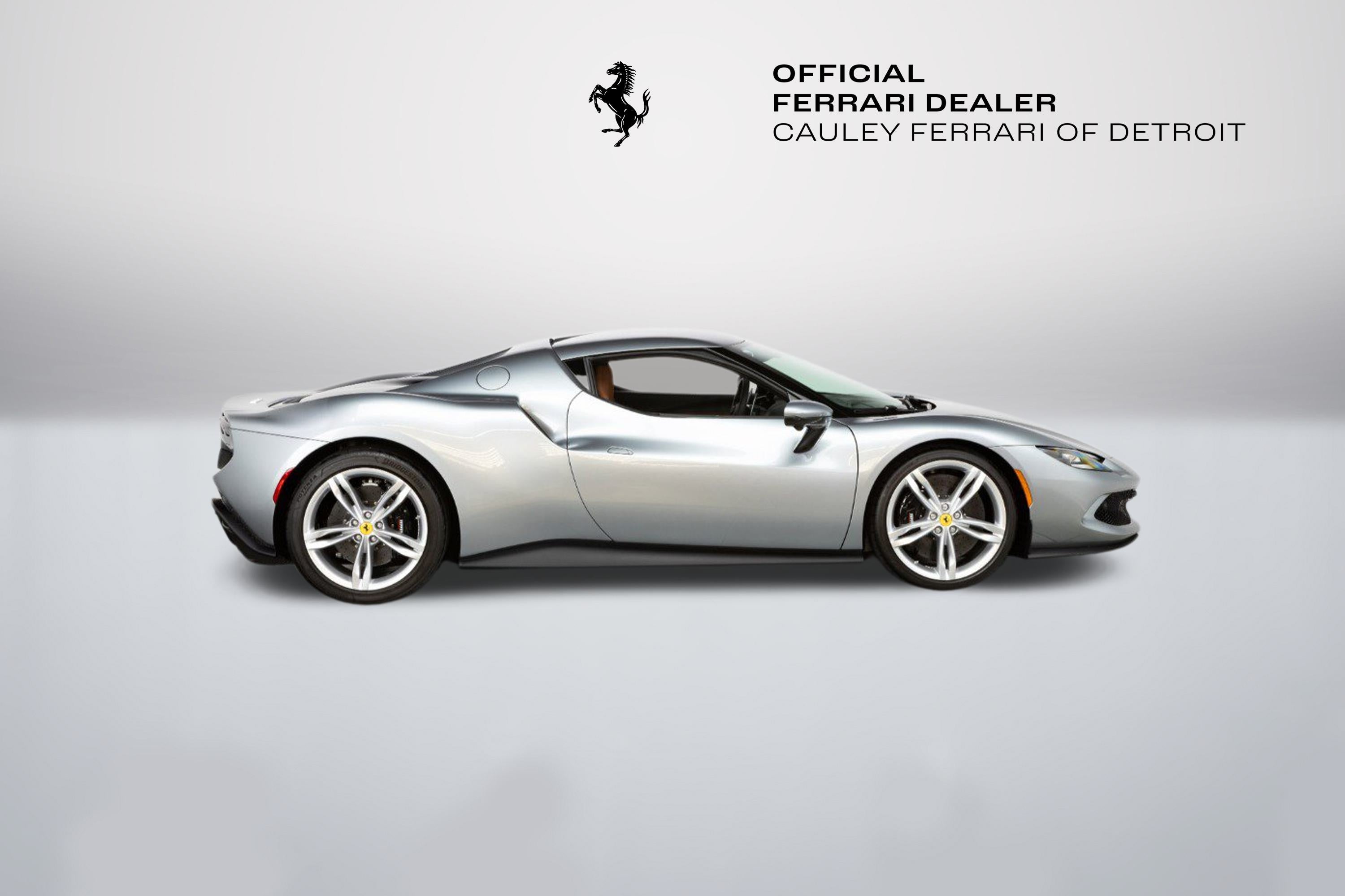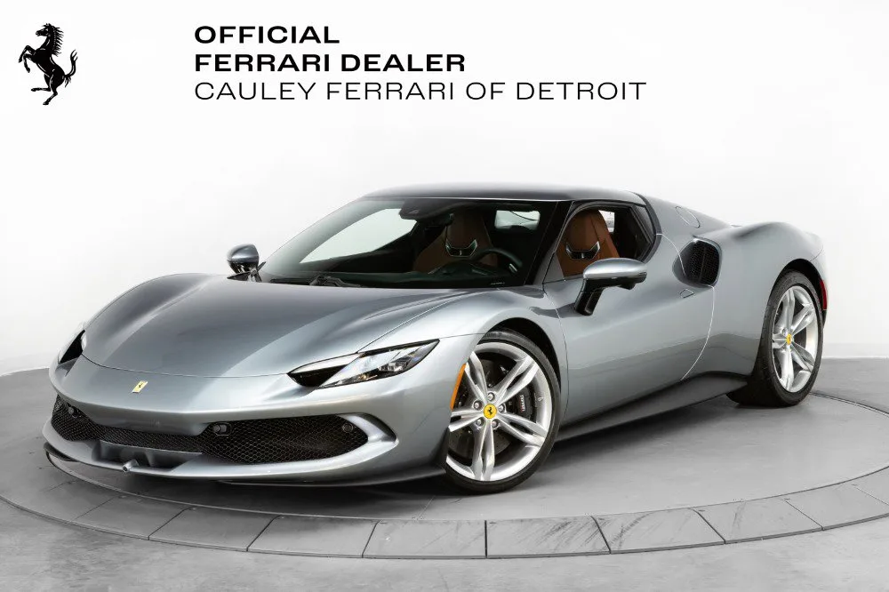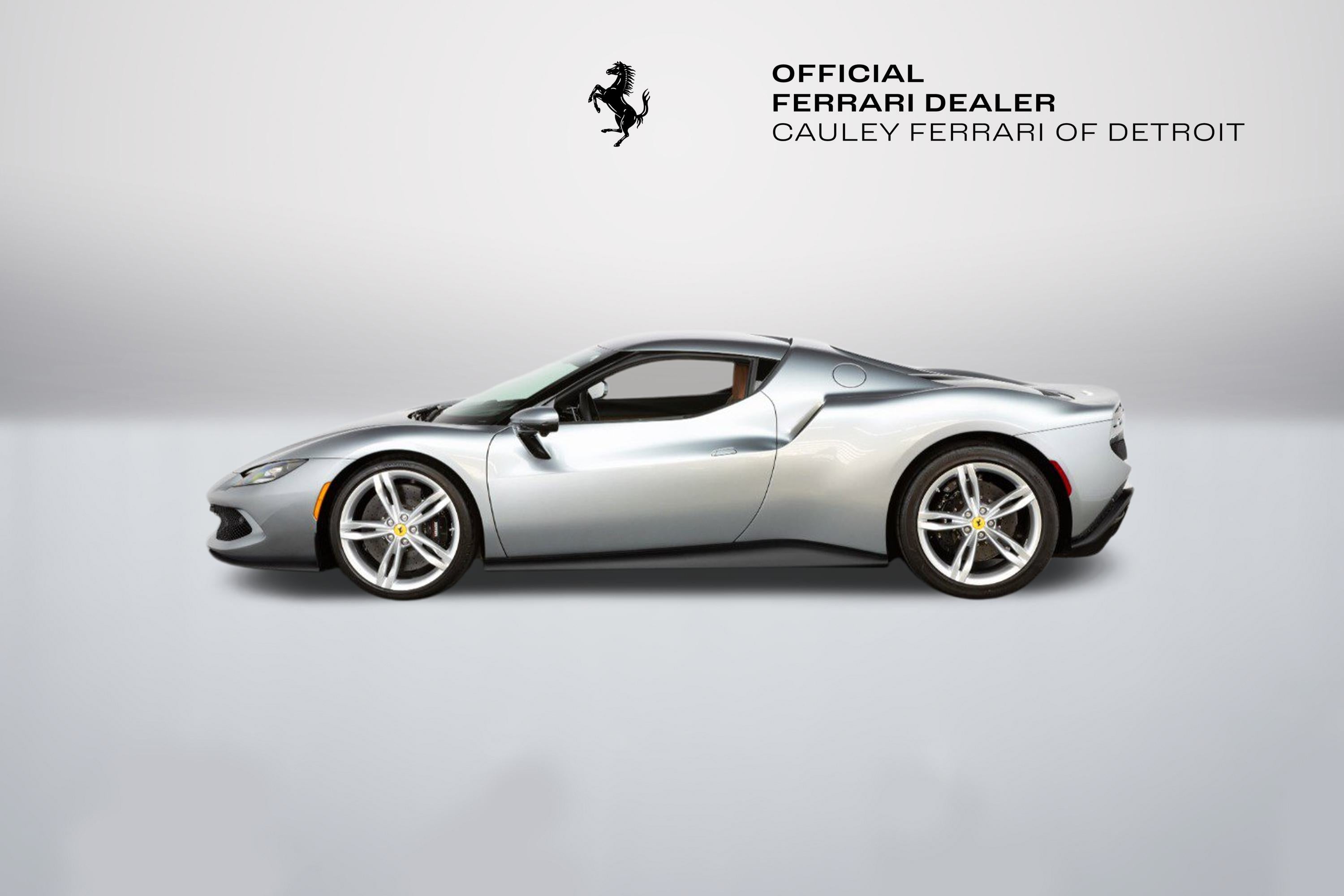 Cauley Ferrari of Detroit is excited to offer you this 2023 296 GTB finished in Grigio Titanio Metallic over a Terra Bruciata interior. It is a very classy spec and comes with Ventilated Full Electric Seats, Apple CarPlay, Surround Camera View, and more. The full options list can be seen below. The remaining factory warranty runs through 7/25/2026 and will be followed by 18 months of extended factory warranty through 1//25/28. The free scheduled maintenance plan is in effect until 7/25/2030. Give us a call at 248-538-9600 to set up an appointment for a closer look or stop by our showroom in West Bloomfield, MI. Please ask us about our financing and leasing options available through Ferrari Financial Services (FFS). We can offer you monthly financing as far out as 84 months, Balloon financing up to 60 months, as well as Open-End Leasing scenarios. FFS is available on all new and pre-owned Ferrari models. These flexible payment options really make getting into a Ferrari easier than ever before. Let us show you how. Give us a call at 248-538-9600 to set up an appointment for a closer look or stop by our showroom in West Bloomfield, MI. Factory Options: - Apple CarPlay - AFS System, USA - Glossy Black Brake Callipers - Advanced Front Driving Camera - Homelink - MyFerrari Connect Readiness - Electrochromic Rear-View Mirror - Front and Rear Parking Sensors - Classic Colours Grigio Titanio Metallic - Ventilated Full Electric Seats - Colored Standard Stitching in Nero - Surround View - Wireless Smartphone Charger The 296 GTB, an evolution of Ferrari's mid-rear-engined two-seater sports Berlinetta concept, represents a revolution for the Maranello-based company as it introduces the new 120 V6 engine coupled with a plug-in (PHEV) electric motor capable of delivering up to 830 HP The car thus redefines the idea of driving fun to provide pure excitement not only when pursuing maximum performance but also during everyday driving. The engine structure means that the turbochargers can fit within the V. This increases its compactness, lowers its center of gravity, reduces its mass, and helps it achieve extraordinarily high-power levels (663 HP). The new Ferrari V6 sets a record of 221 hp/l for specific torque output for a production car. The design of the 296 GTB redefines the identity of Ferrari's mid-rear-engined Berlinetta, giving the car a compact, modern, and original line. Its short wheelbase and monolithic appearance make it the most compact Berlinetta from Maranello of the last decade. Having abandoned the typical fastback Berlinetta layout, the Ferrari Style Centre focused on creating a cabin set within a powerful volume. This was the result of the short wheelbase and aspects such as muscular mudguards, a visor roof, flying buttresses, and a brand-new vertical rear screen. The rear is dominated by a ring-shaped flying buttress that houses the engine compartment cover, developed on an unusual three-dimensional glass surface. The central part of the car stands out with a body-colored element that represents a style theme dear to the Maranello marque. Another characteristic of the 296 GTB is the truncated tail that enhances its compactness. The tail incorporates a horizontal element that encloses lights and an integrated spoiler.
