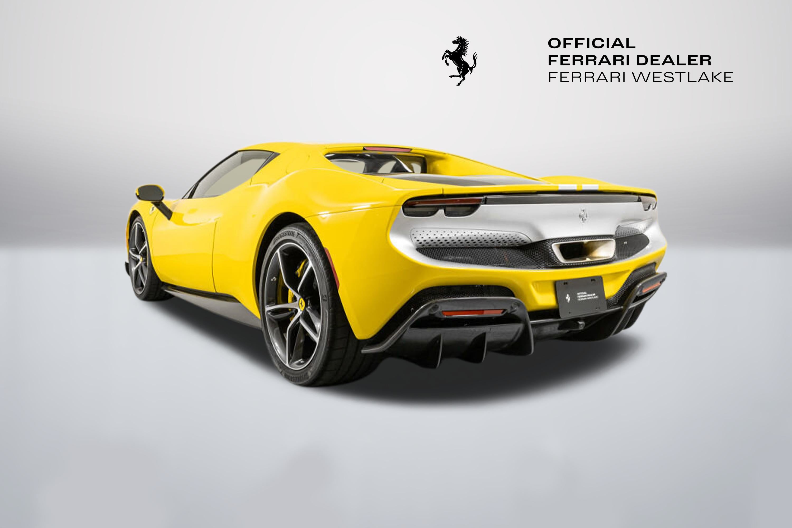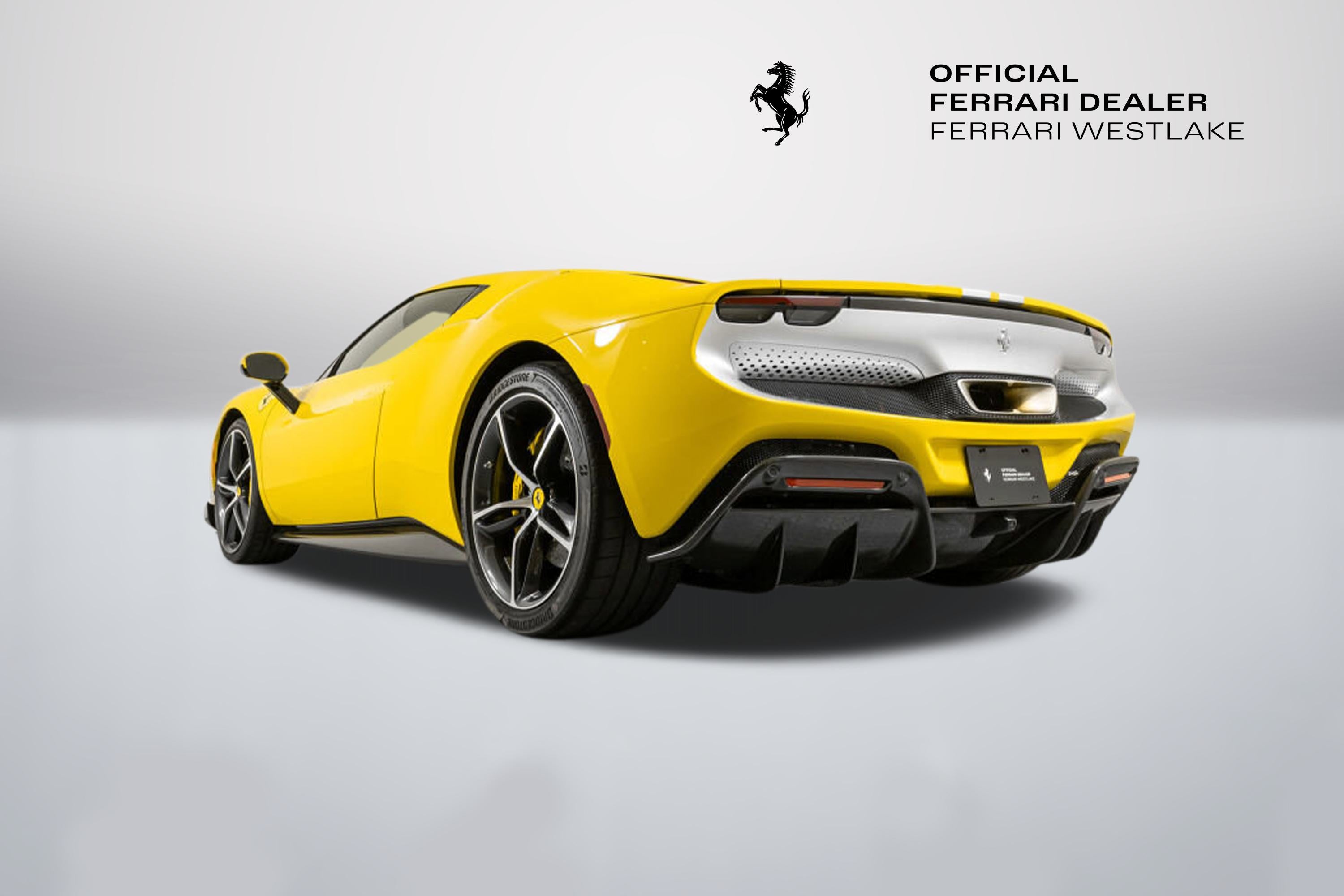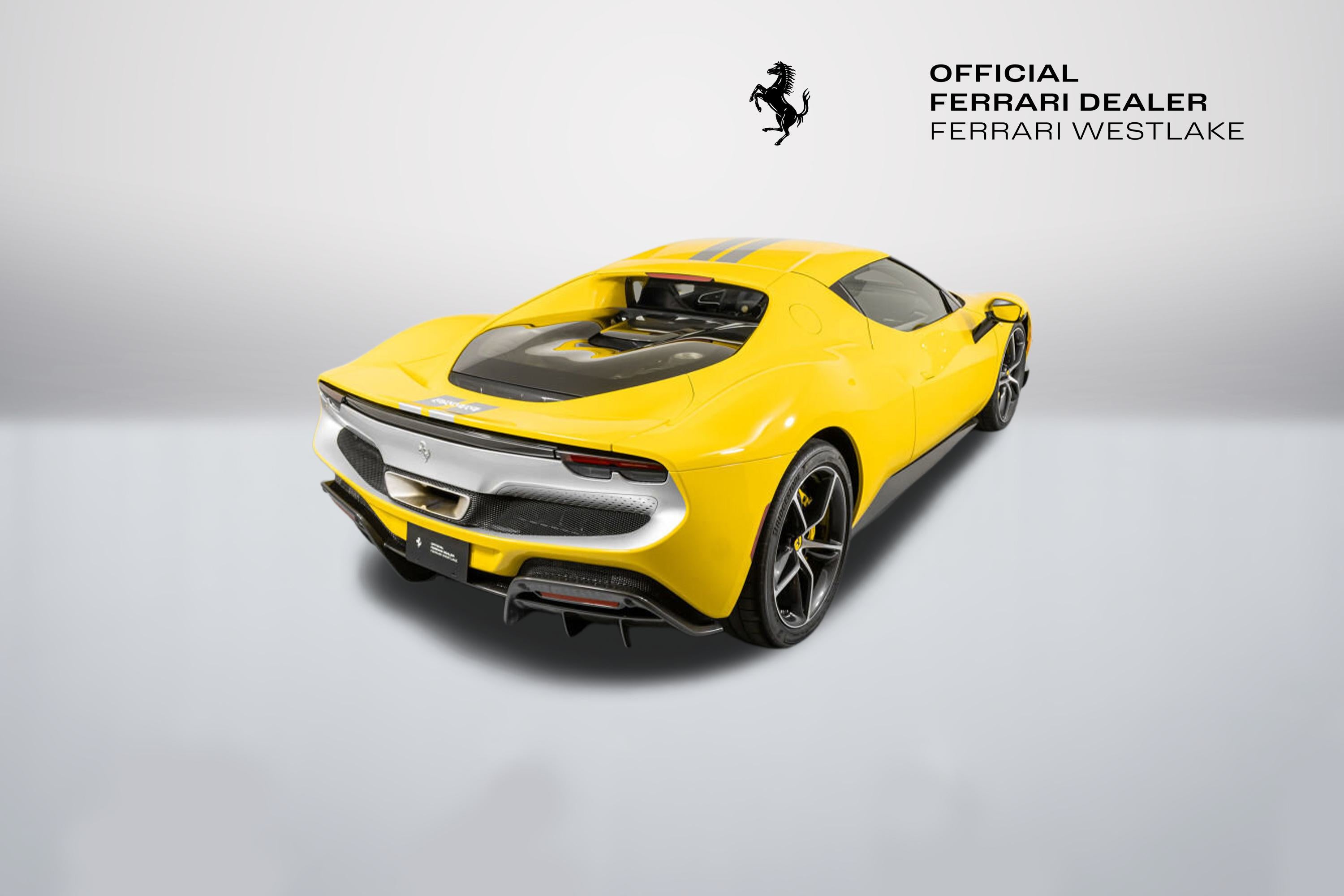 Ferrari Westlake is proud to present the availability of this exceptionally optioned 2023 Ferrari 296 GTB. Tastefully designed and extremely well-equipped, this 296 GTB features a Giallo Modena over nero colorway. Sporting the Assetto Fiorano Package with an Argento Nurburgring racing livery, this configuration exudes the capability of Ferrari's design prowess on their latest mid-rear-engine model. This particular 296 GTB was first delivered by Ferrari Westlake, and has remained local ever since - coming back to us with just 1034 miles. The 296 GTB, an evolution of Ferrari’s mid-rear-engine two-seater sports berlinetta concept, represents a revolution for the Maranello-based company as it introduces the new 120 V6 engine coupled with a plug-in (PHEV) electric motor capable of delivering up to 830 cv. The car thus defines the idea of driving fun to provide pure excitement not only when pursuing maximum performance but also in everyday driving. When creating the 296, Project leader Mirko Statini noted the soul of this project is the engine, further elaborating that the staggering sound emitted by the 296 is designed to mimic the high-pitched tones of a V12 engine, hence the V6 hybrid being nicknamed the 'piccolo V12'. The 8500-rpm redline provides a visceral driving experience, while four drive modes - eDrive, Hybrid, Performance, and Qualify - provide ascending performance characteristics. Exterior Factory Upgrades Include Assetto Fiorano Package Extended Racing Livery (Argento Nurburgring) Giallo Modena DS Paintwork AFS System America Scuderia Ferrari Shields Forged Glossy Diamond Wheels Yellow Brake Calipers Titanium Wheel Bolts Carbon Fiber Rear Diffuser Carbon Fiber Underdoor Cover Carbon Fiber Engine Covers Lexan Rear Bonnet Cover Electrochromatic Exterior Mirrors Advanced Front Driving Camera Factory Interior Options Specific Design Racing Seats (L) Racing Seat Lifter Carbon Fiber Driver Zone + Paddles + LEDs Carbon Fiber Upper Tunnel Trim Carbon Fiber Dashboard Inserts Carbon Fiber Dashboard Stripes Matte Finish Interior Carbon Fiber Horse Stitched on Headrest (Filo Giallo) Coloured Special Stitching (Filo Special Giallo) Coloured Leather Seat Stripes (Pelle Giallo) Coloured Safety Belts (Cinture Giallo) Leather Headliner (Nero) Garage Door Openers Apple Carplay Wireless Charger Premium HIFI System Ferrari Factory Warranty 2/8/26 Ferrari Genuine Maintenance Program 2/8/30 Please contact our Ferrari Westlake Sales Team for further information or to schedule your appointment.