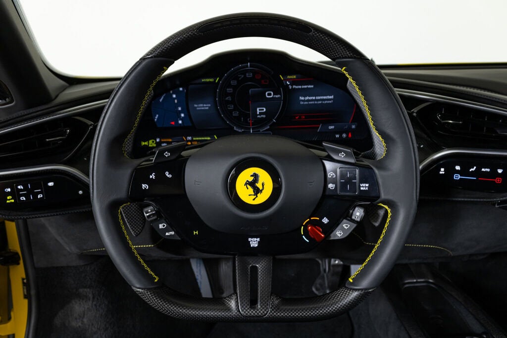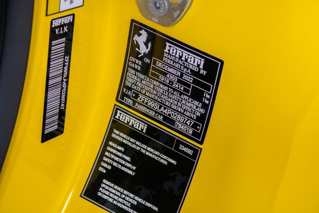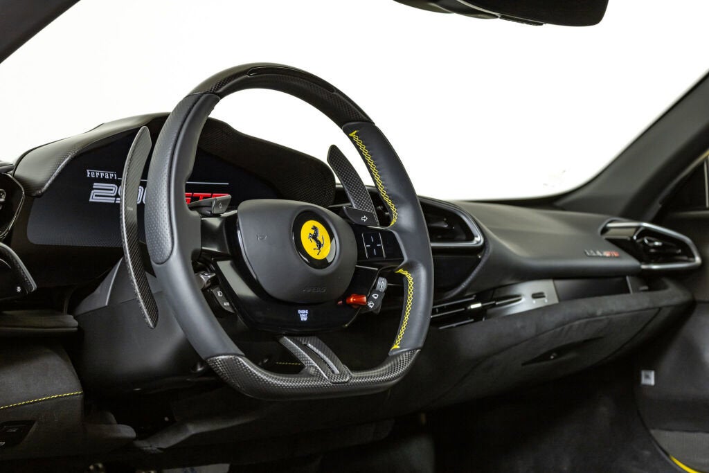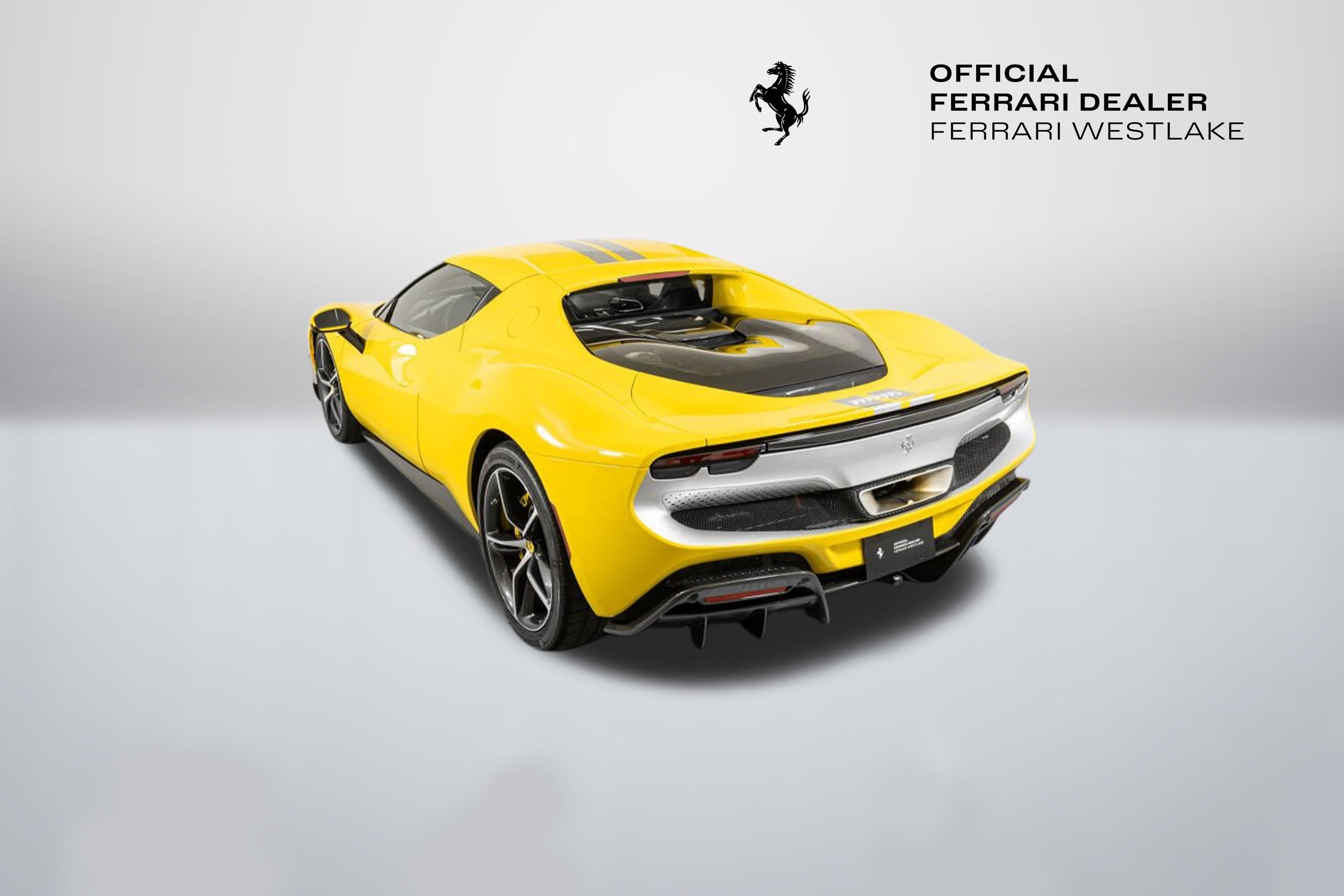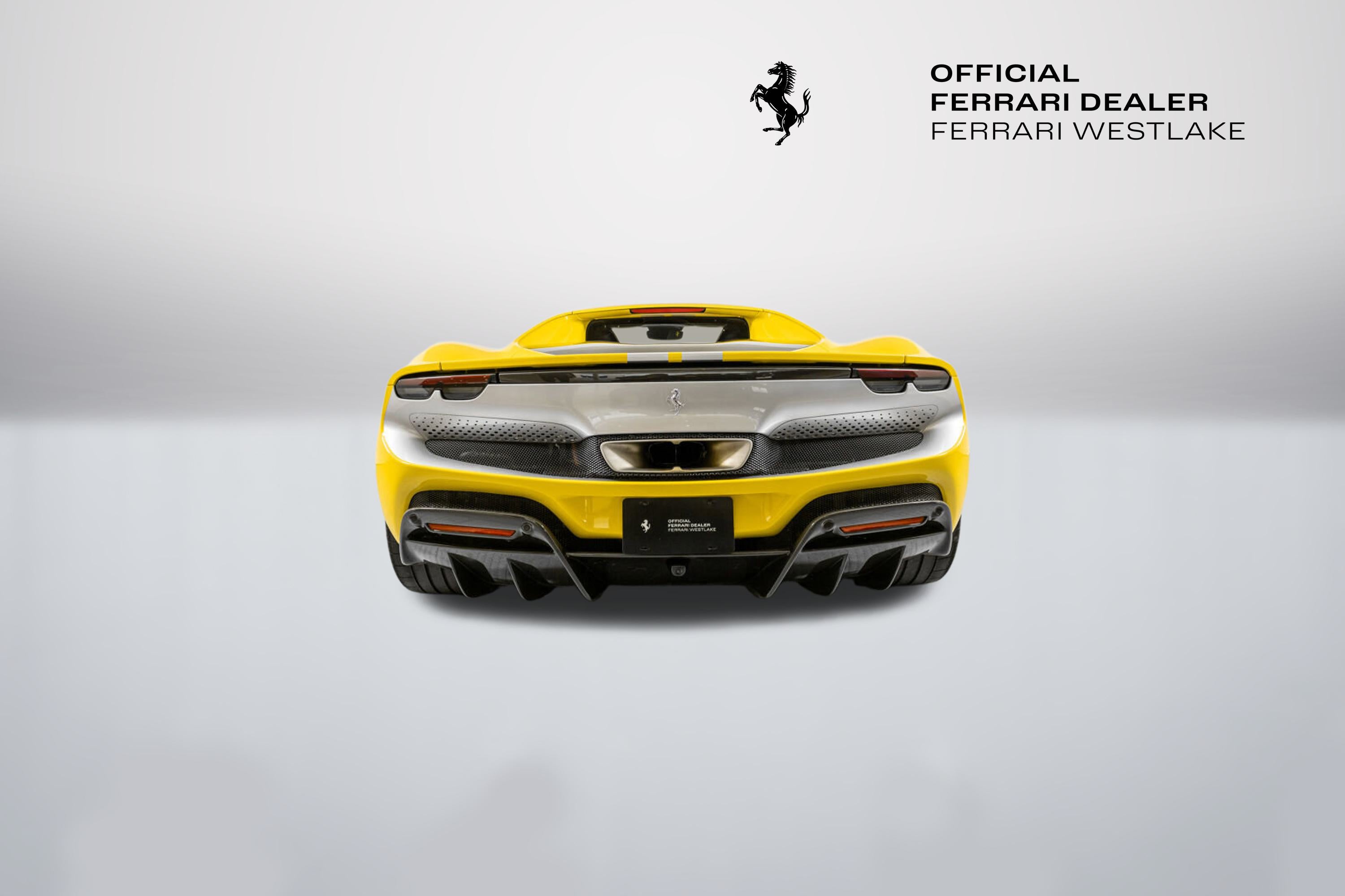 Ferrari Westlake is proud to present the availability of this exceptionally optioned 2023 Ferrari 296 GTB. Tastefully designed and extremely well-equipped, this 296 GTB features a Giallo Modena over nero colorway. Sporting the Assetto Fiorano Package with an Argento Nurburgring racing livery, this configuration exudes the capability of Ferrari's design prowess on their latest mid-rear-engine model. This particular 296 GTB was first delivered by Ferrari Westlake, and has remained local ever since - coming back to us with just 1034 miles. The 296 GTB, an evolution of Ferrari’s mid-rear-engine two-seater sports berlinetta concept, represents a revolution for the Maranello-based company as it introduces the new 120 V6 engine coupled with a plug-in (PHEV) electric motor capable of delivering up to 830 cv. The car thus defines the idea of driving fun to provide pure excitement not only when pursuing maximum performance but also in everyday driving. When creating the 296, Project leader Mirko Statini noted the soul of this project is the engine, further elaborating that the staggering sound emitted by the 296 is designed to mimic the high-pitched tones of a V12 engine, hence the V6 hybrid being nicknamed the 'piccolo V12'. The 8500-rpm redline provides a visceral driving experience, while four drive modes - eDrive, Hybrid, Performance, and Qualify - provide ascending performance characteristics. Exterior Factory Upgrades Include Assetto Fiorano Package Extended Racing Livery (Argento Nurburgring) Giallo Modena DS Paintwork AFS System America Scuderia Ferrari Shields Forged Glossy Diamond Wheels Yellow Brake Calipers Titanium Wheel Bolts Carbon Fiber Rear Diffuser Carbon Fiber Underdoor Cover Carbon Fiber Engine Covers Lexan Rear Bonnet Cover Electrochromatic Exterior Mirrors Advanced Front Driving Camera Factory Interior Options Specific Design Racing Seats (L) Racing Seat Lifter Carbon Fiber Driver Zone + Paddles + LEDs Carbon Fiber Upper Tunnel Trim Carbon Fiber Dashboard Inserts Carbon Fiber Dashboard Stripes Matte Finish Interior Carbon Fiber Horse Stitched on Headrest (Filo Giallo) Coloured Special Stitching (Filo Special Giallo) Coloured Leather Seat Stripes (Pelle Giallo) Coloured Safety Belts (Cinture Giallo) Leather Headliner (Nero) Garage Door Openers Apple Carplay Wireless Charger Premium HIFI System Ferrari Factory Warranty 2/8/26 Ferrari Genuine Maintenance Program 2/8/30 Please contact our Ferrari Westlake Sales Team for further information or to schedule your appointment.