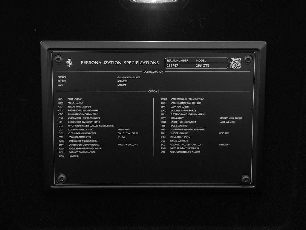 Cavallino Rosso St. Louis is proud to present this Ferrari Approved Certified Pre-Owned 2023 Ferrari 296 GTB Assetto Fiorano. Finished in stunning *Giallo Modena* over a performance-focused *Nero interior* with *Giallo accents*, this 296 GTB is a true showcase of Ferraris design and engineering brilliance. With only *2,137 miles* and equipped with the ultra-desirable *Assetto Fiorano Package*, this example is loaded with carbon fiber options both inside and out. It also includes Ferrari's complimentary maintenance plan and CPO warranty for complete peace of mind. Ferrari Approved Certified Pre-Owned Warranty: *2 Years / Unlimited Miles* included at no additional cost. Ferrari Genuine Maintenance Program: *No Charge Coverage Until 2030* *Options Include: