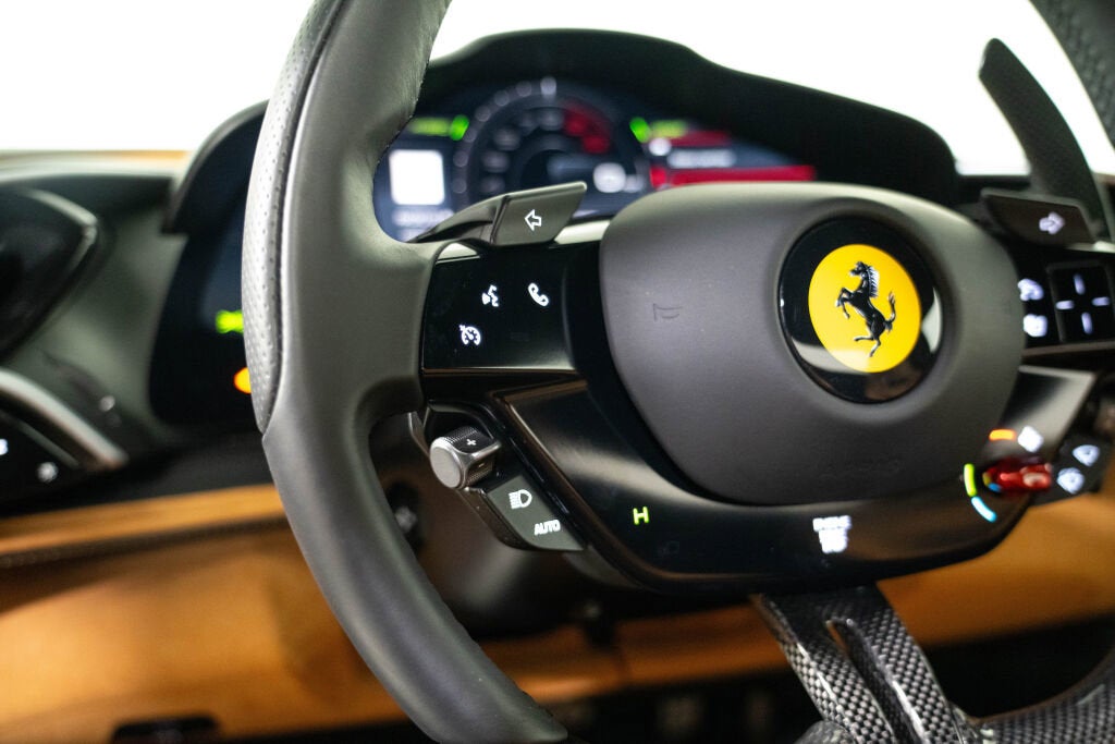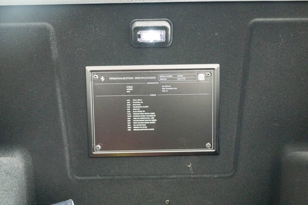 Ferrari Beverly Hills is proud to present this 2024 Ferrari 296 GTB, finished in timeless Blu Pozzi over Beige Tradizione. Delivered new by our dealership in 2024, and procured from its original owner, this example is now offered for sale with only 584 miles on the odometer. At the heart of the 296 GTB is a 3.0L Twin-Turbocharged V6 Hybrid generating 819 horsepower, paired to an 8-speed dual-clutch transmission and rear-wheel drive. Independent testing by Car and Driver recorded a 0 60 mph time of just 2.4 seconds, with the quarter mile dispatched in an astonishing 9.7 seconds. Achieving a sub-10-second quarter mile places the 296 GTB among a rarefied group of hypercars testament to Ferrari’s engineering mastery. This particular 296 GTB's optional equipment includes the Front Suspension Lifter, Blind Spot Detection, Full-Electric Seats, and the Carbon Fiber Steering Wheel with LEDs all the must haves. Finished in one of Ferrari’s most evocative heritage colors, this 296 GTB offers exceptional performance in a classically styled package. With single-owner provenance, Ferrari Approved eligibility, and full factory coverage, it presents a compelling opportunity for the enthusiast or collector alike. The Original Ferrari Manufacturer Warranty is active through July 19, 2027. The 4-Year Emissions Warranty is active through July 19, 2031. The 7-Year Genuine Maintenance Program provides complimentary annual servicing through July 19, 2031. Exterior Options Include: