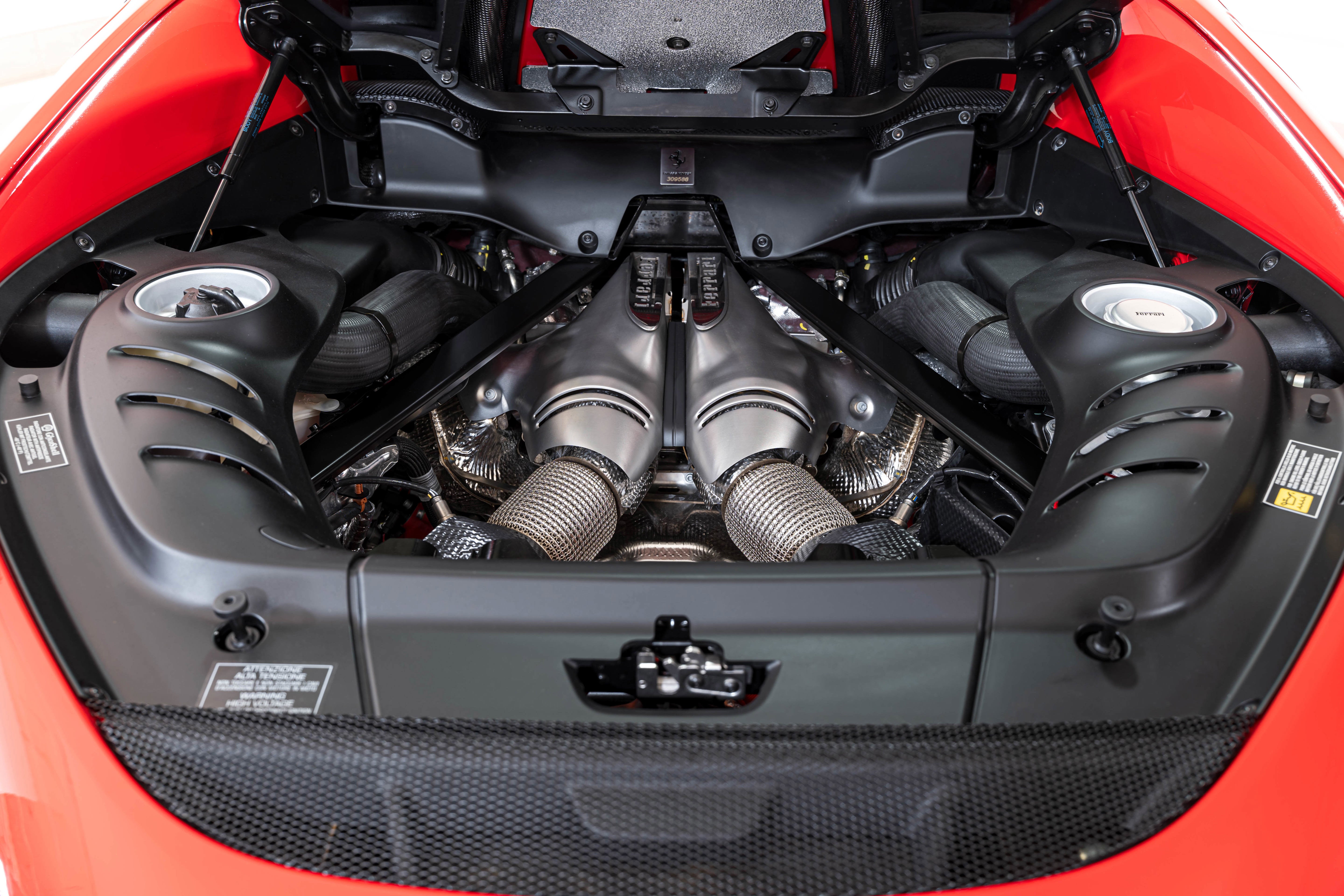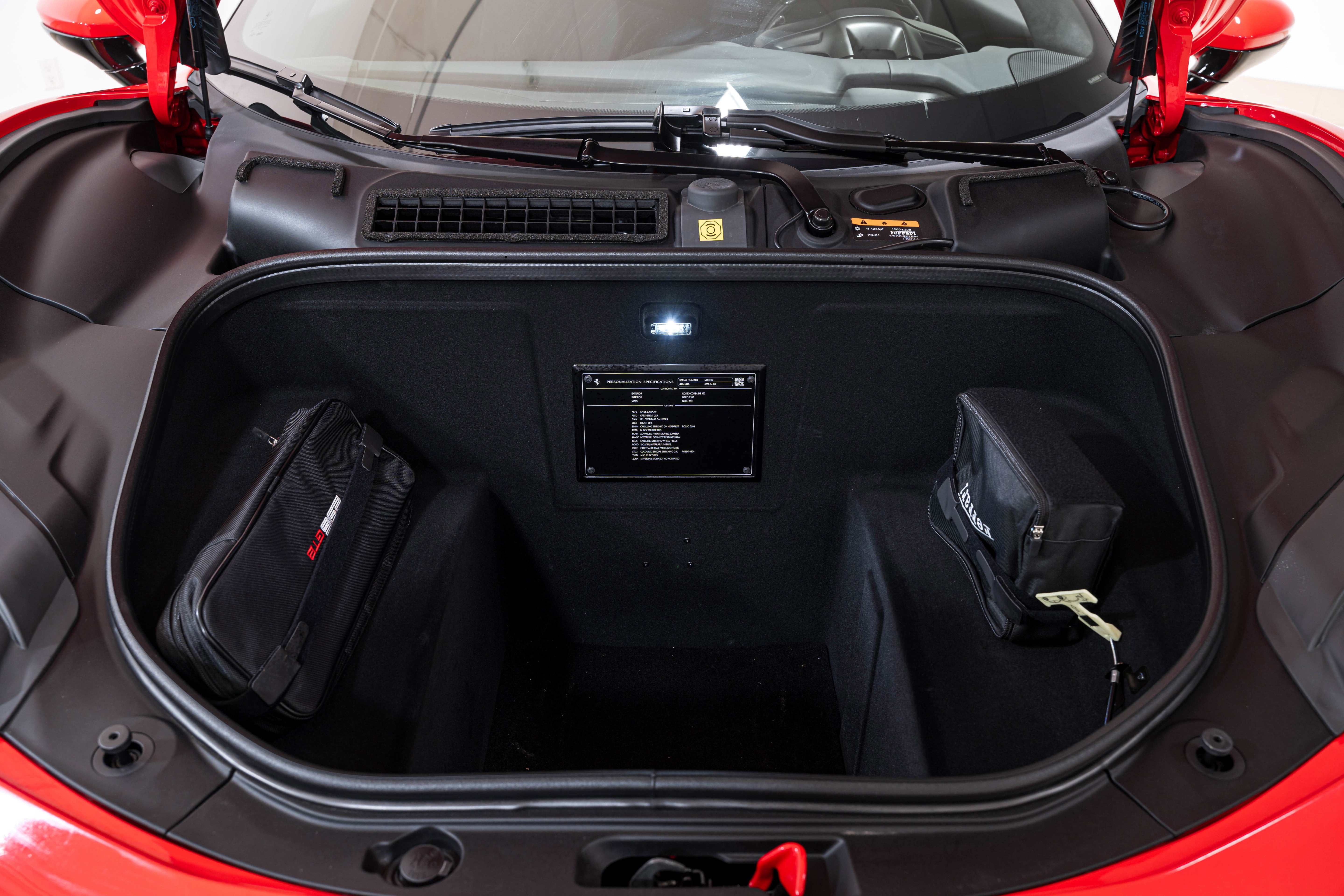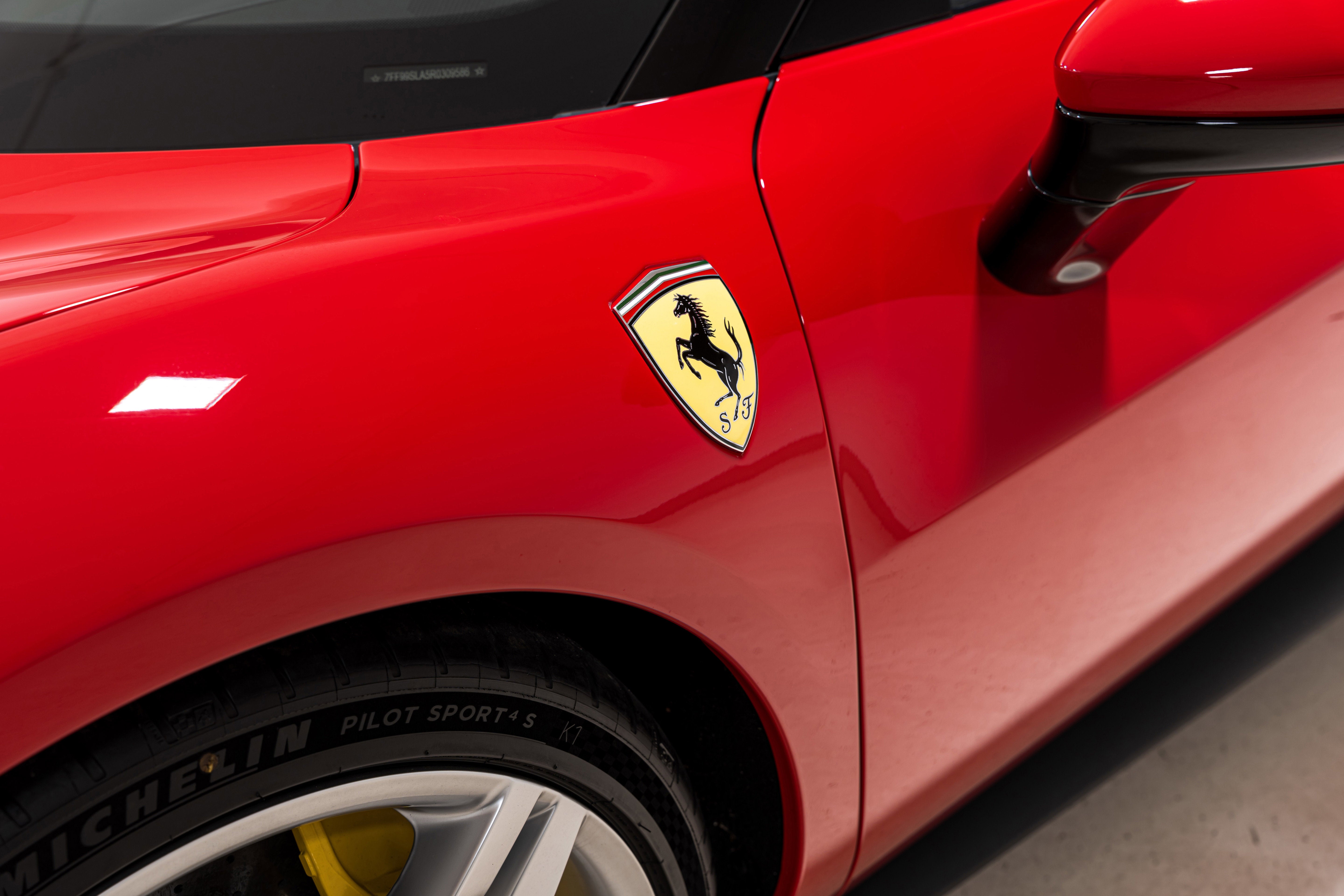 • Finished in timeless Rosso Corsa, this 296 GTB pairs Ferrari's most iconic exterior colour with striking Giallo accents, including Scuderia Ferrari shields and matching Giallo brake calipers---creating a bold, motorsport-inspired presence. The exterior has been meticulously preserved with full paint protection film, ceramic coating, and windshield film, ensuring lasting protection and a flawless appearance.