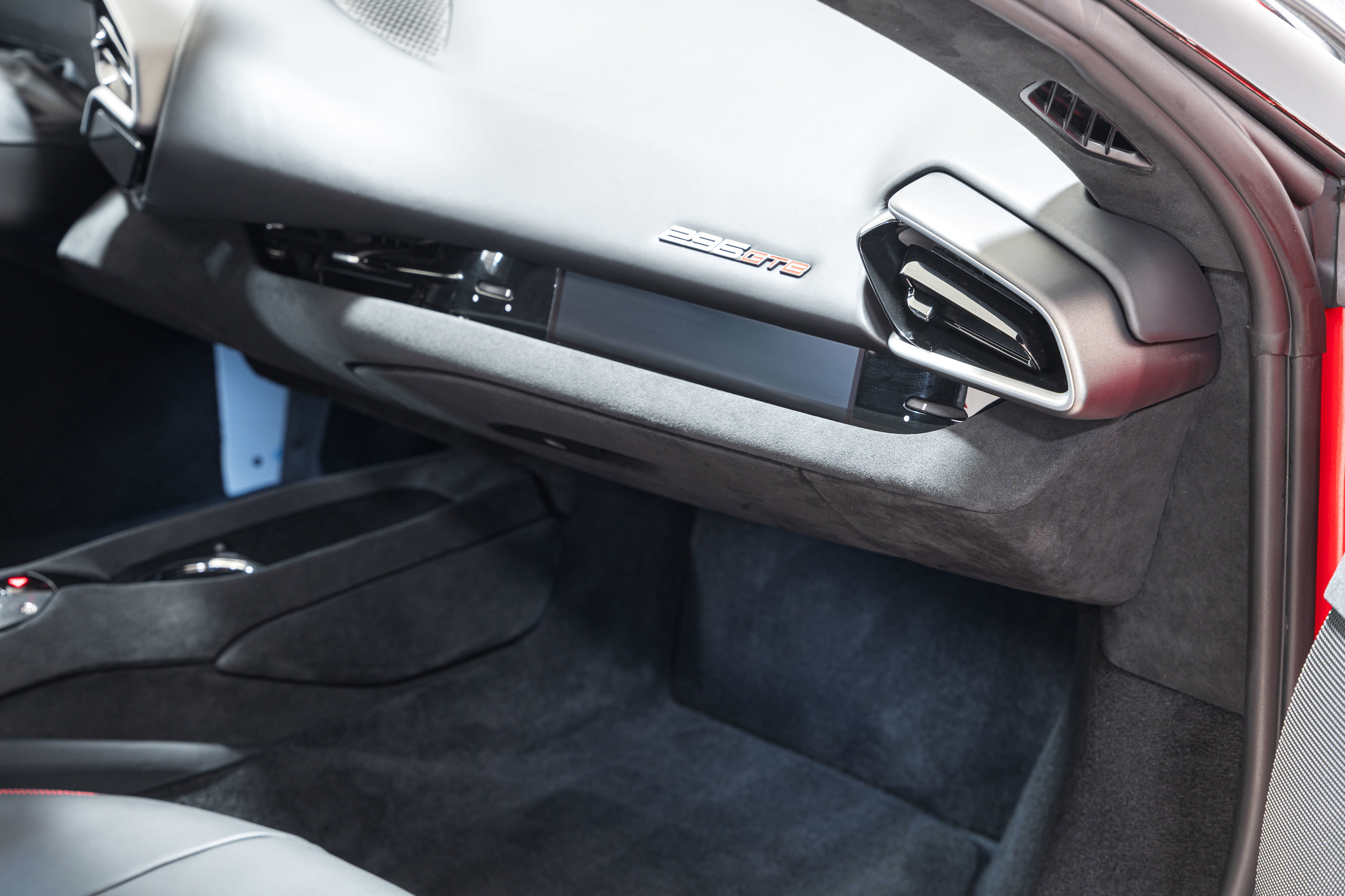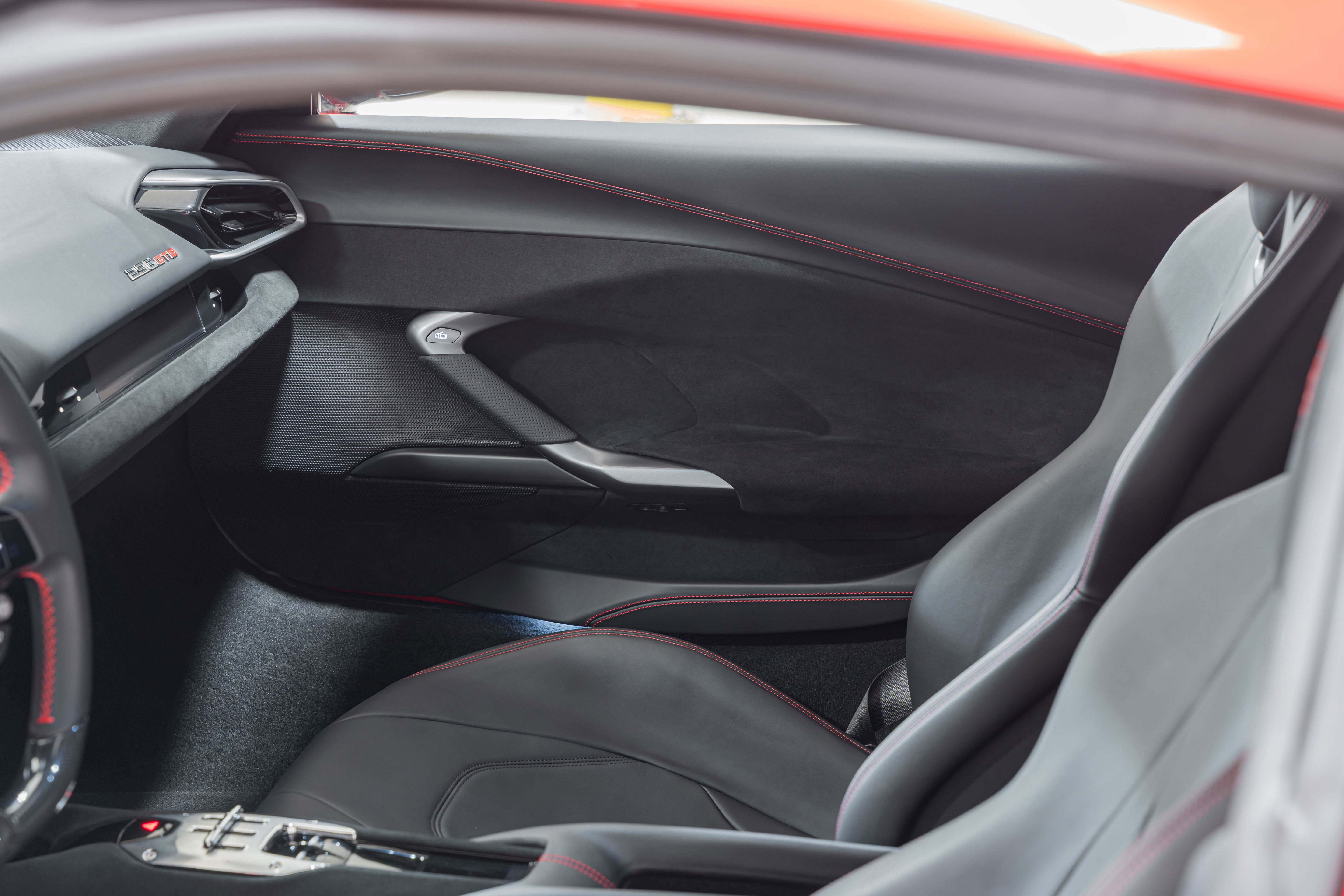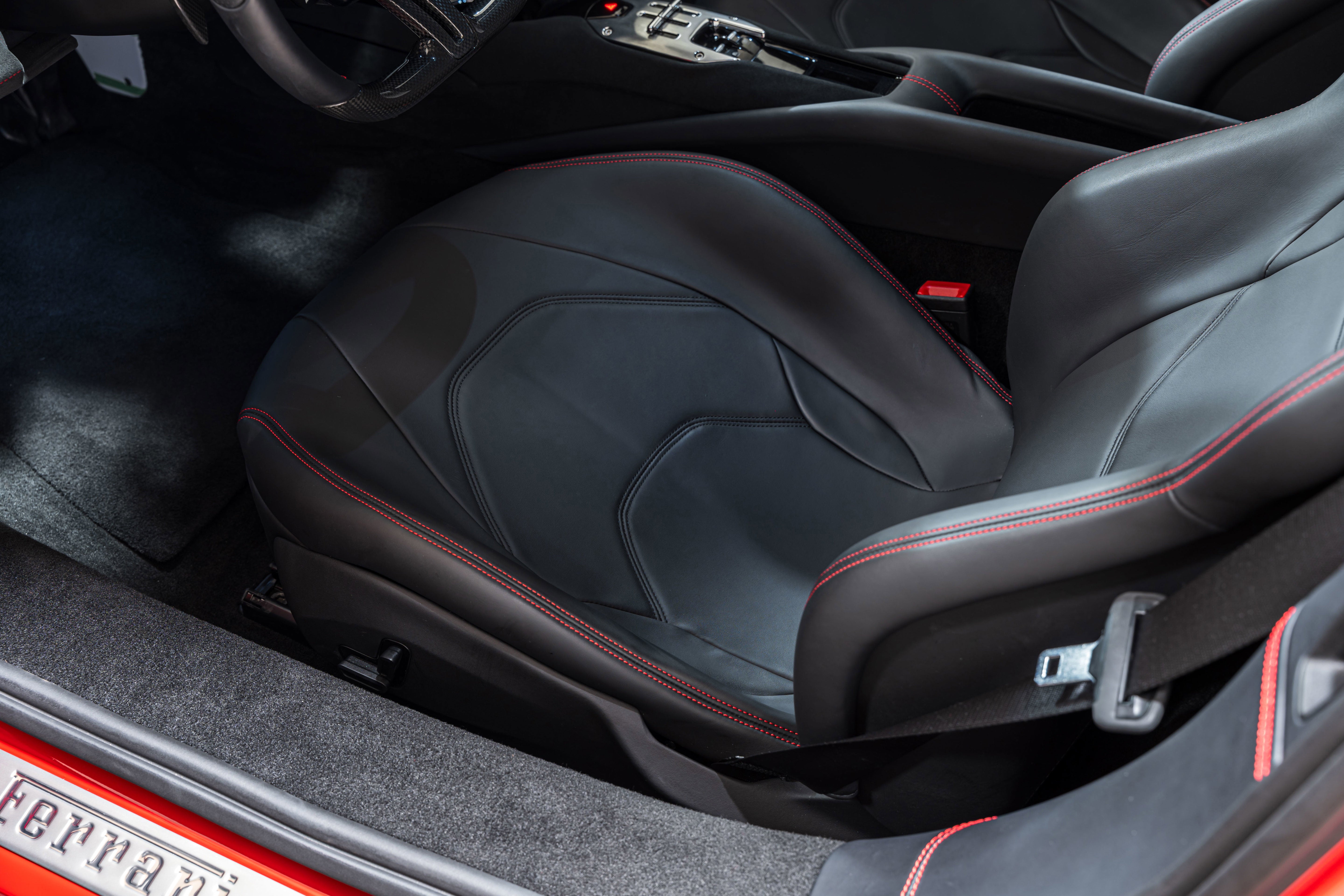 • Interior: Upper part of centre tunnel in carbon fibre, Carpet Color, Coloured seat belts, Embroidered Cavallino emblem on headrest, dashboard, carbon, LEDS, Carbon fibre steering wheel with LEDs, Full-electric ventilated seats, Leather headliner in colour of customer's choice, Standard stitching in colour of customer's choice