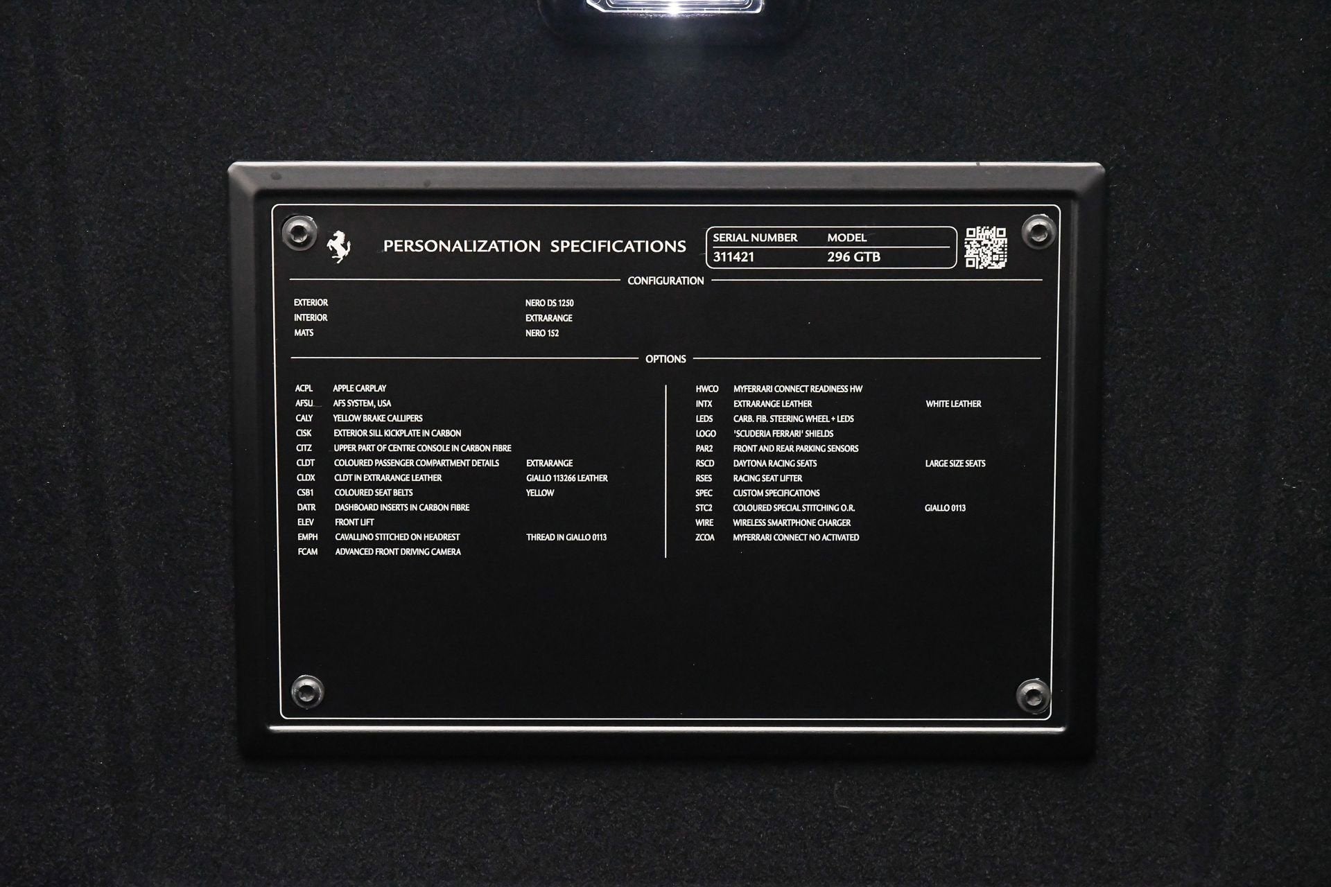 FERRARI OF CENTRAL NEW JERSEY IS PROUD TO PRESENT THIS BEAUTIFUL 2024 Ferrari 296 GTB Nero Ds with Bianca Leather interior. Genuine Maintenance Service 7 years: 11/29/2031 36 months factory warranty: 11/29/2027 Full Spec: External colors: NERO DS 1250 CLDT WITH SPECIAL LEATHER: PELLE GIALLA 113266 Internal colors: EXTRACAMPIONARIO-NOT STANDARD Carpets colors: NERO 152 (BLACK) AFS SYSTEM AMERICA SPECIAL LEATHER; PELLE BIANCA YELLOW BRAKE CALIPERS SUSPENSION LIFTER FRONT PARKING SENSORS 'SCUDERIA FERRARI' SHIELDS ADVANCED FRONT DRIVING CAMERA COLOURED SPECIAL STITCHING: FILO SPECIALE GIALLO 0113 COLOR LEATHER SEATS STRIPES: EXTRACAMPIONARIO-NOT STANDARD DAYTONA RACING SEATS: SEDILI TAGLIA LARGE HORSE STITCHED ON HEADREST: FILO GIALLO 0113 - YELLOW 0113 RACING SEAT LIFTER WIRELESS CHARGER SMARTPHONE COLOURED SAFETY BELTS: CINTURE GIALLO APPLE CARPLAY CARBON FIBRE DASHBOARD INSERTS CARBON FIBRE UPPER TUNNEL TRIM SILL KICK IN CARBON FIBRE CARBON STEER.WH. +PADDLES+LEDS INTERNAL USE SPECIAL FEATURES MERCATO HW READINESS MYFERRARI CONNECT Welcome to Ferrari of Central New Jersey, where the essence of Ferrari's spirit and excellence is at the heart of everything we do. As the official Ferrari dealership in New Jersey, we are dedicated to providing an unmatched automotive experience to our valued clients throughout the NYC metro area and beyond. Whether you visit our showroom in person or explore our offerings virtually, you'll discover a diverse inventory that includes the latest Ferrari models, timeless classics, and a curated selection of high-end vehicles from other prestigious automakers. Our state-of-the-art, authorized service facility is designed to keep your Ferrari in peak condition, ensuring an optimal driving experience for years to come. We offer the convenience of complimentary vehicle pick-up and drop-off in a fully enclosed trailer, making your service experience as seamless as possible. While you're here, visit our boutique to browse a range of genuine Ferrari accessories, shop the latest Ferrari styles for gifts and apparel, and enjoy an espresso or refreshment. Our knowledgeable sales consultants are eager to guide you through the Ferrari culture, sharing insights about exclusive upcoming events and Ferrari activations. Take a tour of the Atelier, our dedicated design studio, where you can personalize every detail of your new Ferrari on order. Explore an endless array of paint colors and interior options to create a vehicle that is uniquely yours. We look forward to welcoming you and guiding you through an immersive experience in the Ferrari lifestyle and of this legendary brand. For any inquiries, please contact us at Ferrarisales@ferraricnj.com or call 732-248-9100.