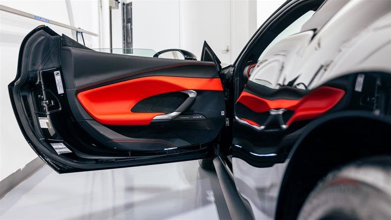 • Leather passenger compartment accents in colour of customer's choice (Rosso Ferrari)