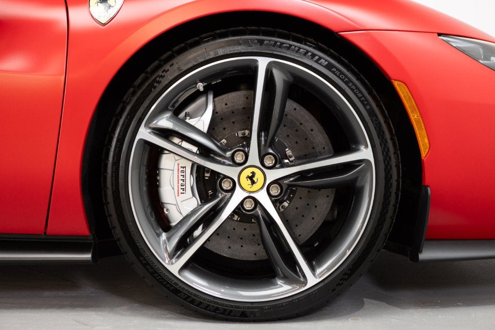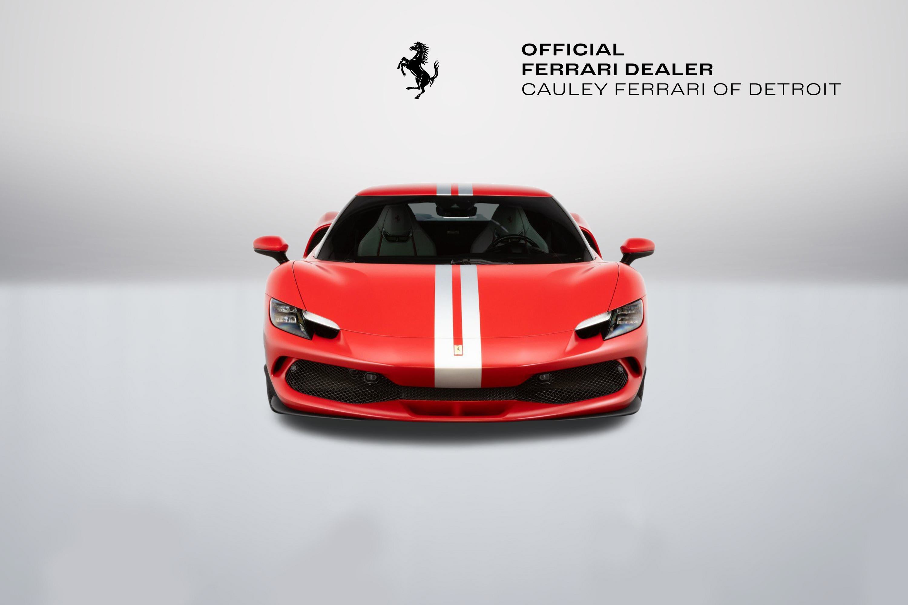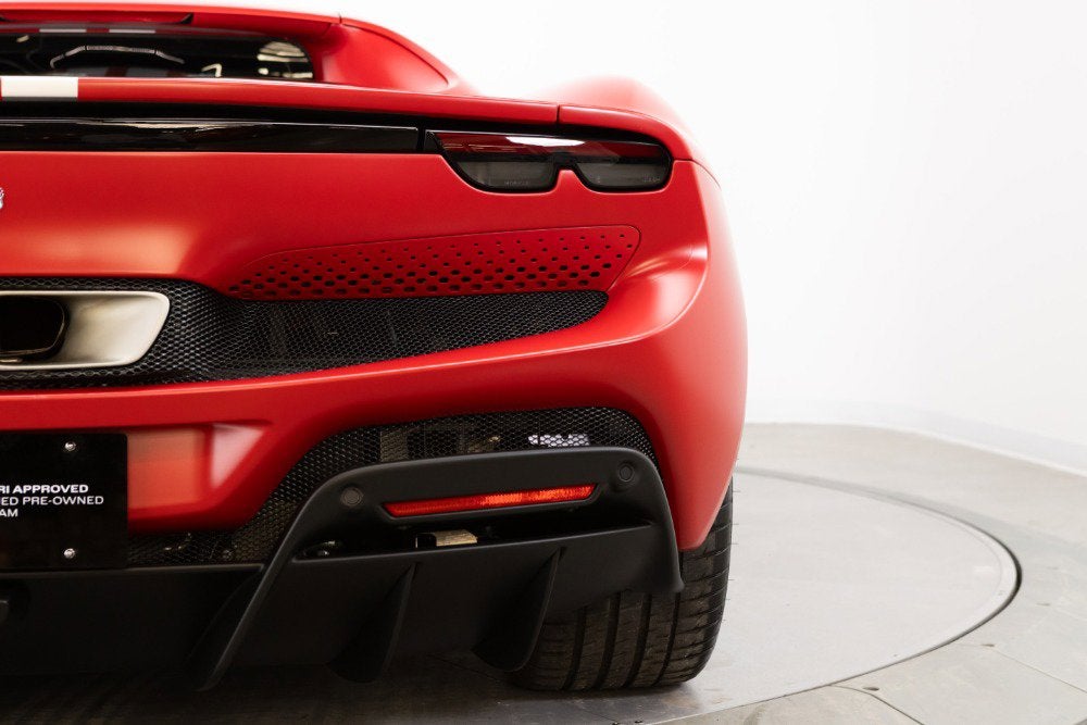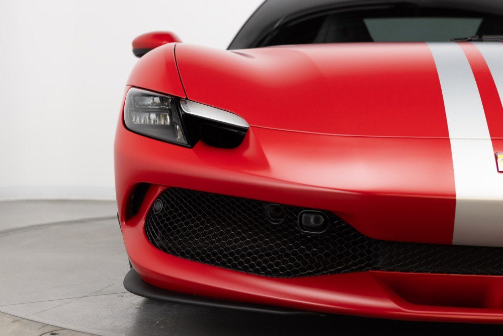 Cauley Ferrari of Detroit is excited to offer you this 2024 296 GTB finished in Rosso Ferrari F1-75 Opaco with Argento Nurburgring Opaco Stripes over a Grigio Corvara interior with Rosso Giudecca accents. This is a very well spec'd model that was designed through the New York Atelier studio. Optioned with Apple CarPlay, Front Lift, Carbon Fiber Steering Wheel + LEDs, Front and Rear Parking Sensors, and much more. The full options list can be seen below. We are selling this as a Ferrari Certified Pre-Owned vehicle. The remaining factory warranty runs through 9/6/2027and will be followed by an additional year of factory Bumper-to-Bumper Coverage through 9/6/2028. The free scheduled maintenance plan is in effect until 9/6/2031. Give us a call at 248-538-9600 to set up an appointment for a closer look or stop by our showroom in West Bloomfield, MI. Please ask us about our financing and leasing options available through Ferrari Financial Services (FFS). We can offer you monthly financing as far out as 84 months, Balloon financing up to 60 months, as well as Open-End Leasing scenarios. FFS is available on all new and pre-owned Ferrari models. These flexible payment options really make getting into a Ferrari easier than ever before. Let us show you how. Give us a call at 248-538-9600 to set up an appointment for a closer look or stop by our showroom in West Bloomfield, MI. Factory Options: - Apple CarPlay - AFS System, USA - Atelier Car - Atelier New York - Back Radar - Brake Callipers in Aluminium - Coloured Passenger Compartment Details Extrarrange - CLDT in Extrarrange Leather Rosso Giudecca - Dedication Plaque in Silver - Front Lift - Cavallino Stitched on Headrest Extrarrange - Emph in Special Thread Rosso Giudecca 105 - Advanced Front Driving Camera - Long, Narrow Italian Flag Motif - MyFerrari Connect Readiness HW - Extrarrange Leather Grigio Corvara - Carb. Fib. Steering Wheel + LEDs - Scuderia Ferrari Shields - Electrochromic Rear-View Mirror - Front and Rear Parking Sensors - Special Matte Colours Matte Rosso Ferrari F1-75 - Diamond-Polished Forged Wheels - Premium Hi-Fi System - Custom Specifications - STC2 in Special Thread Rosso Giudecca 105 - Coloured Special Stitching O.R. - Seats with Special Design - Wheel Stud Bolts in Titanium - Michelin Tyres - Wireless Smartphone Charger - MyFerrari Connect Not Activated Special Equipment: Livery with longitudinal stripe in matte Argento Nurburgring 205600 Opaco (510 gloss) starting on front bumper and separating into two stripes on front badge with central line in same colour as bodyshell up to rear spoiler. The 296 GTB, an evolution of Ferrari's mid-rear-engined two-seater sports Berlinetta concept, represents a revolution for the Maranello-based company as it introduces the new 120 V6 engine coupled with a plug-in (PHEV) electric motor capable of delivering up to 830 HP The car thus redefines the idea of driving fun to provide pure excitement not only when pursuing maximum performance but also during everyday driving. The engine structure means that the turbochargers can fit within the V. This increases its compactness, lowers its center of gravity, reduces its mass, and helps it achieve extraordinarily high-power levels (663 HP). The new Ferrari V6 sets a record of 221 hp/l for specific torque output for a production car. The design of the 296 GTB redefines the identity of Ferrari's mid-rear-engined Berlinetta, giving the car a compact, modern, and original line. Its short wheelbase and monolithic appearance make it the most compact Berlinetta from Maranello of the last decade. Having abandoned the typical fastback Berlinetta layout, the Ferrari Style Centre focused on creating a cabin set within a powerful volume. This was the result of the short wheelbase and aspects such as muscular mudguards, a visor roof, flying buttresses, and a brand-new vertical rear screen. The rear is dominated by a ring-shaped flying buttress that houses the engine compartment cover, developed on an unusual three-dimensional glass surface. The central part of the car stands out with a body-colored element that represents a style theme dear to the Maranello marque. Another characteristic of the 296 GTB is the truncated tail that enhances its compactness. The tail incorporates a horizontal element that encloses lights and an integrated spoiler.