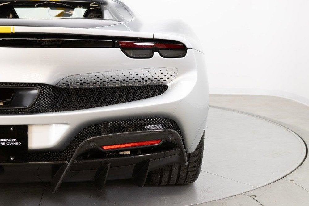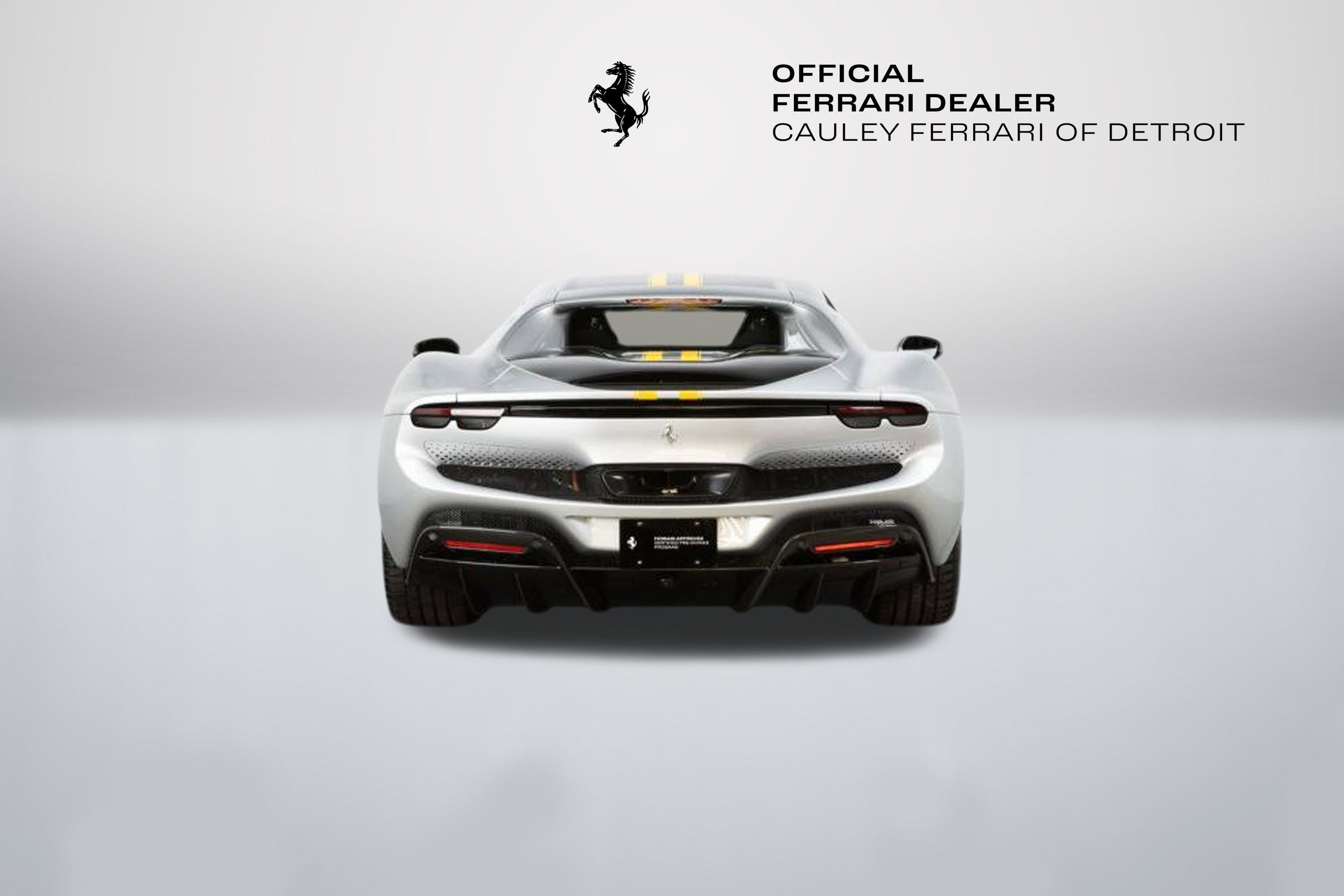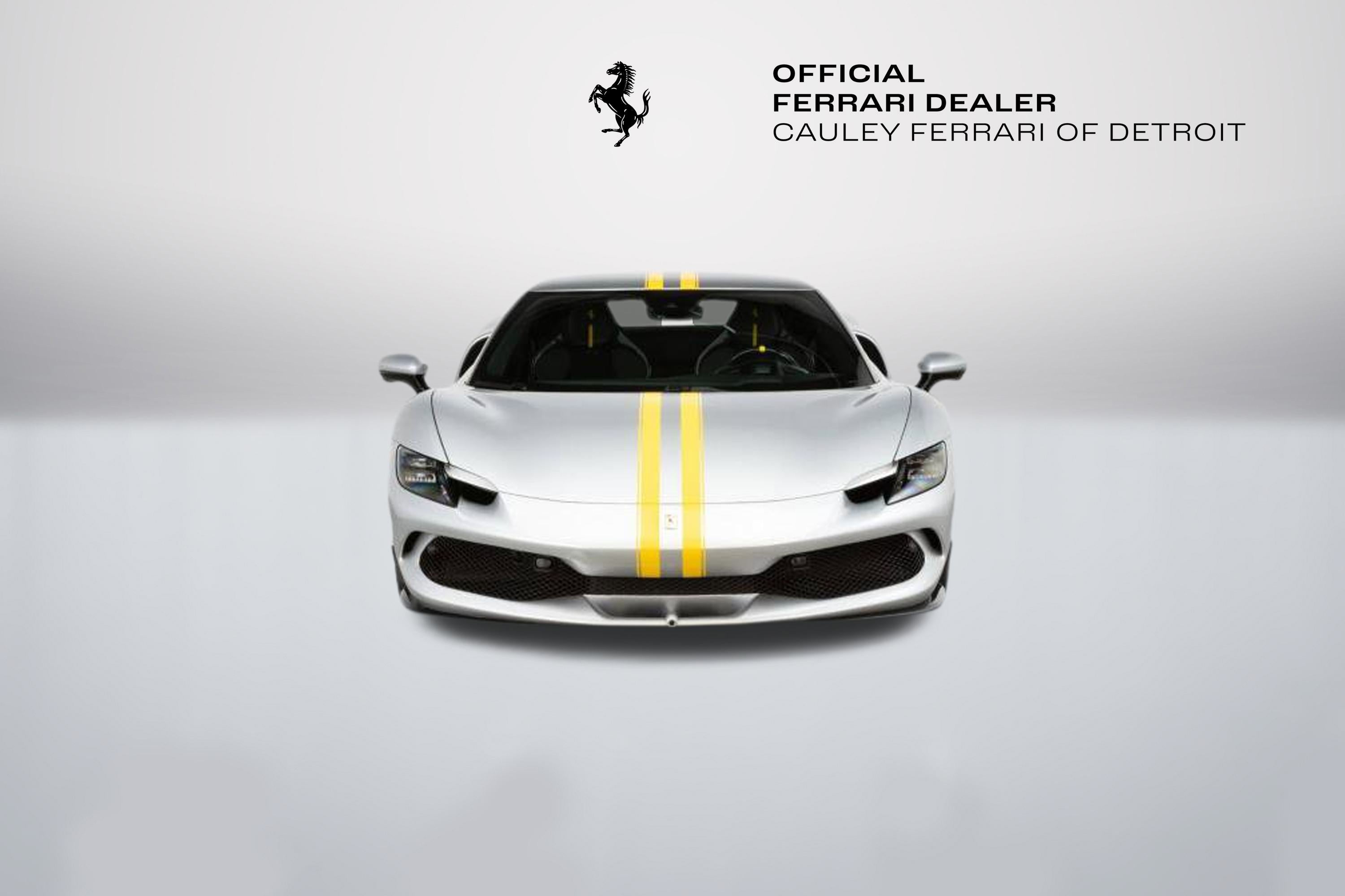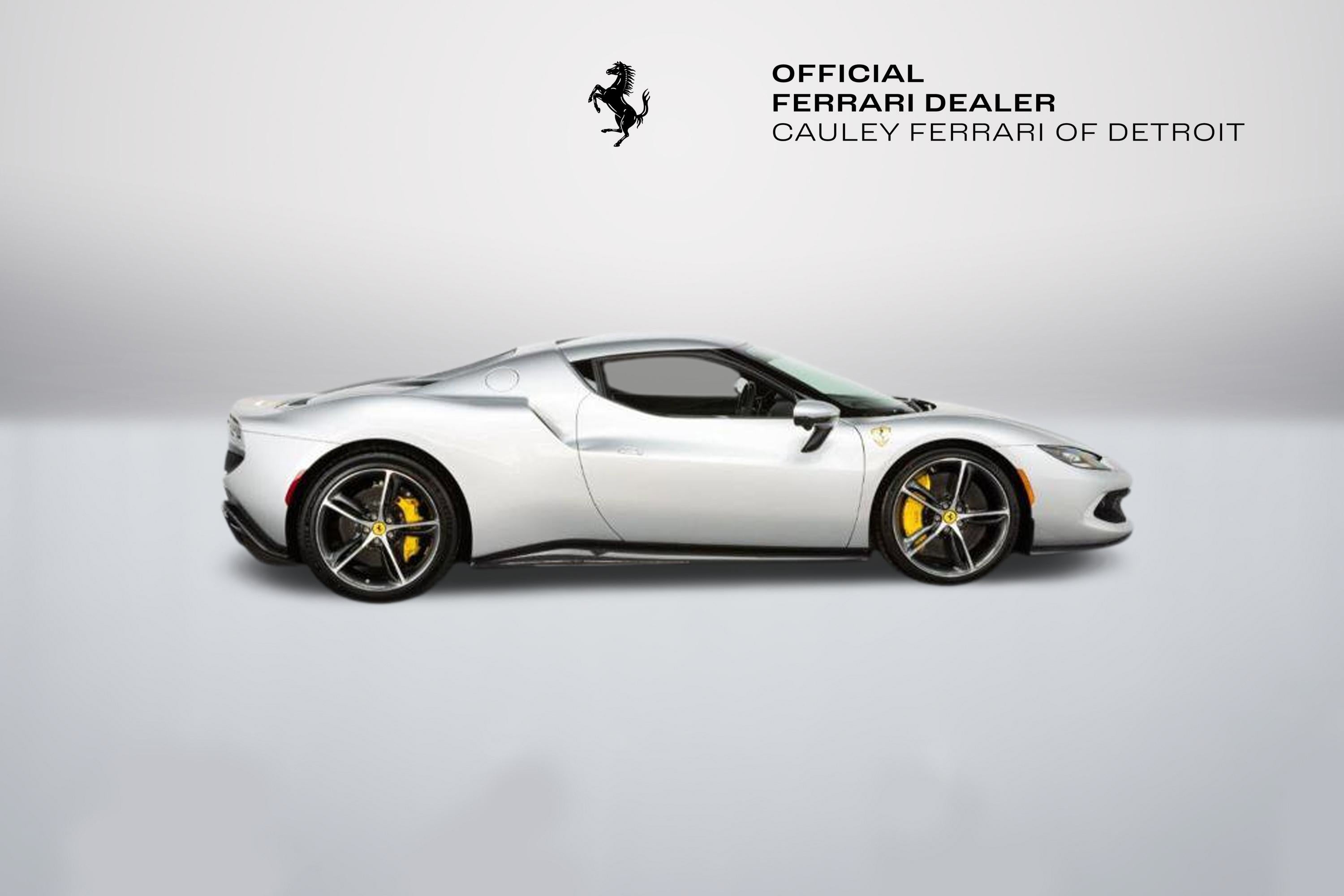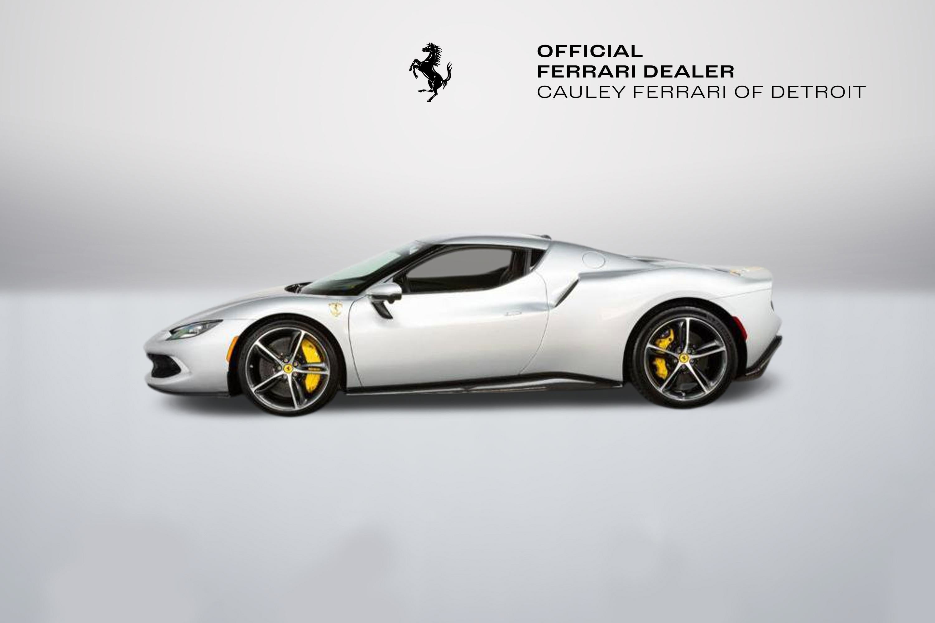 Cauley Ferrari of Detroit is excited to offer you this 2024 296 GTB finished in Argento Nurburgring with Giallo Modena Stripes over a Nero interior with Giallo accents. This is a very well spec'd model, optioned with Carbon Fiber Racing Seats, Apple CarPlay, Surround Camera View, plenty of Carbon Fiber inside and out, and more. The full options list can be seen below. We are selling this as a Ferrari Certified Pre-Owned vehicle. The remaining factory warranty runs through 11/27/27 and will be followed by an additional year of factory Bumper-to-Bumper Coverage. The free scheduled maintenance plan is in effect until 11/27/31. Give us a call at 248-538-9600 to set up an appointment for a closer look or stop by our showroom in West Bloomfield, MI. Please ask us about our financing and leasing options available through Ferrari Financial Services (FFS). We can offer you monthly financing as far out as 84 months, Balloon financing up to 60 months, as well as Open-End Leasing scenarios. FFS is available on all new and pre-owned Ferrari models. These flexible payment options really make getting into a Ferrari easier than ever before. Let us show you how. Give us a call at 248-538-9600 to set up an appointment for a closer look or stop by our showroom in West Bloomfield, MI. Factory Options: - Apple CarPlay - AFS System, USA - Central part of seats in interior Alcantara - Yellow brake calipers - Rear diffuser in carbon fibre - Carbon fibre underdoor cover - Exterior sill kickplate in carbon - Upper part of centre console in carbon fibre - Coloured passenger compartment details: Giallo 113266 Leather - Mats in extra-range leather - Mats in interior leather / Alcantara color: Alcantara Nero 9440 - Front lift - Cavallino stitched on headrest (thread in Giallo 0113) - Black tailpipe tips - Advanced front driving camera - Carbon fibre front spoiler - Additional coloured mats with logo - Homelink - MyFerrari Connect Readiness HW - Carbon fibre steering wheel with LEDs (Giallo Modena DS 4305) - Livery with special design 4 (Giallo Modena DS 4305) - Single colour livery on upper steering wheel rim (Giallo Modena DS 4305) - Scuderia Ferrari shields - Electrochromic rear-view mirror - Front and rear parking sensors - Piping in extra-range leather (Giallo 113266 Leather) - Dashboard webbing in customer-selected leather (Extrarange) - Passenger compartment inserts in Alcantara (Alcantara Nero 9440) - Classic colours (Argento Nurburgring 101/C) - Carbon fibre racing seats (Racing seats, size XL) - Racing seat lifter - Diamond-polished forged wheels - Leather headliner (Nero 8500) - Premium Hi-Fi system - Custom specifications - Coloured special stitching (Giallo 0113) - Surround view - Wheel stud bolts in titanium - Michelin tires - Wireless smartphone charger The 296 GTB, an evolution of Ferrari's mid-rear-engined two-seater sports Berlinetta concept, represents a revolution for the Maranello-based company as it introduces the new 120 V6 engine coupled with a plug-in (PHEV) electric motor capable of delivering up to 830 HP The car thus redefines the idea of driving fun to provide pure excitement not only when pursuing maximum performance but also during everyday driving. The engine structure means that the turbochargers can fit within the V. This increases its compactness, lowers its center of gravity, reduces its mass, and helps it achieve extraordinarily high-power levels (663 HP). The new Ferrari V6 sets a record of 221 hp/l for specific torque output for a production car. The design of the 296 GTB redefines the identity of Ferrari's mid-rear-engined Berlinetta, giving the car a compact, modern, and original line. Its short wheelbase and monolithic appearance make it the most compact Berlinetta from Maranello of the last decade. Having abandoned the typical fastback Berlinetta layout, the Ferrari Style Centre focused on creating a cabin set within a powerful volume. This was the result of the short wheelbase and aspects such as muscular mudguards, a visor roof, flying buttresses, and a brand-new vertical rear screen. The rear is dominated by a ring-shaped flying buttress that houses the engine compartment cover, developed on an unusual three-dimensional glass surface. The central part of the car stands out with a body-colored element that represents a style theme dear to the Maranello marque. Another characteristic of the 296 GTB is the truncated tail that enhances its compactness. The tail incorporates a horizontal element that encloses lights and an integrated spoiler.