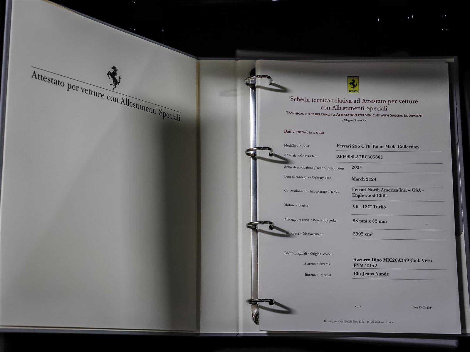 Ferrari of Ontario is excited to present this 2024 Ferrari 296 GTB. This tailor-made vehicle is designed in the striking Azzurro Dino Metallizzato exterior and Blu Jeans Aunde interior. Featuring carbon fibre finishes, this stunning car is covered by Ferrari's 7-year maintenance until June 27, 2031, as well as Ferrari Certified Preowned Warranty for 2 years at no extra cost. Contact Ferrari of Ontario today to see if for yourself. Ferrari of Ontario and Ferrari of Toronto are your destinations for the ultimate Ferrari experience in Ontario. Nothing compares to the thrill you get when getting behind the wheel of our vehicles. Buying and owning a Ferrari isn’t just a decision, it’s a lifestyle choice, and at Ferrari of Ontario/Toronto we don’t just sell exotic vehicles, we sell life-changing experiences. With two state-of-the-art Ferrari dealerships in Ontario, visit us to experience the passion and excellence of Ferrari. Whether we are helping you to build your new dream Ferrari, or introducing you to our Ferrari Approved pre-owned range, we always follow and respect Ferrari's core values. The flagship Ferrari of Ontario location, found in Vaughan Ontario is a division of R. Ferri Automotive, and is the main showroom and service facility for Ferrari. The 70,000 square ft. building houses our state-of-the-art showrooms, service receptions and service bays. The state-of-the-art service centre can handle everything from meticulous restoration to servicing the latest Prancing Horse supercars with our factory trained technicians and latest diagnostic equipment from Ferrari.