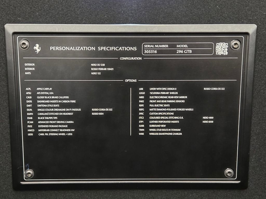 Authorized Dealer! Ferrari of Las Vegas is pleased to offer this stunning 296 GTB. Here is a fantastic opportunity to pick up Ferrari's newest and most technologically advanced mid-engine supercar at a substantial savings! Finished in a perfect Nero DS exterior with Rosso Ferrari interior this Ferrari looks as good as it drives! With 830hp on tap and a 0-60 time in under 2.9 seconds there is very little that this car cannot do! Buy with confidence from Southern Nevada's only authorized Ferrari dealership! Authorized Ferrari Retailer Well-Optioned Clean Carfax No Accident Vehicle One-Year CPO Included! $454,467 Original MSRP Nero DS Exterior Rosso Ferrari Interior Apple Carplay Wireless Smartphone Charger Black Brake Calipers $1565 Electrochromic Rearview Mirror $1390 Scuderia Shields $1912 Full Electric Seating $7300 Forged Matt Grigio Corsa Wheels $8343 Horse Stitched On Headrests $1280 Carbon Fiber Dashboard Inserts $5214 Daytona Style Seats $4171 Dreamline F1 Paddles $2607 Advanced Front Driving Camera Front & Rear Parking Sensors Surround View $6257 Contrast Stitching $782 Spec Livery Design 8 $22,594 Assetto Fiorano Extended $43,214 Carbon Fiber Steering Wheel + LEDS $5214 Black Ceramic Exhaust Pipes $1738 All Books & Keys All Service Up To Date Trades Accepted Shipping Available! Authorized Dealer Buy with confidence from Southern Nevada's premier luxury and exotic car dealership Towbin Motorcars! We hand-select only the finest vehicles to offer to the public. All of our quality pre-owned vehicles undergo and extensive reconditioning process to ensure that only the finest examples are offered for sale. Call 702-932-7100