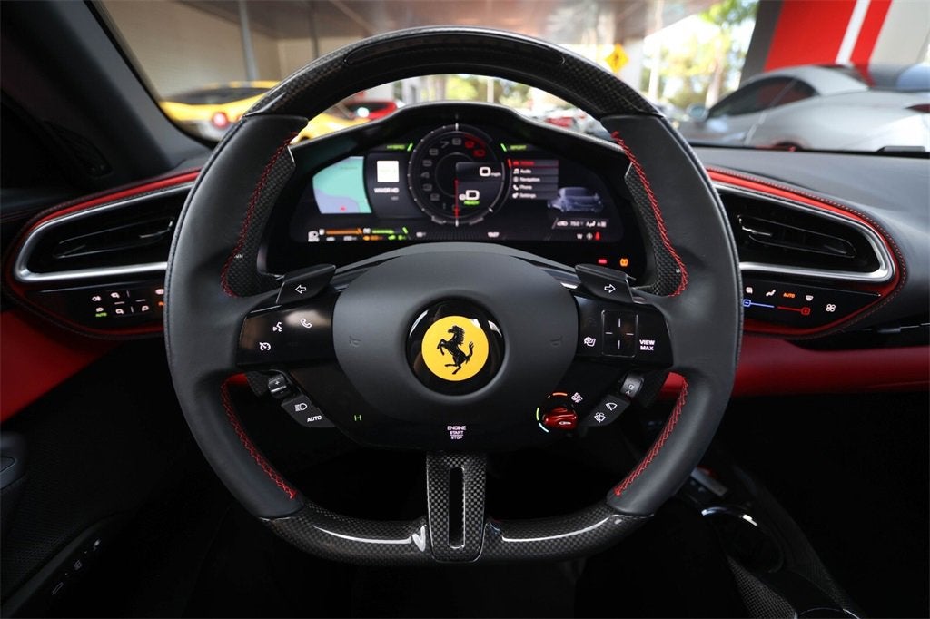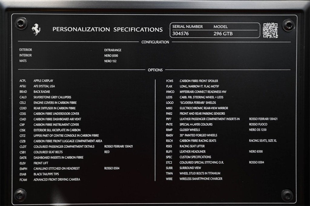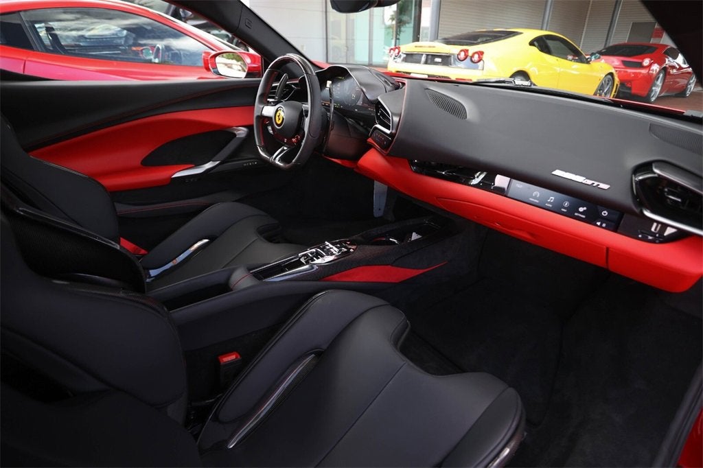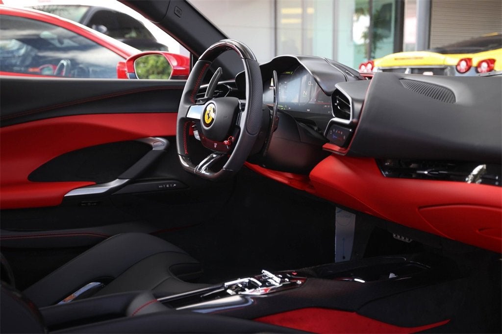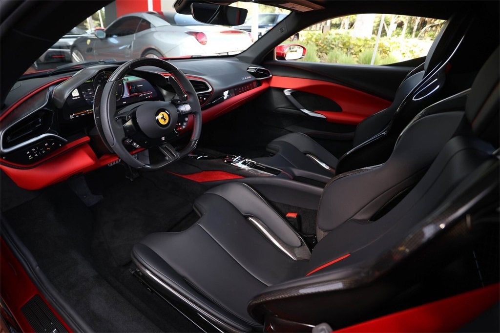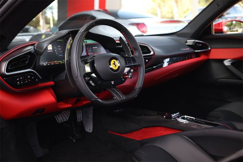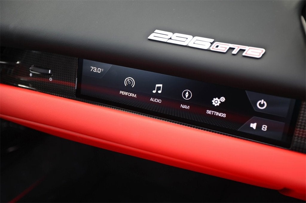 Ferrari of Naples is proud to present this extraordinary 2024 Ferrari 296 GTB, finished in the spectacular Rosso Fuoco, a rare triple-layer special paint, over Nero leather interior. Showing just 238 miles from new, this one-owner example is Ferrari Approved and features an extensive list of factory options, resulting in a substantial original MSRP and a highly desirable collector-grade configuration. The Rosso Fuoco finish is one of Ferraris most dramatic and exclusive special-order paints, a deep metallic red that shifts beautifully under different lighting conditions and perfectly complements the sculpted design of the 296 GTB. This particular example is especially notable for its extensive carbon fiber specification, both inside and out, along with Corsa carbon fiber racing seats, titanium wheel studs, forged wheels, and numerous personalization options. The result is a highly aggressive and performance-oriented specification that perfectly suits Ferraris next-generation mid-engine supercar. With ultra-low mileage, rare paintwork, Ferrari Approved certification, and a massive option list, this 296 GTB represents an exceptional opportunity to acquire one of the most desirable configurations of Ferraris groundbreaking hybrid supercar. Exterior Rosso Fuoco Special 3-Layer Paint Grigio Silverstone Brake Calipers Carbon Fibre Engine Compartment Carbon Fibre Rear Diffuser Carbon Fibre Under-Door Trim Carbon Fibre Exterior Sill Plates Carbon Fibre Front Spoiler Carbon Fibre Upper Tunnel Trim Scuderia Ferrari Fender Shields Forged Wheels Brilliant Silver Finish Gloss Black Painted Wheels Titanium Wheel Studs Sports Tailpipe Tips Interior Nero Leather Interior Carbon Fibre Corsa Racing Seats (XL) Carbon Fibre Dashboard Air Vent Carbon Fibre Instrument Binnacle Carbon Fibre Dashboard Accents Carbon Fibre Luggage Compartment Trim Leather Headliner Rosso Ferrari Interior Accents Red Seat Belts Embroidered Cavallino Headrests Special Red Contrast Stitching Italian Flag Stitch Detail on Headrest Equipment & Features Apple CarPlay Adaptive Front Lighting System (AFS) Front & Rear Suspension Lift Blind Spot Detection Surround View Camera System Front & Rear Parking Sensors Lane Departure Warning Camera Electrochromic Exterior Mirrors Wireless Smartphone Charger Premium Personalisation Package MyFerrari Connect Readiness As the official Ferrari dealer of Southwest Florida, Ferrari of Naples offers an exclusive selection of Ferrari models, backed by unparalleled service and expertise. Our commitment to excellence ensures that each vehicle meets the highest standards of quality and performance. To schedule a private viewing or request a personalized video tour of this 2024 Ferrari 296 GTB, please contact us: Phone: (239) 256-1400 Email: smora@newcountry.