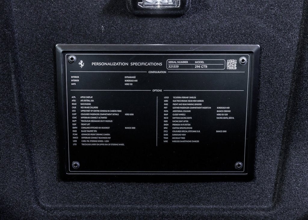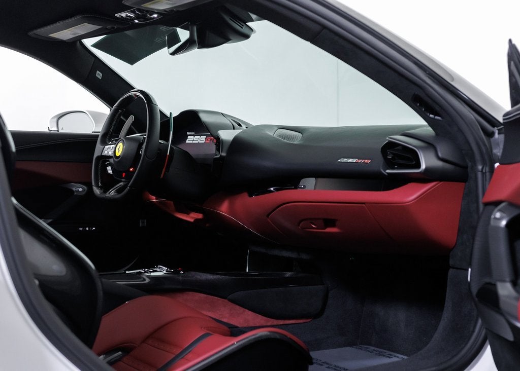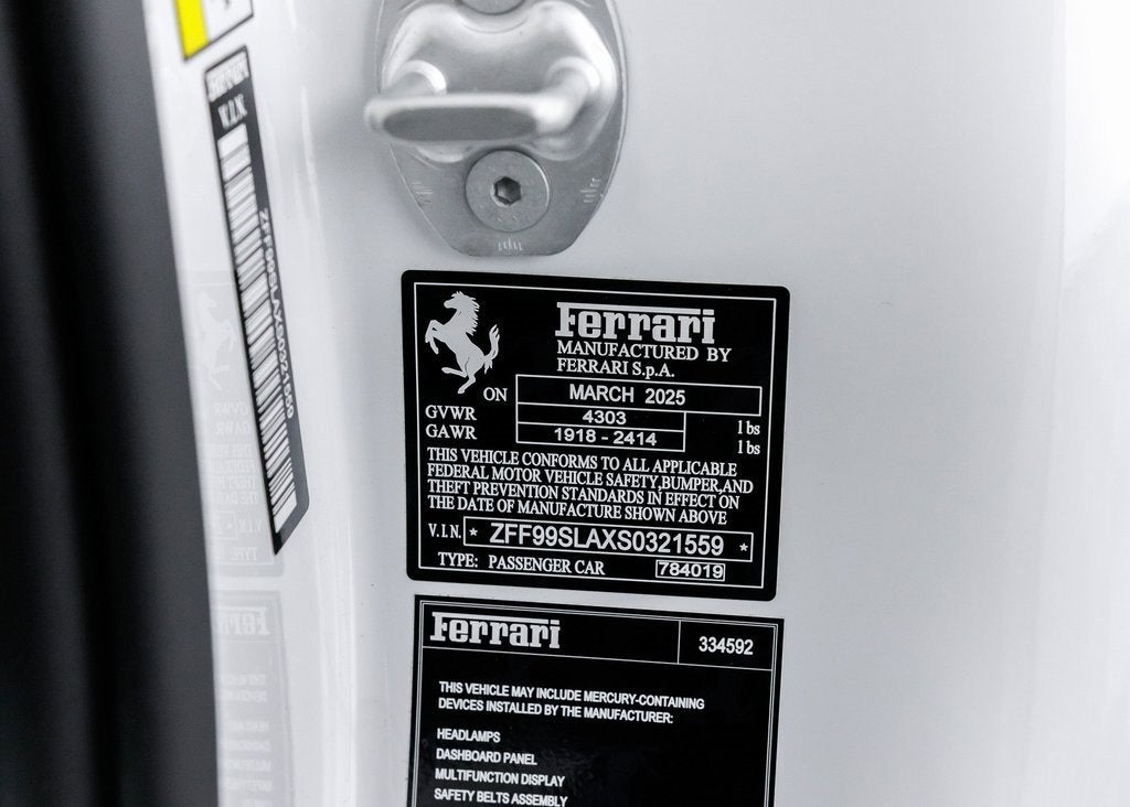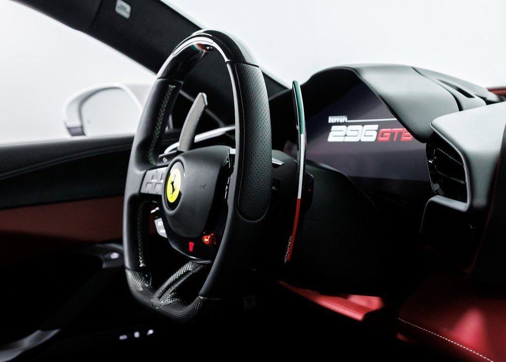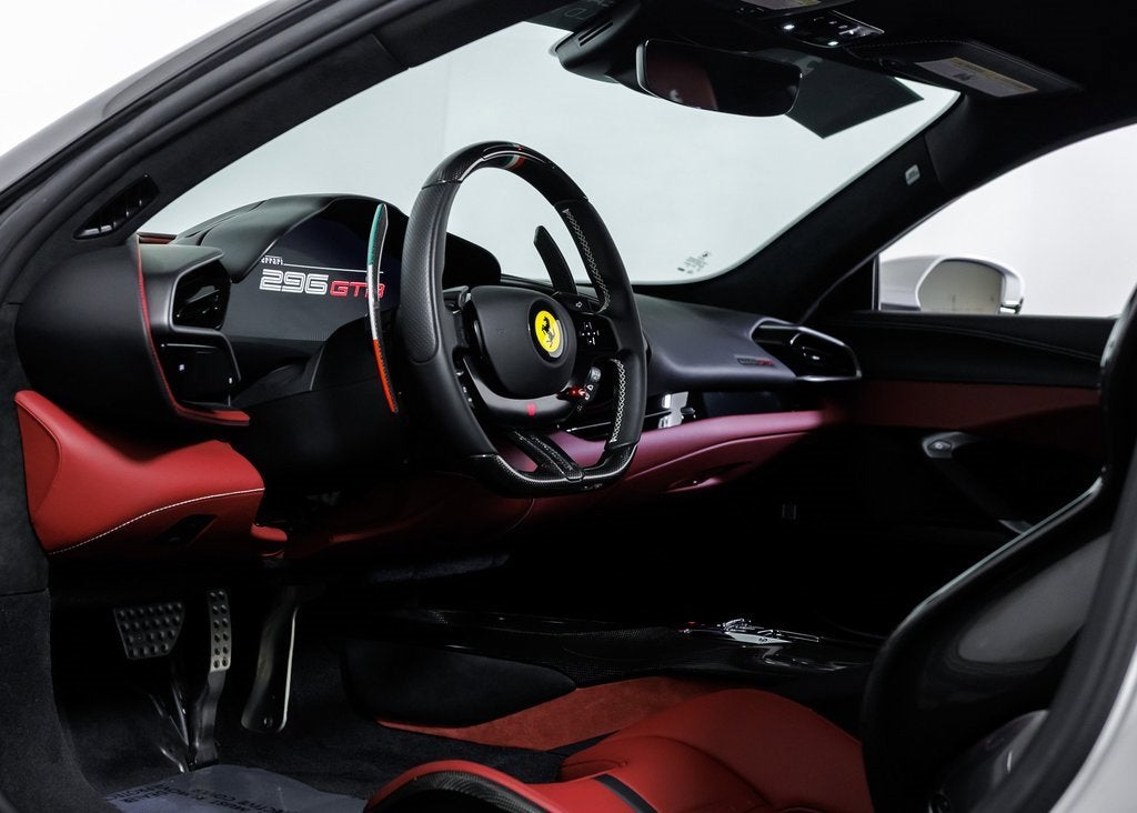 SALE PENDING! Wide World Ferrari is proud to present this spectacular 2025 Ferrari 296 GTB, a one-owner example showing just 172 miles and configured with an extraordinary blend of performance-focused carbon fibre and bespoke Italian detailing. Representing the cutting edge of Ferraris hybrid supercar evolution, the 296 GTB pairs a twin-turbo V6 with electric assistance to deliver instantaneous response, razor-sharp handling, and unmistakable Maranello character. Finished in elegant Bianco Cervino, this example strikes a perfect balance between modern aggression and timeless Ferrari sophistication. Rosso Corsa brake calipers provide a bold contrast behind gloss Nero painted wheels, while sports tailpipe tips add a purposeful finishing touch. Scuderia Ferrari shields on the fenders proudly showcase the marques racing heritage. The interior is a dramatic and beautifully tailored environment, trimmed in rich Bordeaux leather with Nero passenger compartment details for depth and contrast. Daytona racing seats elevate the sporting atmosphere, featuring special Bianco stitching and embroidered Cavallino headrests in Bianco for a crisp, refined accent. The upper centre tunnel is finished in carbon fibre, complemented by a carbon fibre steering wheel with LED shift indicatorsplacing Formula 1inspired performance directly at your fingertips. Tricolore Dreamline F1 paddles and the Italian Livery Upper Arch on the steering wheel further celebrate Ferraris racing DNA in subtle yet distinctive fashion. A seat height adjustment mechanism ensures optimal driving position. Technology and usability are seamlessly integrated, with Apple CarPlay, Adaptive Frontlight System (AFS), Blind Spot Detection with rear radar, Lane Departure Warning camera, electrochromic exterior mirrors, front and rear parking sensors, and Surround View providing confidence in any setting. A suspension lifter enhances practicality, while a Premium Hi-Fi system and wireless smartphone charger complete the grand touring experience. Additionally, the car is Ferrari Approved and eligible for up to a 2-year Ferrari Certification warranty (available at an additional charge). Currently benefits from an active warranty until September 2028 and complimentary maintenance September 2032. As the only 4-Time Cavallino Winning Ferrari Center in the tri-state area and one of the first Ferrari Centers in North America, we pride ourselves on exceptional service. We assist with all aspects of your purchase, including trade-ins, shipping, registration, non-reported financing, and customizations. Conveniently located in Rockland County, just under 30 miles from Manhattan. For more information, email us at ferrarivip@newcountry.com or call 845-682-0129.