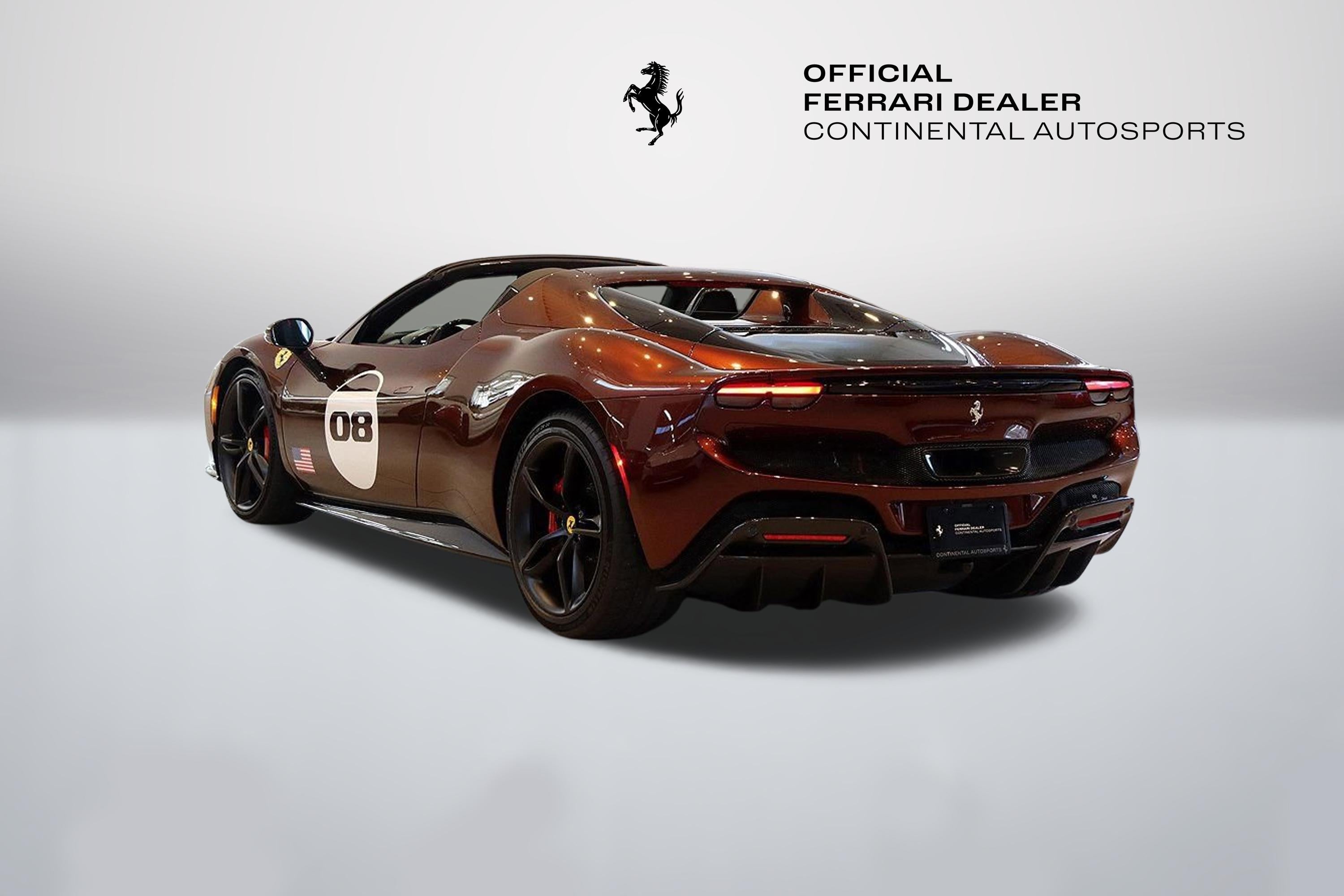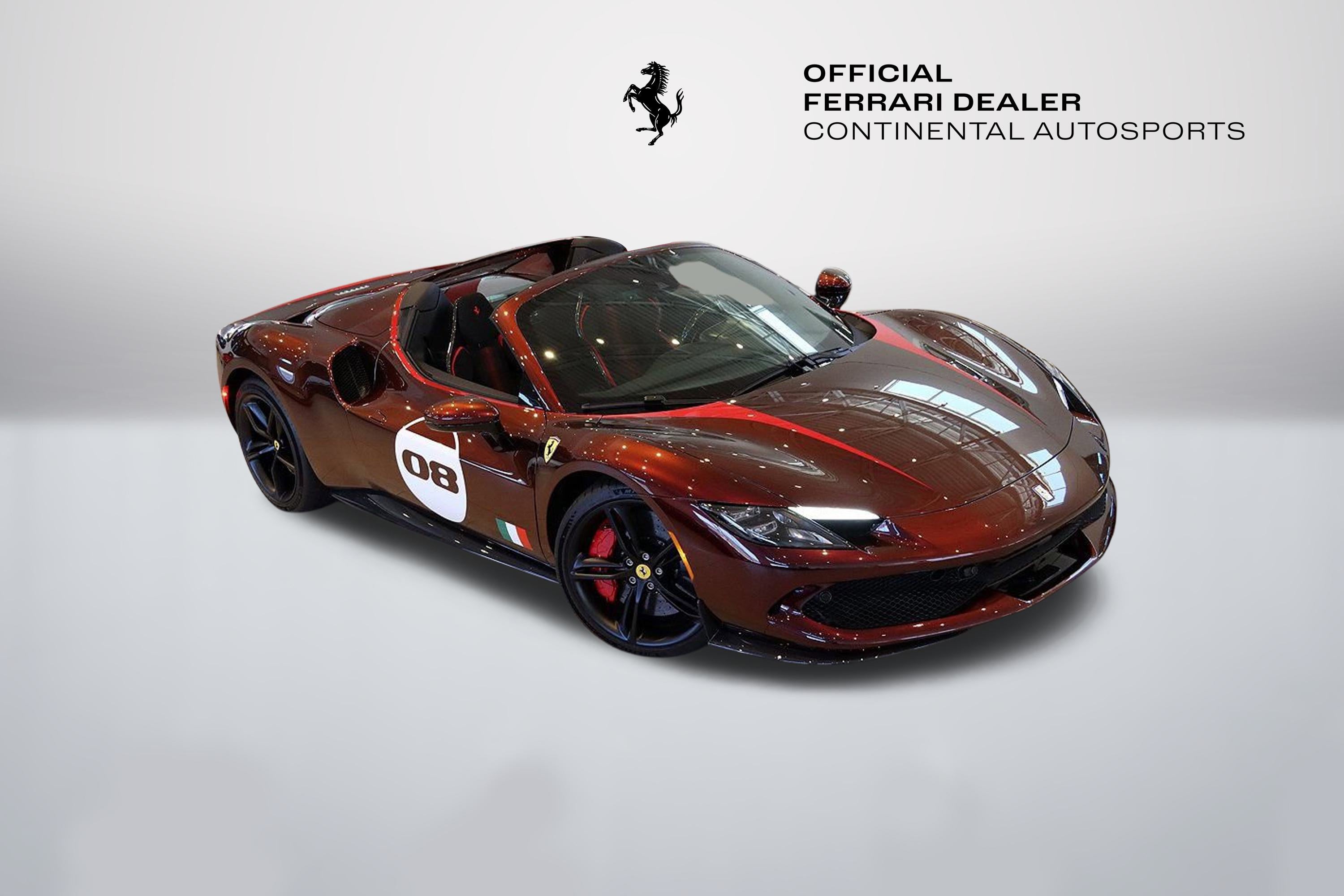 Continental Autosports, an Official Ferrari Dealer since 1975, offers this collectible Tailor Made 2023 Ferrari 296 GTS 10th Anniversary Cavalcade Edition finished in Rosso Taormina over nero. In celebration of 10 years of Ferrari Cavalcade (factory sponsored client driving events), the Ferrari Tailor Made Department designed a series of special cars based on 6 different models: SF90 Coupe and Spider, 296 GTB and GTS along with 812 Competizione and Competitzione A. Each Cavelcade car was documented with photos and descriptions in Ferrari Classiche grey book (See Photos) Each version featured unique special colors, liveried exteriors along with unique complimentary interiors. Five different colorways were available, themed for five previous Cavalcades. These special cars are extremely rare as they were only offered to Cavalcade participants. We estimate that worldwide, less than 200 of these cars were manufactured between 2021 and 2024. This Tailor Made Cavalcade Specification includes: - Extracampionario 4-Layer Rosso Taormina Exterior - Extracampionario Nero Interior - Extracampionario Nero Mats - Apple Carplay - AFS System America - Aluminum Painted F1 Paddles - Livery on Door Sill - 2 Circles Historic Livery - Red Brake Calipers - Cavalcade Rosso Taormina - Carbon Fiber Engine Covers - Carbon Fiber Rear Diffuser - Carbon Fiber Underdoor Cover - Carbon Fiber Air Diffuser - Carbon Fiber Instrument Cluster - Carbon Fiber Door Panels - Carbon Fiber Exterior Sill Kick - Carbon Fiber Upper Tunnel Trim - Extracampionario Colored Inner Details - Tailor Made Order - Extracampionario Carpets - Carbon Fiber Dashboard Inserts - Dedication Plate in Silver - Suspension Lifter - Rosso Horse Stitched on Headrest - Black Ceramic Exhaust Pipes - Advanced Front Driving Camera - Carbon Fiber Front Spoiler - Colored Mats w/Logo - Homelink Garage Door Opener - HW Readiness MyFerrari Connect - Carbon Fiber Steering Wheel w/LED's - Special Livery - Scuderia Ferrari Shields - Front & Rear Parking Sensors - Nero Alcantara Interior Inserts - Personalization Pack - Nero Opaco Matte Painted Rims - 20" Forged Painted Rims - XL Carbon Fiber Racing Seats - Racing Seat Lifter - Premium HIFI System - Special Features - Extracampionario Colored Special Stitching - Titanium Wheel Bolts - TM Cavalcade Collection - Wireless Smartphone Charger This vehicle has gone through a rigorous 101-point inspection by Ferrari Trained Technicians and is Ferrari Approved Certified Pre-Owned Eligible. We have verified this vehicle is in proper working order and remedied any issues using only Ferrari parts. Optional 12-24 month Ferrari Approved Warranty which includes Roadside Assistance. Whether this is your first or 21st Ferrari, buy from an Official Ferrari Dealer. Buy from Continental Autosports and have peace of mind. Call 630-655-3535 to speak to a Ferrari specialist today. Showings by appointment only. Please call at least 24 hrs prior to schedule an appointment. Due to space limitations, all inventory cannot be kept on premises. Inventory viewing can be expected by next day appointment only. Please call the day before or earlier to schedule an appointment. This vehicle has gone through a rigorous 101-point inspection by Ferrari Trained Technicians and is Ferrari Approved Certified Pre-Owned Eligible. We have verified this vehicle is in proper working order and remedied any issues using only Ferrari parts. Optional 12-24 month Ferrari Approved Warranty which includes Roadside Assistance. Whether this is your first or 21st Ferrari, buy from an Official Ferrari Dealer. Buy from Continental Autosports and have peace of mind. Call 630-655-3535 to speak to a Ferrari specialist today. Showings by appointment only. Please call at least 24 hrs prior to schedule an appointment. Due to spac