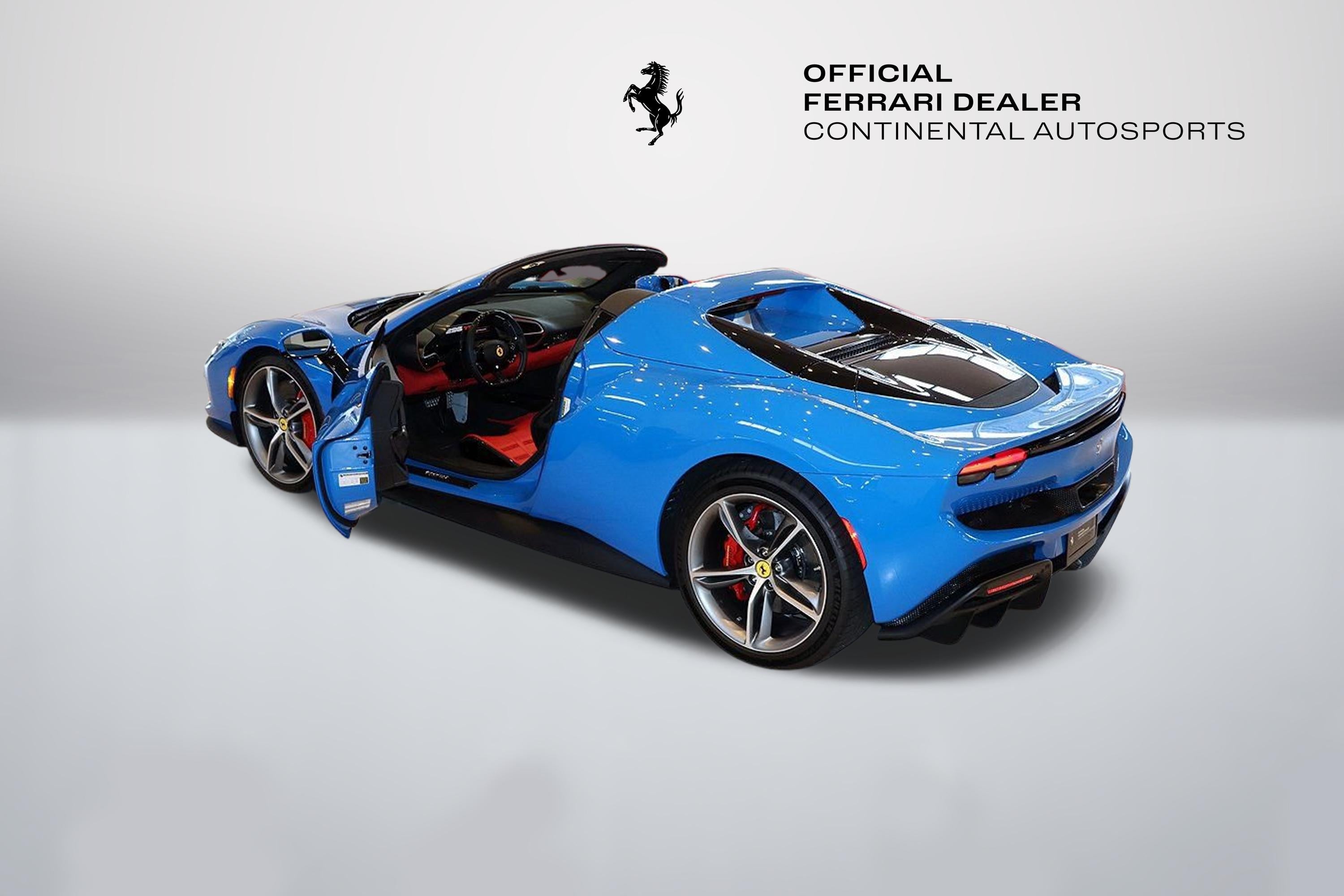 Continental Autosports, an Official Ferrari Dealer since 1975, offers this 2024 Ferrari 296 GTS finished in Azzurro Dino over Rosso Ferrari. This Ferrari was delivered new here at Continental Autosports to a long time client and is now ready for a new owner. Azzurro Dino was historically adopted by legendary Ferrari drivers such as Clay Regazzoni on their racing overalls, and five decades ago was a signature colour for the Dino 246. The Ferrari 296 GTS, the evolution of Ferrari's mid-rear-engined two-seater berlinetta spider concept, is powered by the new 120 V6 engine. This specification includes: - Extracampionario Special 2 Layer Azzurro Dino Exterior - Rosso Ferrari Interior - Extracampionario Mats - Apple Carplay - AFS System America - Red Brake Calipers - Carbon Fiber Instrument Cluster - Carbon Fiber Door Panels - Carbon Fiber Exterior Sill Kick - Carbon Fiber Upper Tunnel Trim - Black Leather / Alcantara Carpets - Extracampionario Carpets - Carbon Fiber Dashboard Inserts - Dedication Plate in Silver - Suspension Lifter - Extracampionario Horse Stitched on Headrest - Azzurro S. EMPH w/Special Thread - Black Ceramic Exhaust Pipes - Advanced Front Driving Camera - Colored Mats w/Logo - Homelink Garage Door Opener - HW Readiness MyFerrari Connect - Carbon Fiber Steering Wheel + LED's - Scuderia Ferrari Shields - Electrochromatic Rearview Mirror - Front & Rear Parking Sensors - Personalization Pack - XL Daytona Racing Seats - Racing Seat Lifter - Forged Matte Diamond Wheels - Premium HIFI System - Special Features - Azzurro S. STC2 w/Special Thread - Extracampionario Colored Special Stitching - Alcantara Rosso FX Daytona Seat Alcantara Stripes - Titanium Wheel Bolts - Wireless Smartphone Charger This Ferrari has been meticulously inspected by Ferrari-trained technicians and is certified pre-owned eligible. Its in excellent working condition, fully compliant with Ferraris recommended maintenance schedule. An optional 12 or 24 month Ferrari Approved Warranty with roadside assistance is available. Whether you're a first-time or seasoned Ferrari owner, purchase with confidence from Continental Autosports, an Official Ferrari Dealer. Contact our Ferrari specialists at 630-655-3535 to schedule your appointment 24-hour notice required. Due to space limitations, all inventory cannot be kept on premises. Inventory viewing can be expected by next day appointment only. Please call the day before or earlier to schedule an appointment.