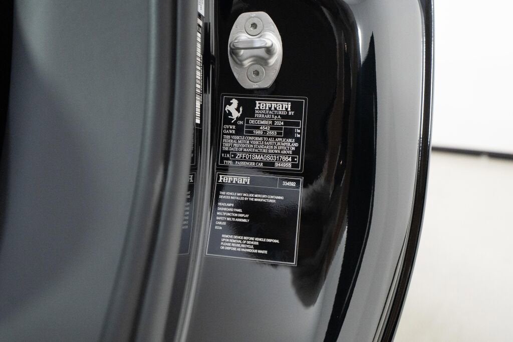 Ferrari Westlake is proud to present this low-mileage, one-owner, impeccably optioned 2025 Ferrari 296 GTS, finished in a stunning Nero gloss exterior with Nero leather and Charcoal Alcantara interior that beautifully accentuates its sculpted silhouette. The cabin is meticulously appointed, featuring Daytona style Carbon fiber racing seats with contrasting accents in Charcoal Alcantara and grey stitching. These elements work together to enhance the overall aesthetic and add a modern, but timeless, performance-driven edge with a nod to Maranello's heritage. With its retractable hard top and cutting-edge hybrid powertrain, the Ferrari 296 GTS delivers open-air exhilaration without compromise. Its 819-horsepower plug-in hybrid V6 setup propels the car from 0 to 60 mph in just 2.9 seconds, matching the GTB's impressive pace. Designed as a spiritual successor to iconic open-top V6 Ferraris of the past, the GTS blends elegant design with the most advanced driver engagement in Ferrari’s lineup. This 296 GTS comes with a full vehicle paint protection film installed. The original factory warranty is valid until 06/25/2028 as well as Ferrari Genuine Maintenance until 06/25/2032. Please contact our Ferrari Westlake Sales Team for further information or to schedule your appointment.