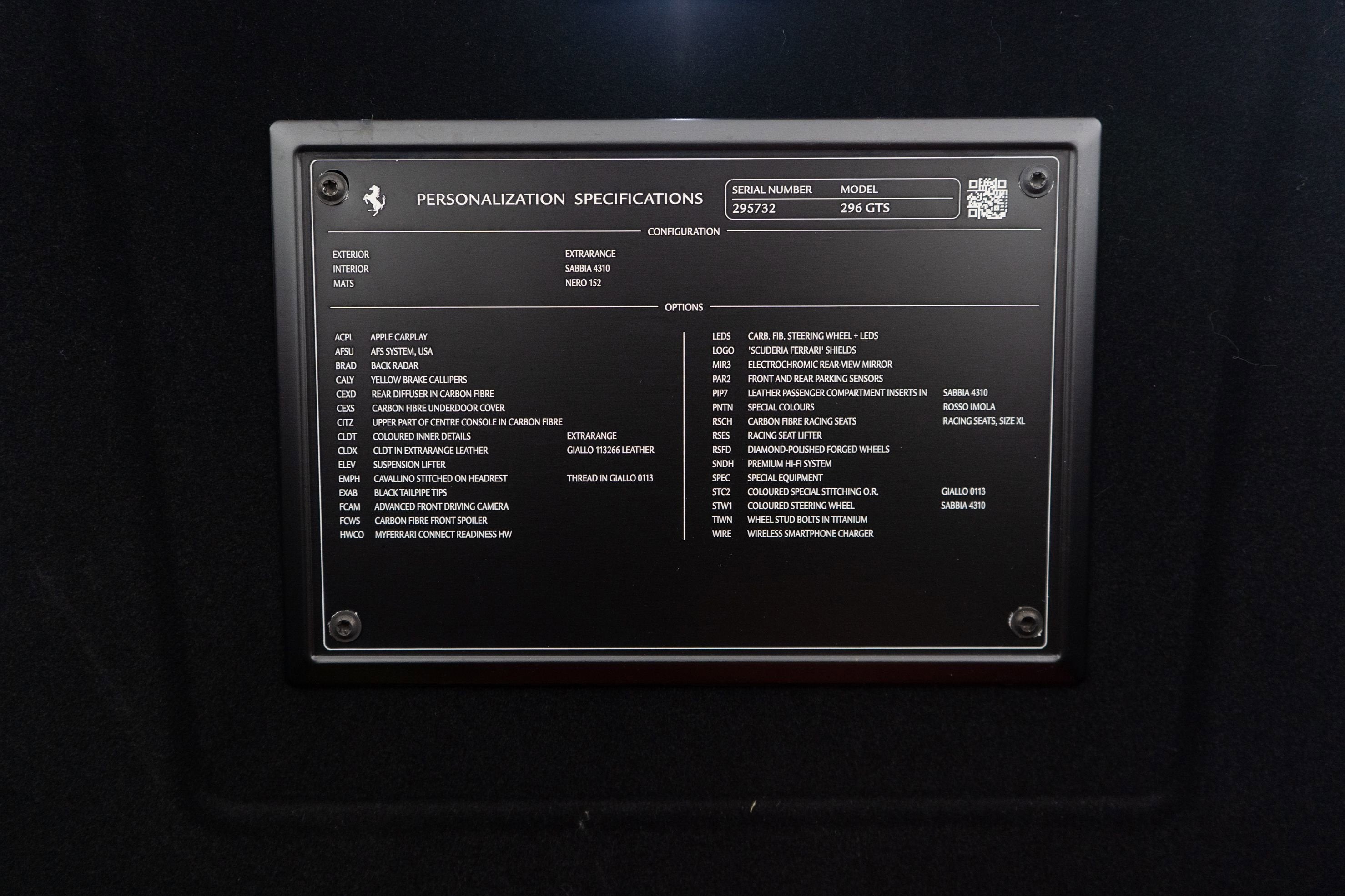 *Ferrari of Rancho Mirage* is thrilled to present this stunning *Ferrari 296 GTS*, finished in the exclusive *Rosso Imola* over a *Sabbia leather interior* with Giallo contrast stitching. This breathtaking open-top hybrid supercar represents the pinnacle of Ferraris next-generation performance design, blending Formula 1inspired electrification with timeless Italian craftsmanship. The 296 GTS redefines open-air driving, combining *819 horsepower* from its plug-in hybrid V6 powertrain with pure Ferrari emotion. Every aspect of this example was carefully configured to showcase elegance and precisionfrom its Rosso Imola finish to its carbon-fibre enhancements and bespoke Sabbia cabin detailing, this GTS exemplifies the art of personalization. ==== Performance & Engineering Highlights ==== * 819 hp Plug-in Hybrid V6 Powertrain with F1-derived technology * 8-Speed Dual-Clutch F1 Transmission for seamless gear transitions * Front Lift System (ELEV) for increased ground clearance * AFS Adaptive Frontlight System (AFSU) for optimal nighttime visibility * Advanced Front Driving Camera (FCAM) with Back Radar (BRAD) and Parking Sensors (PAR2) * Carbon Fibre Front Spoiler (FCWS), Underdoor Covers (CEXS), and Rear Diffuser (CEXD) * Titanium Wheel Stud Bolts (TIWN) paired with Diamond-Polished Forged Wheels (RSFD) * Yellow Brake Calipers (CALY) for a classic Ferrari finish ==== Luxury & Styling Features ==== * Exterior: Rosso Imola (Special Colour) * Interior: Sabbia 4310 Leather with Giallo 0113 Stitching (STC2) * Cavallino Embroidery on Headrests (EMPH) in Giallo Thread * Carbon Fibre Racing Seats (RSCH), Size XL, with Racing Seat Lifter (RSES) * Coloured Inner Details (CLDT) and Passenger Inserts (PIP7) in Sabbia Leather * Coloured Steering Wheel (STW1) in Sabbia Leather * Upper Centre Console (CITZ) and multiple interior trims finished in Carbon Fibre * Scuderia Ferrari Shields (LOGO) on Fenders * Black Tailpipe Tips (EXAB) * Electrochromic Rear-View Mirror (MIR3) * Premium Hi-Fi System (SNDH) and Wireless Smartphone Charger (WIRE) * MyFerrari Connect Readiness Hardware (HWCO) ==== Additional Details ==== * Model: 296 GTS * Serial Number: 295732 * Exterior Color: Rosso Imola * Interior Color: Sabbia 4310 with Giallo 0113 Stitching * Mats: Nero 152 * Condition: Ferrari Custom Specification * VIN & Complete Option Sheet Available Upon Request The *Ferrari 296 GTS* embodies the essence of modern Ferrari performancea perfect balance of hybrid power, open-air emotion, and artisan-level design. This beautifully tailored example, with its Rosso Imola exterior and Sabbia interior, stands as a truly collectible configurationelegant, powerful, and unmistakably Ferrari. *Ferrari of Rancho Mirage*, a *LAPIS dealership*, delivers exceptional retail, service, and ownership experiences; world-class client care; and an unwavering commitment to the passion that inspires Ferrari owners and automotive enthusiasts around the world. For your convenience, we offer global shipping, trade-in opportunities, and personalized financing options. *Contact us today* to explore ownership of this exceptional Ferrari. Visit us at *71441 CA-111, Rancho Mirage, CA 92270*, or call *760-469-9683*.