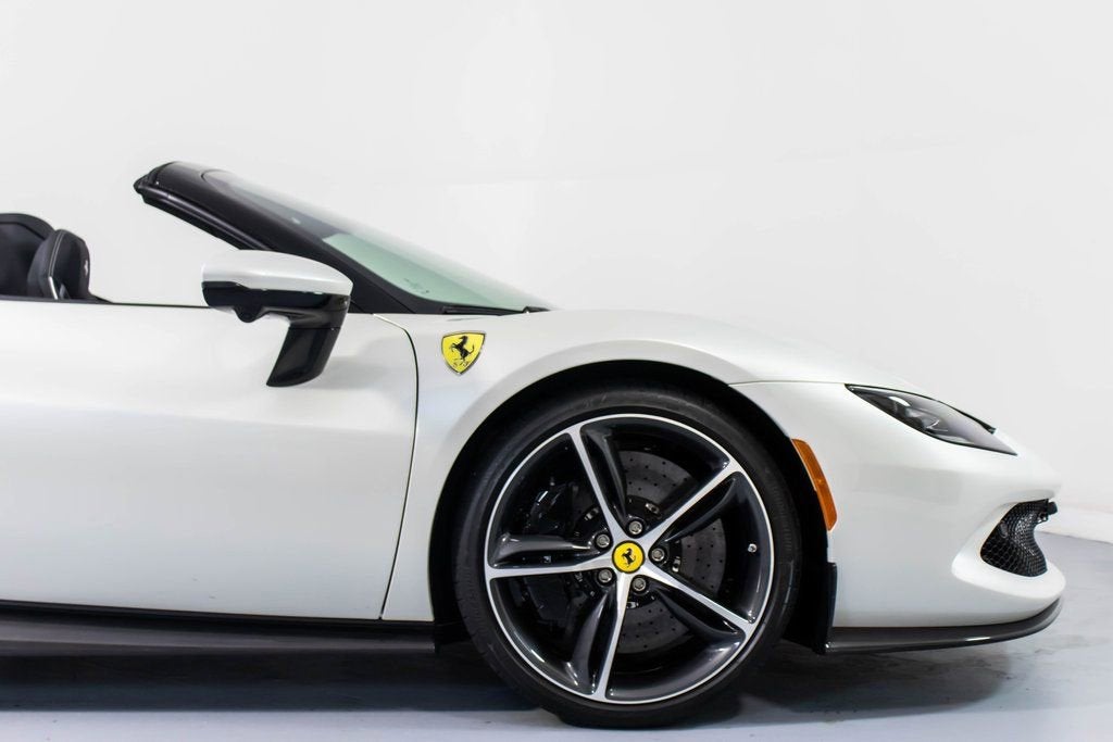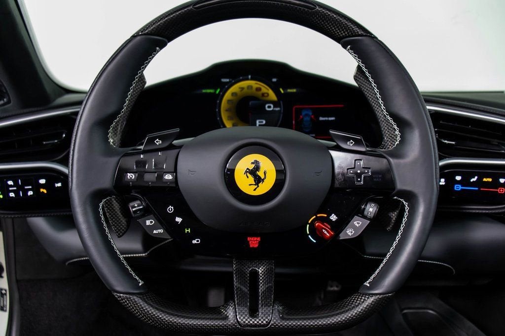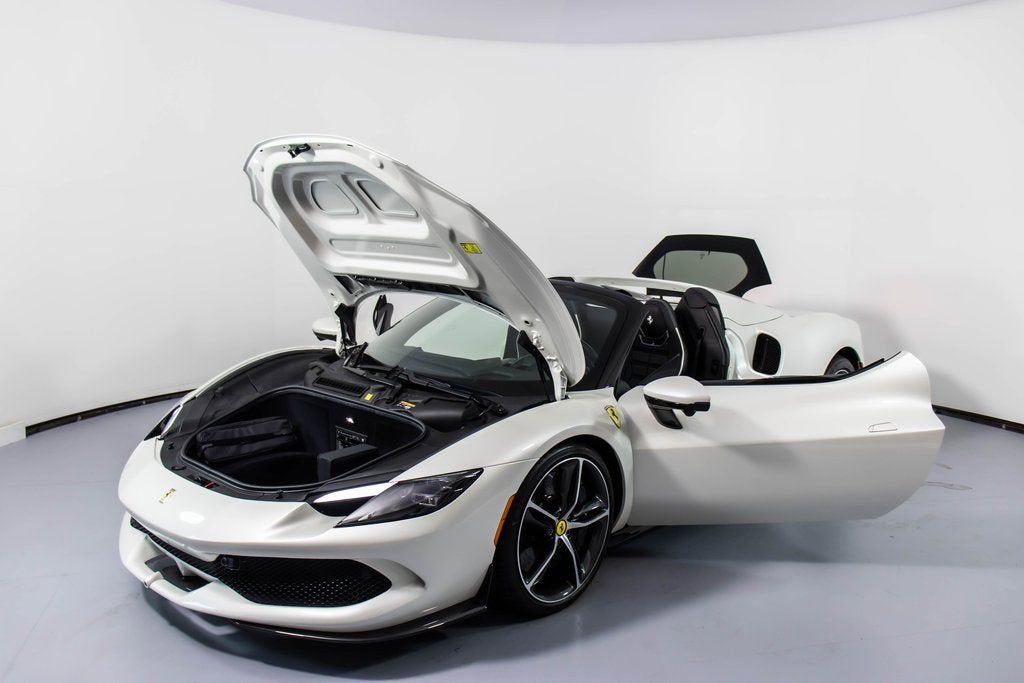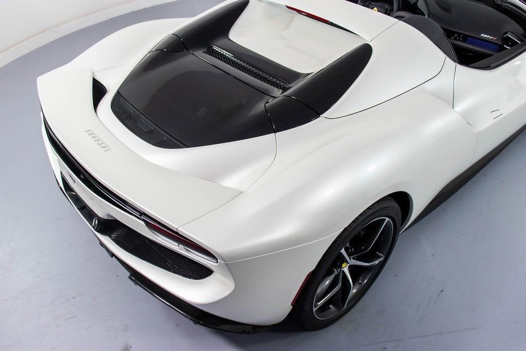 313347 Exterior: Bianco Fuji Interior: Nero Mats: Nero 2025 Ferrari 296 GTS Options: Apple CarPlay AFS System, USA Two-Tone Bodywork in Nero Back Radar Glossy Black Brake Calipers Rear Diffuser in Carbon Fiber Carbon Fiber Underdoor Cover Daytona Style Seats Front Lift Cavallino Stitched on Headrest in Bianco Black Tailpipe Tips Advanced Front Driving Camera Carbon Fiber Front Spoiler Home Link MyFerrari Connect Readiness HW Leather Inserts on Side of Seats Carb. Fib. Steering Wheel + LEDS 'Scuderia Ferrari' Shields Electrochromic Rear-View Mirror Front and Rear Parking Sensors Leather Passenger Compartment Inserts in Nero Special 4-Layer Colors in Bianco Fuji Diamond-Polished Forged Wheels Ventilated Full Electric Seats Premium Hi-Fi System Custom Specifications Colored Special Stitching O.R. in Bianco Alcantara Perforated Inserts in Alcantara Nero Surround View Wheel Stud Bolts in Titanium Wireless Smartphone Charger MyFerrari Connect no Activated The 2025 Ferrari 296 GTS in breathtaking Bianco Fuji with a sleek Nero interior is an open-top masterpiece that blends cutting-edge performance with refined elegance. Its sculpted exterior is elevated by Two-Tone Bodywork in Nero, Glossy Black brake calipers, Diamond-Polished Forged Wheels, and an array of aerodynamic carbon fiber elements, including the front spoiler, rear diffuser, and underdoor covers. Inside, the cabin showcases a luxurious yet sporty atmosphere with Daytona Style Seats, ventilated full electric seating, Alcantara perforated inserts, leather passenger and seat-side inserts, and a Cavallino stitched in Bianco. Enhanced technology features such as Apple CarPlay, Surround View, Advanced Front Driving Camera, Front Lift, HomeLink, and the Electrochromic rear-view mirror ensure convenience and confidence behind the wheel. Performance-focused touches like the Carbon Fiber steering wheel with LEDs, 'Scuderia Ferrari' shields, and black tailpipe tips complete the package, while Special 4-Layer Bianco Fuji paint, premium Hi-Fi system, wireless charger, and custom specifications make this 296 GTS a rare and exquisitely crafted example of Ferraris newest hybrid spider.
